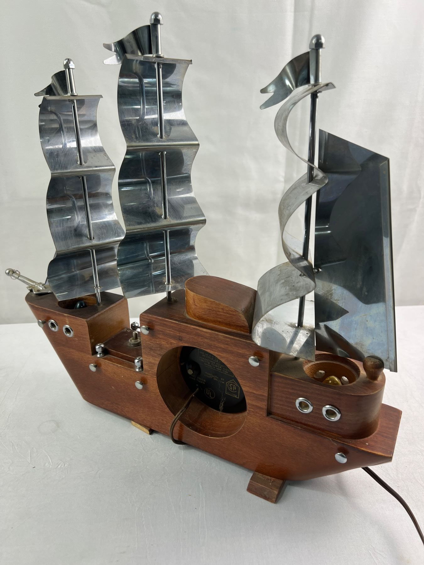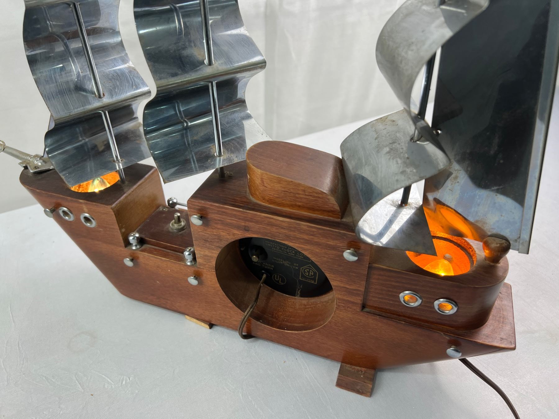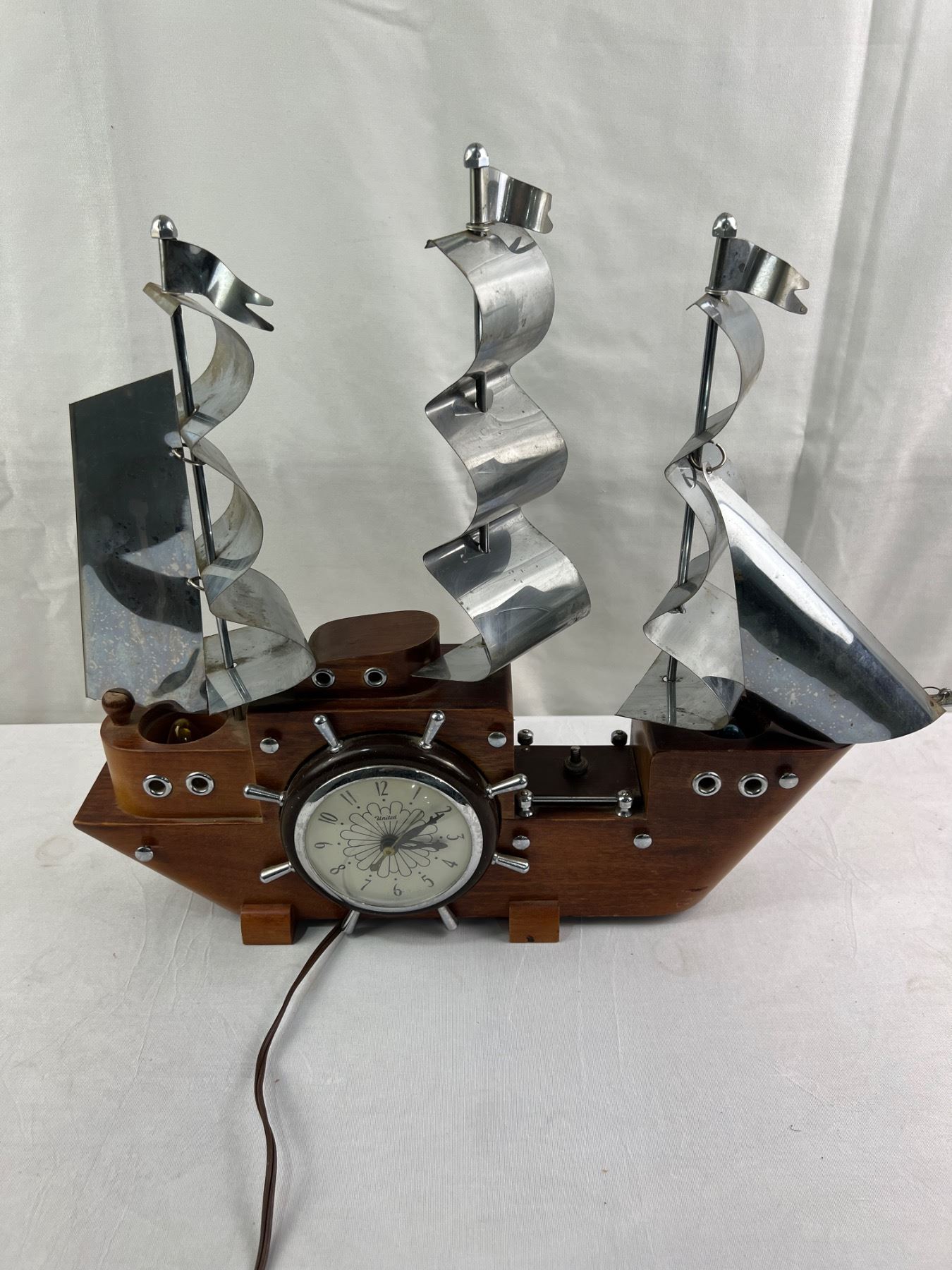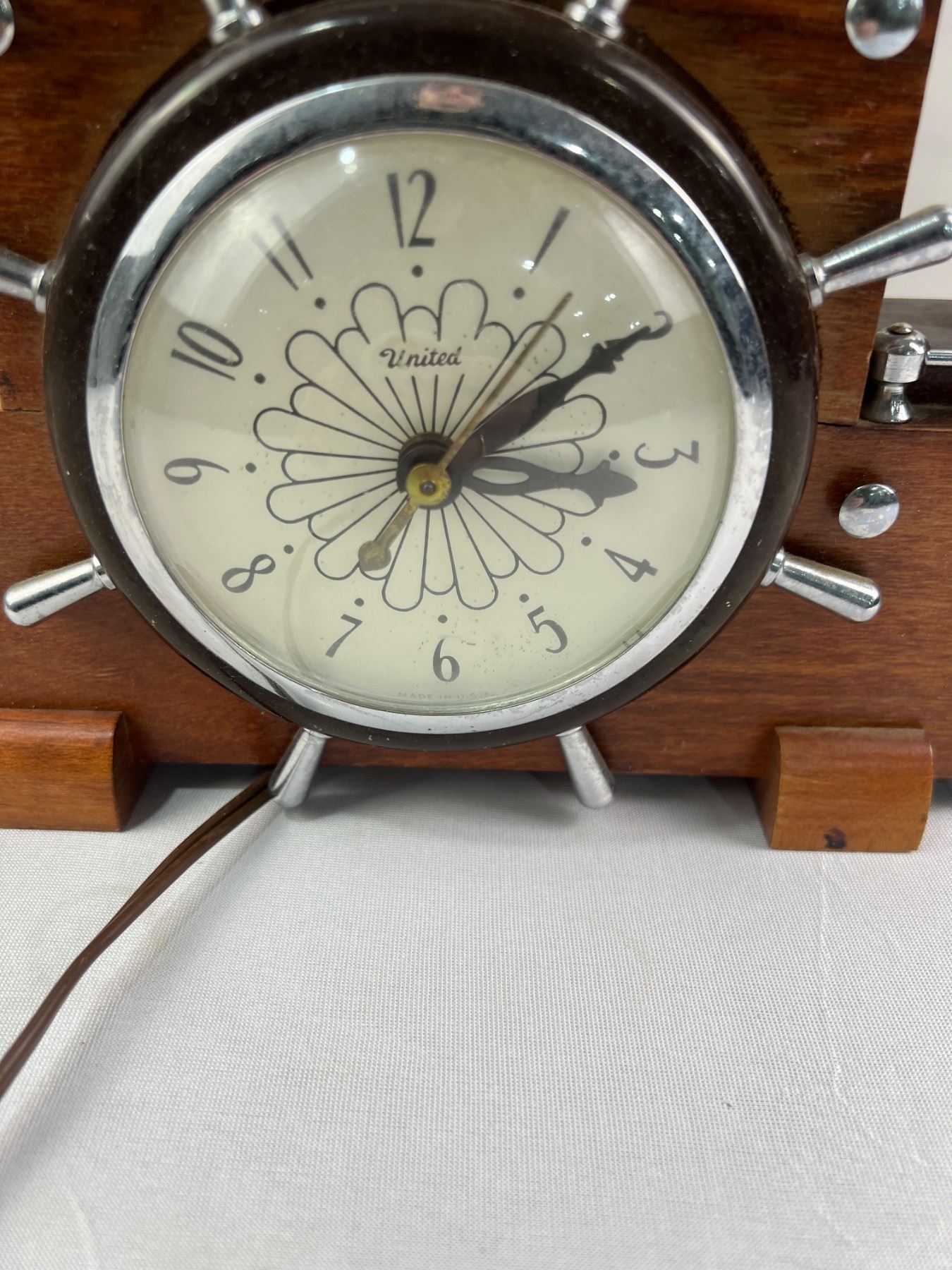 Electric Vintage United Ship Clock Measures Aprox 18" x 16" Lights & Clock Work