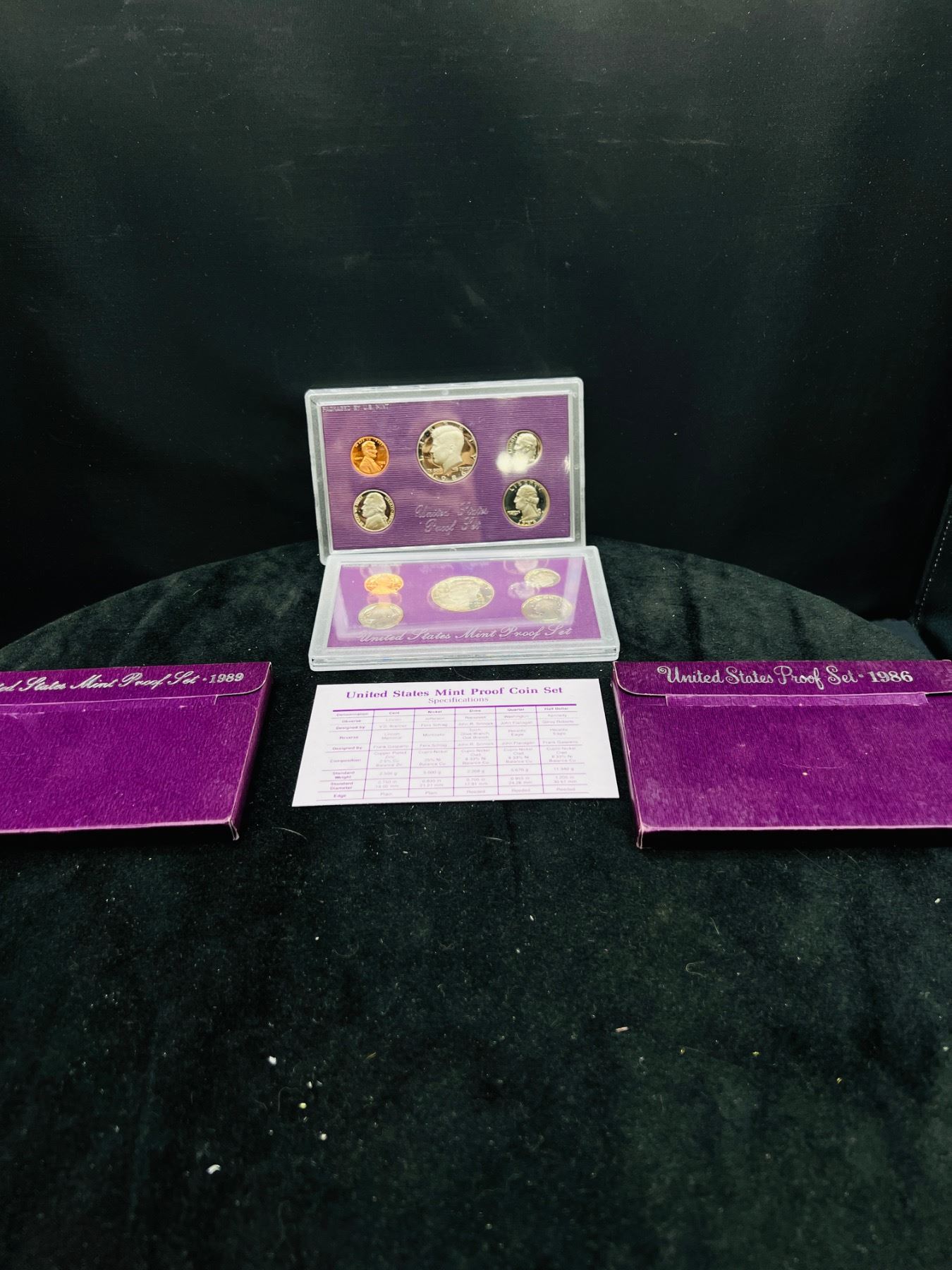 Includes 1986 and 1989 United States "Proof Sets", only one certificate included