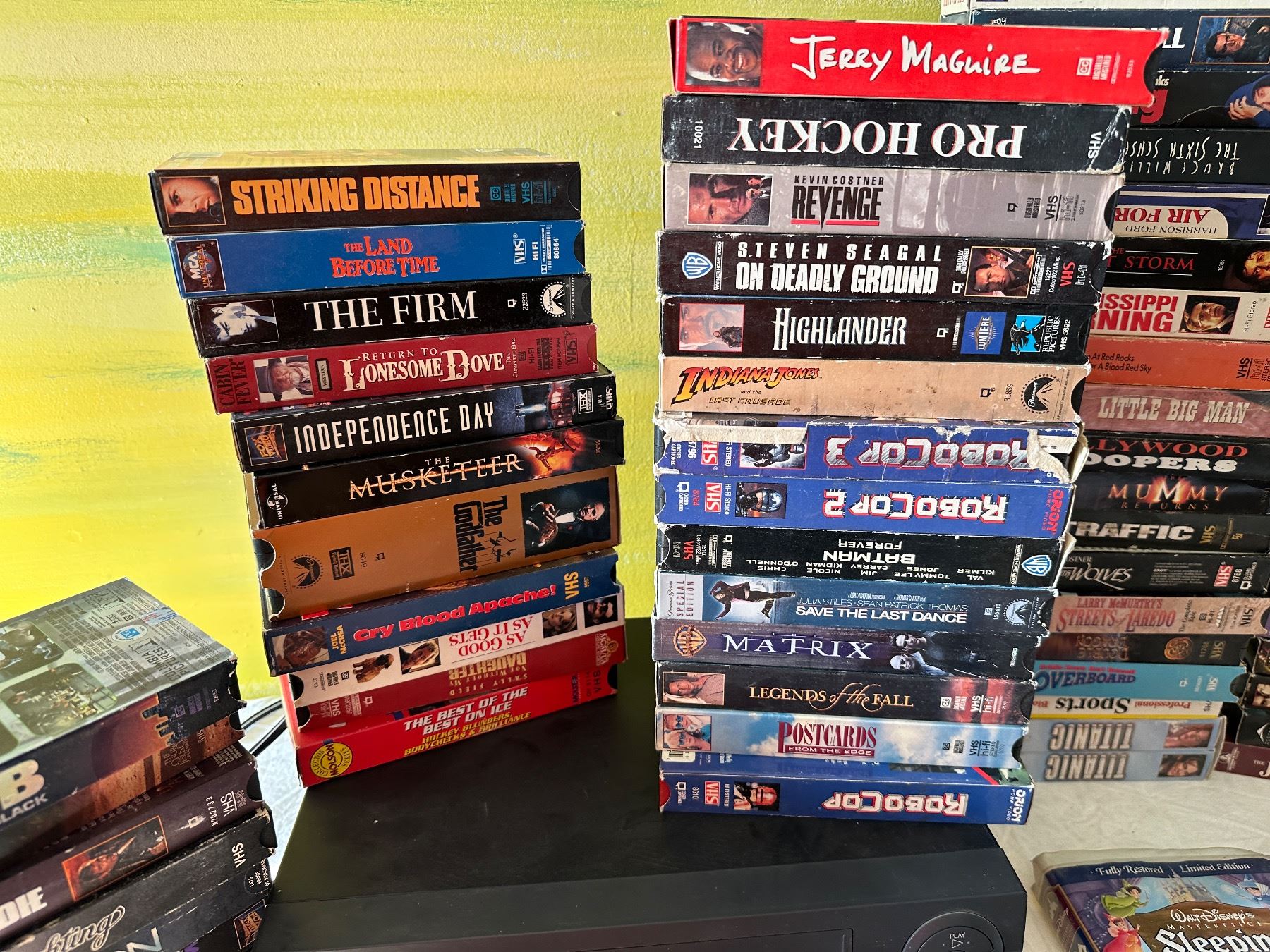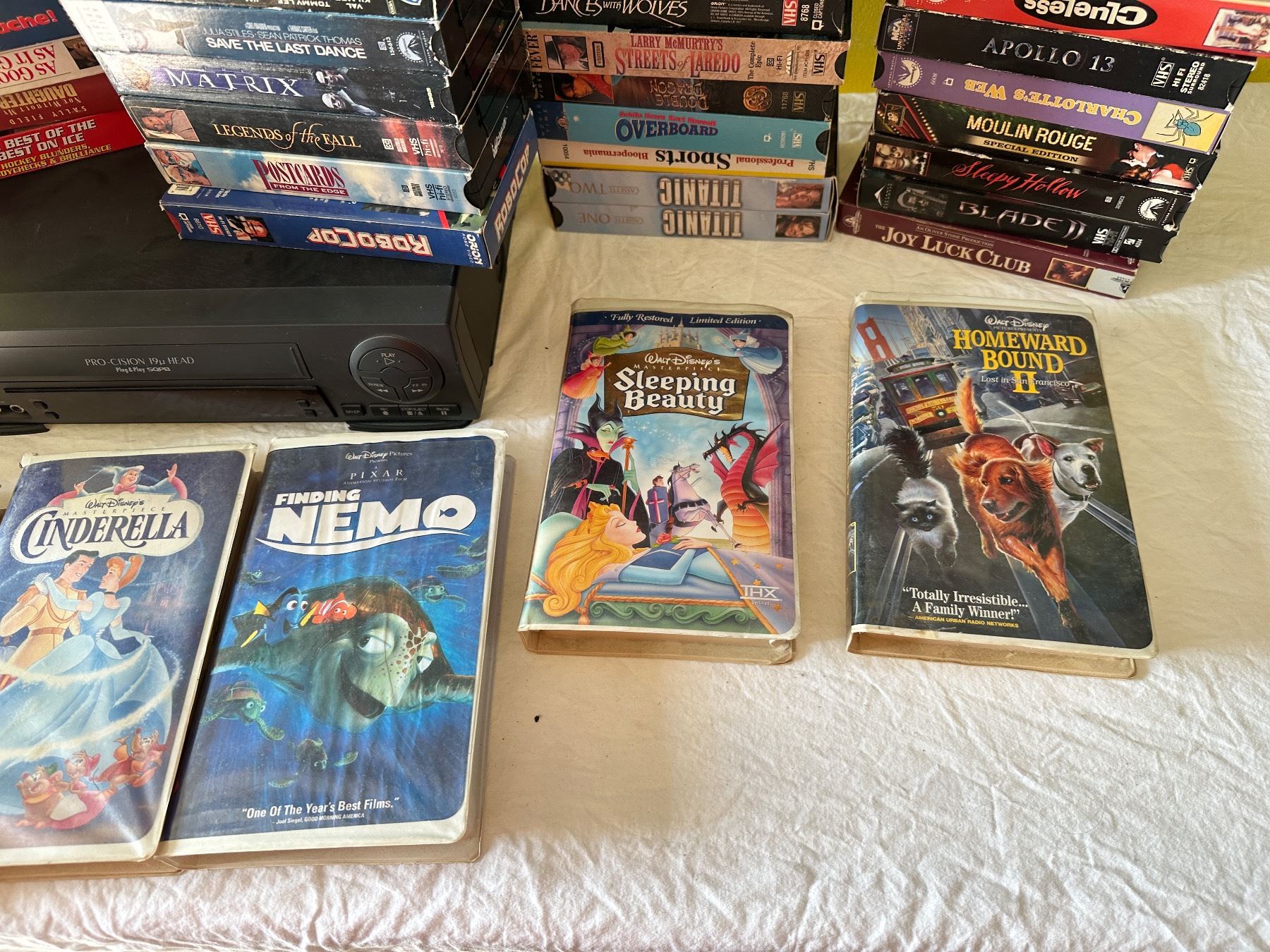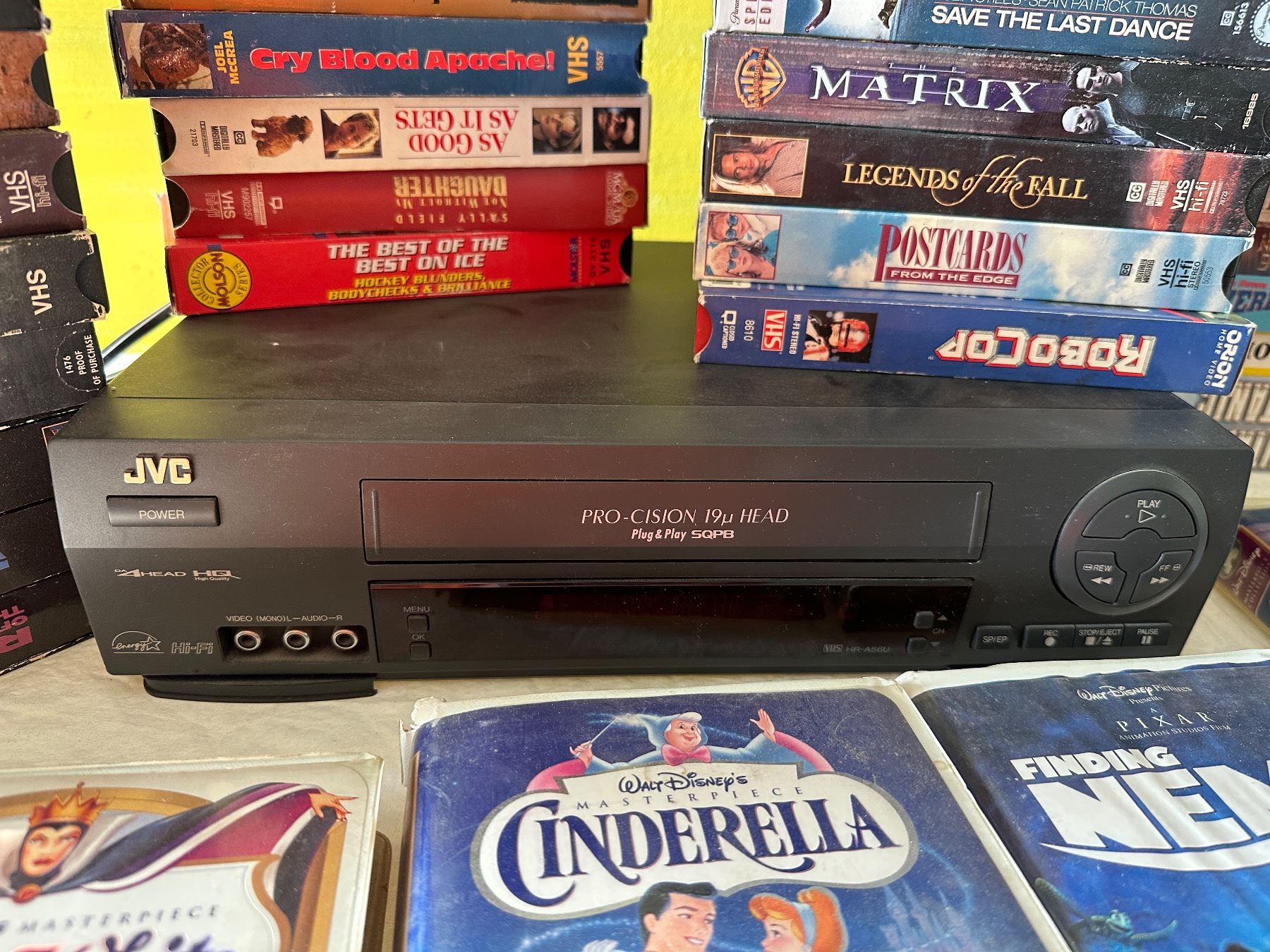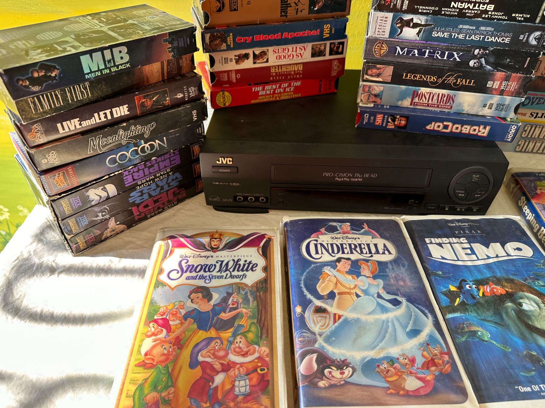 Includes JVC Pro-Cision 19 Head VHS Player - turns on and VHS tapes