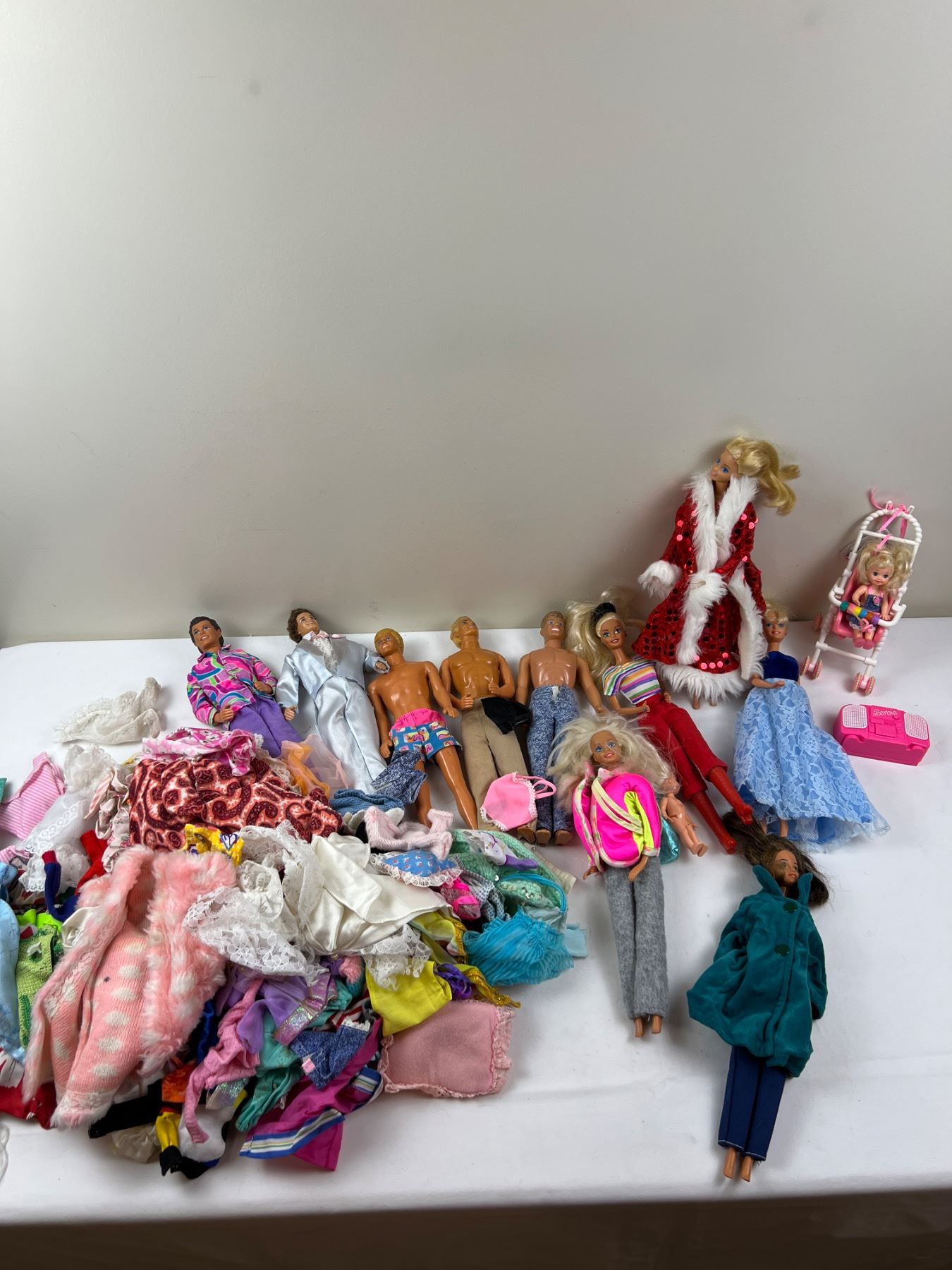 Includes various Barbie and Ken Dolls, Clothing and accessories