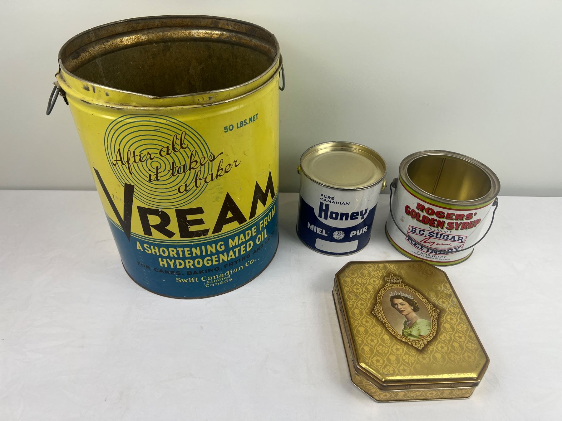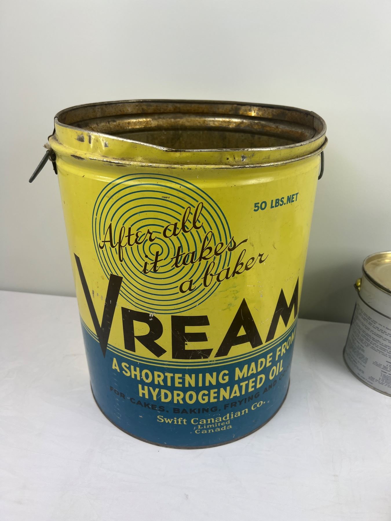 The Vream tin is 13"diameter x 15"H, some wear and tear