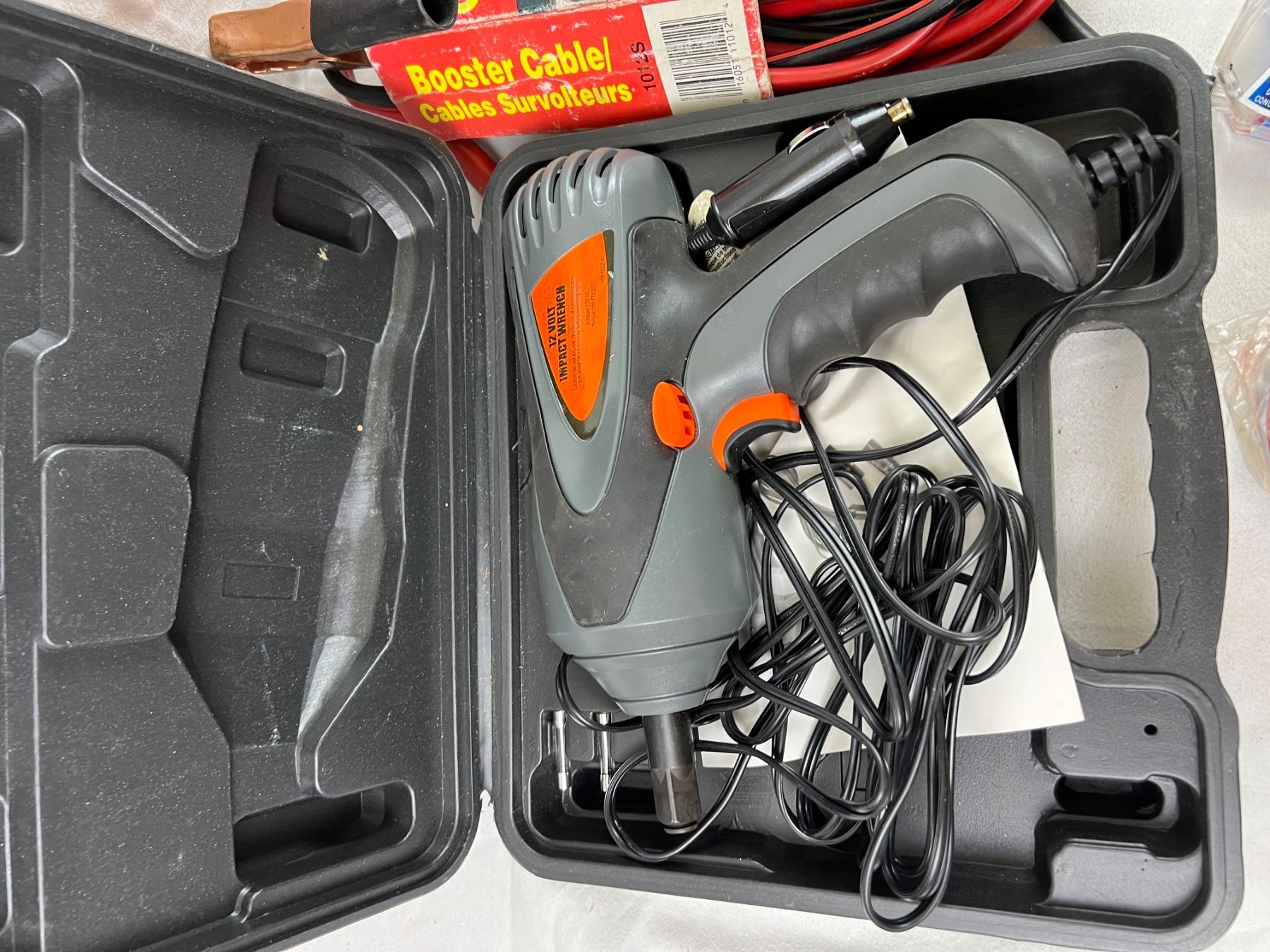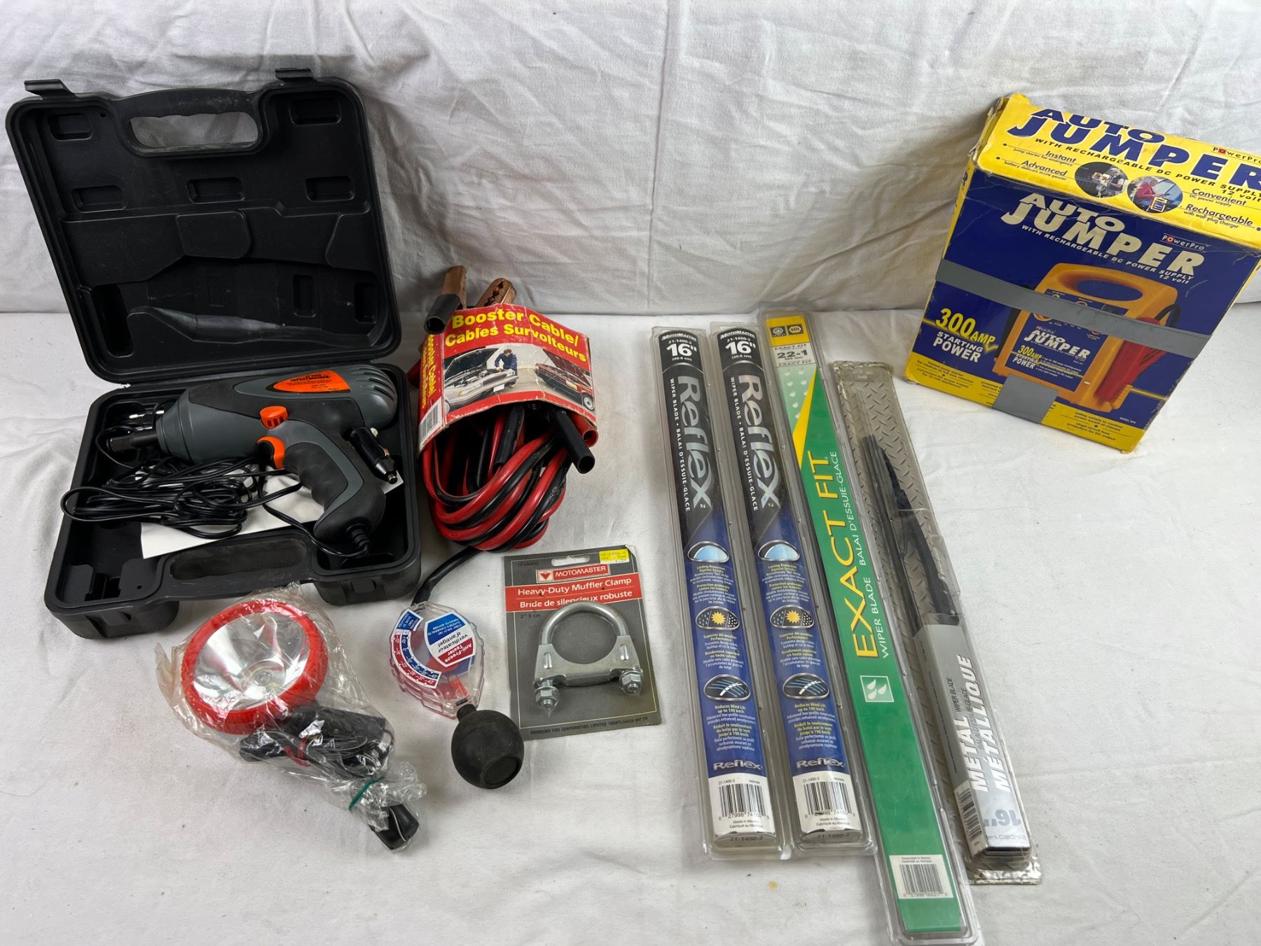 Includes, 12 Volt Impact Wrench (not tested), Power Pro Auto Jumper (turns on), Various wiper blades, and more