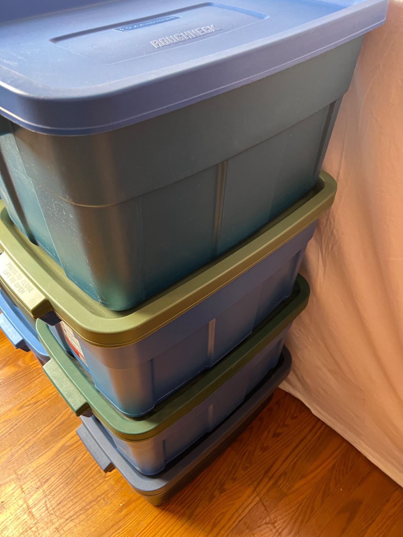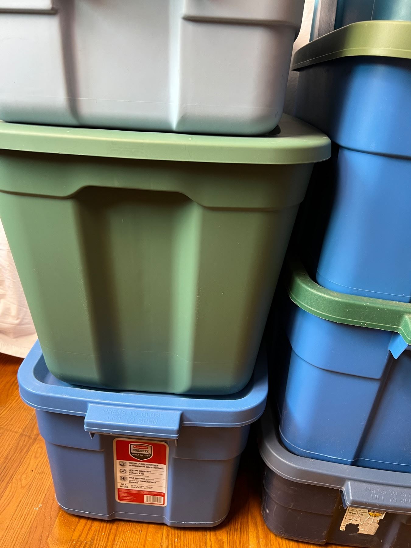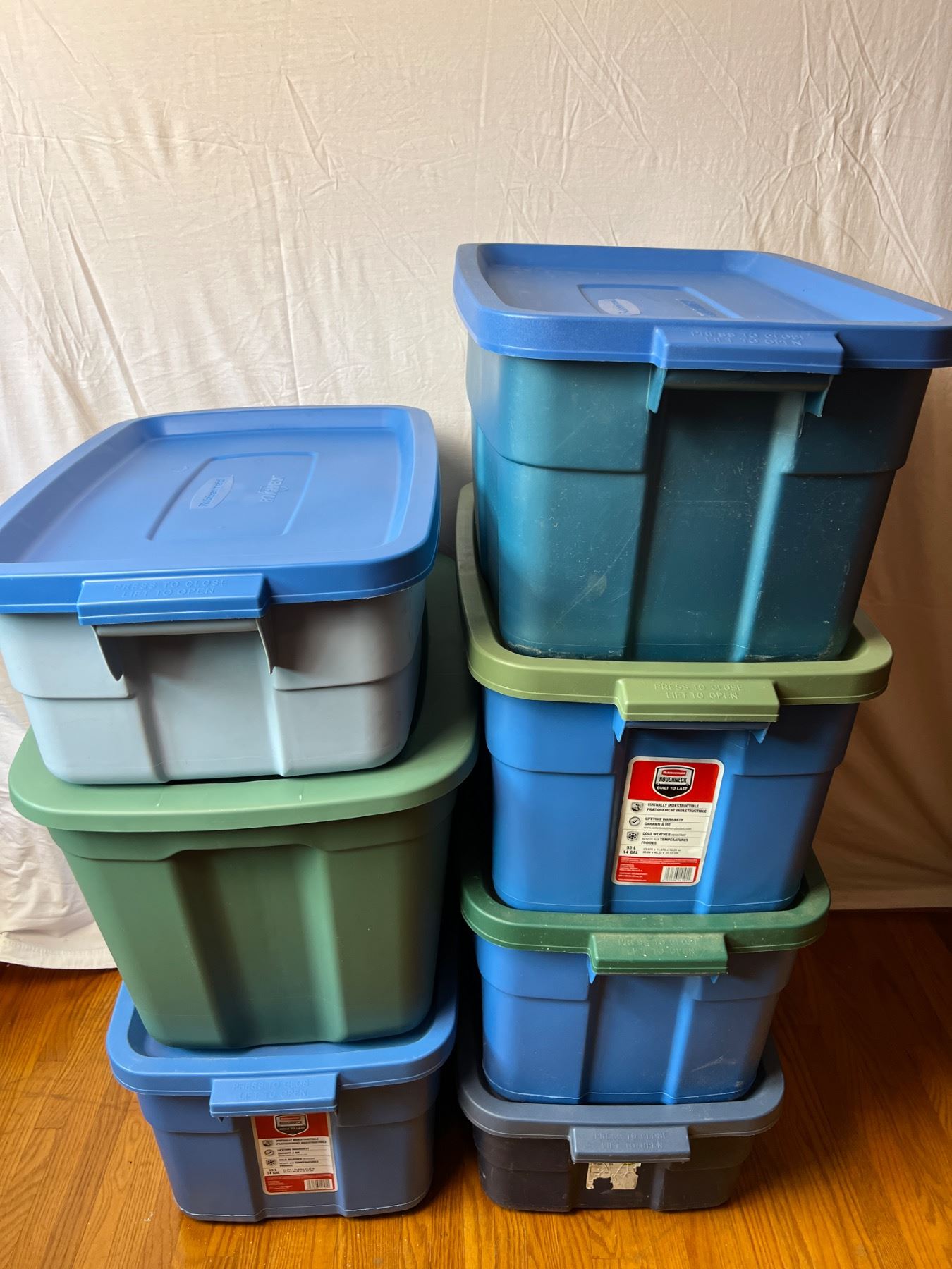 All totes come with a lid (some may be mix-matched), Includes Rubbermaid Roughneck 53L/10Gal and Type A 68L,