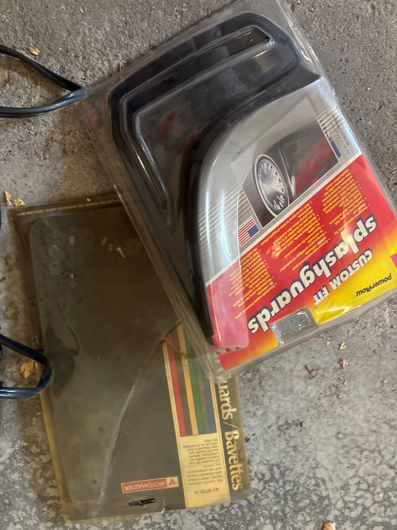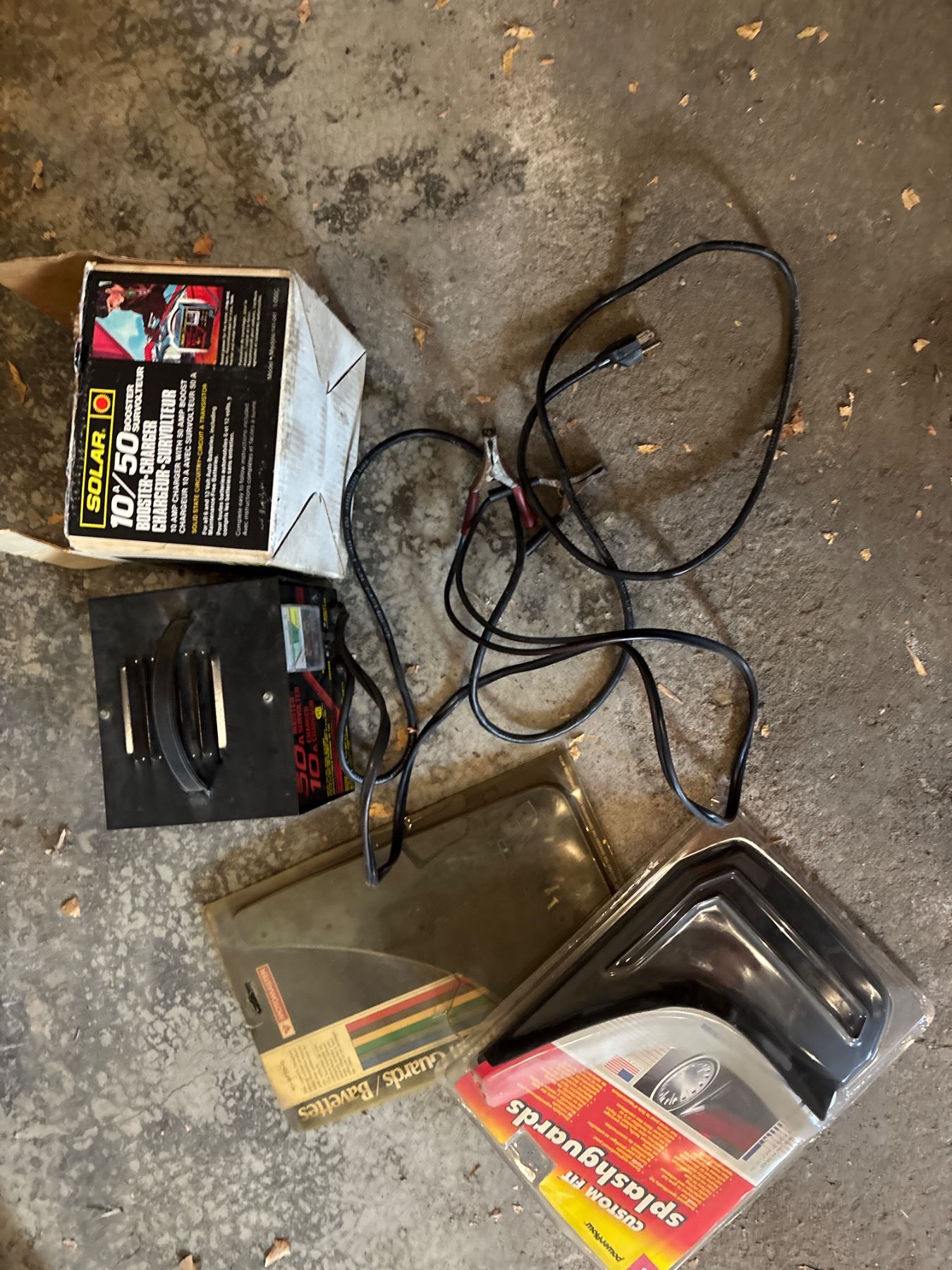 Solar Charger and Booster (turns on), Various spashguards (open and new packaging)