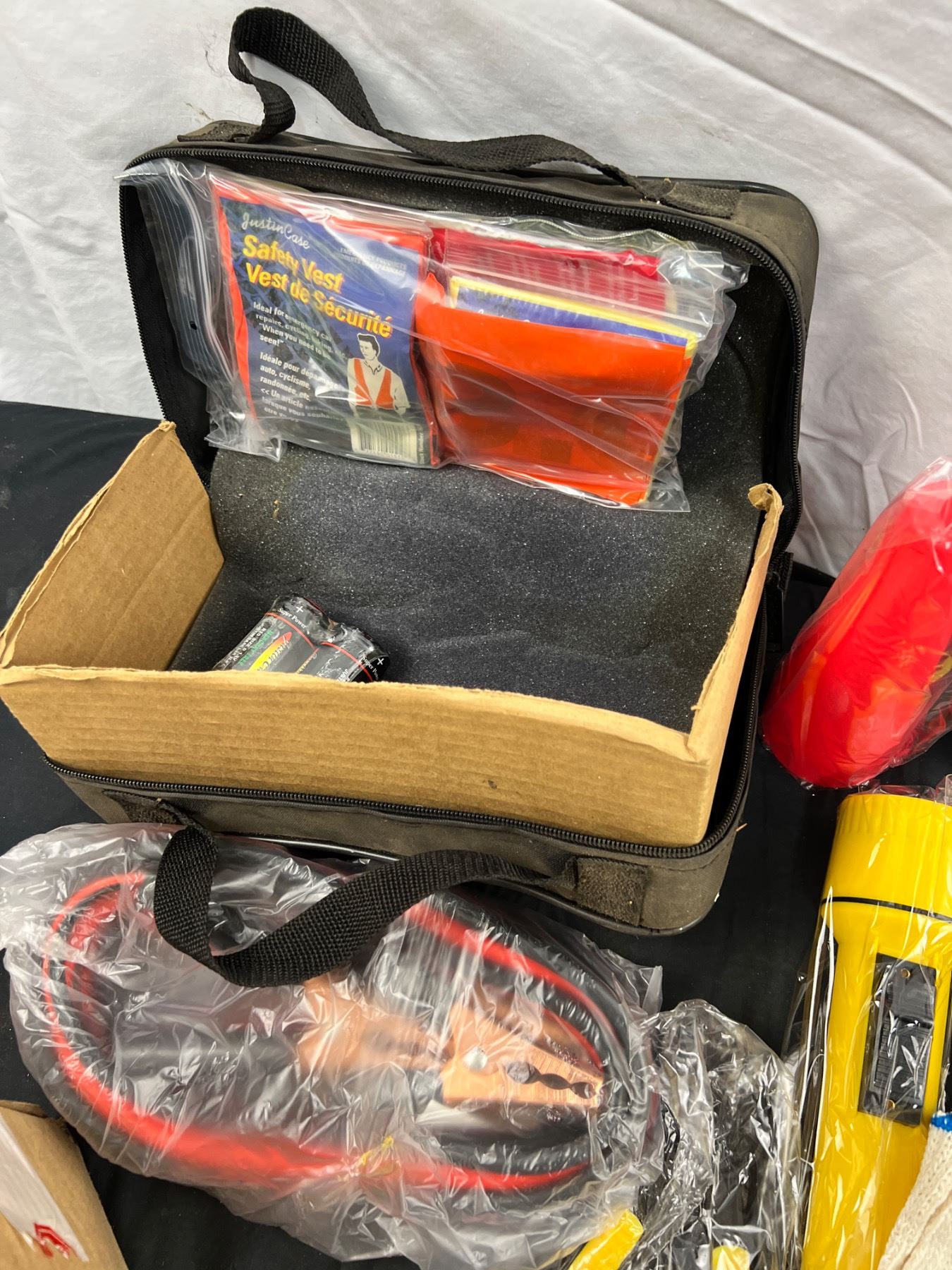 Includes, Roadside emergency kit, Spotlight, Reflectors, Various chains, and more