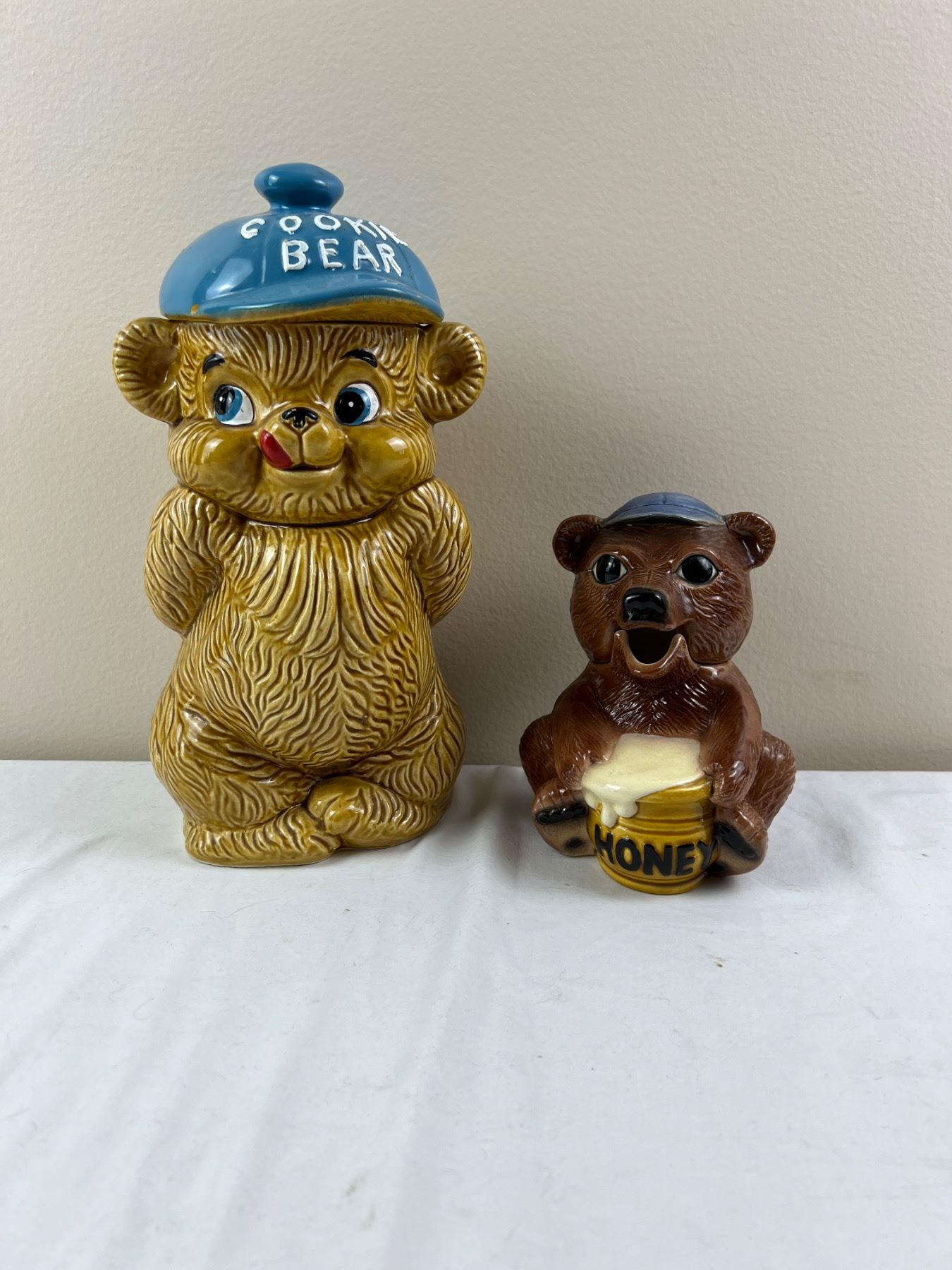 Includes a cookie jar and a honey jar, The cookie jar is by NC Cameron & Sons (12"H)