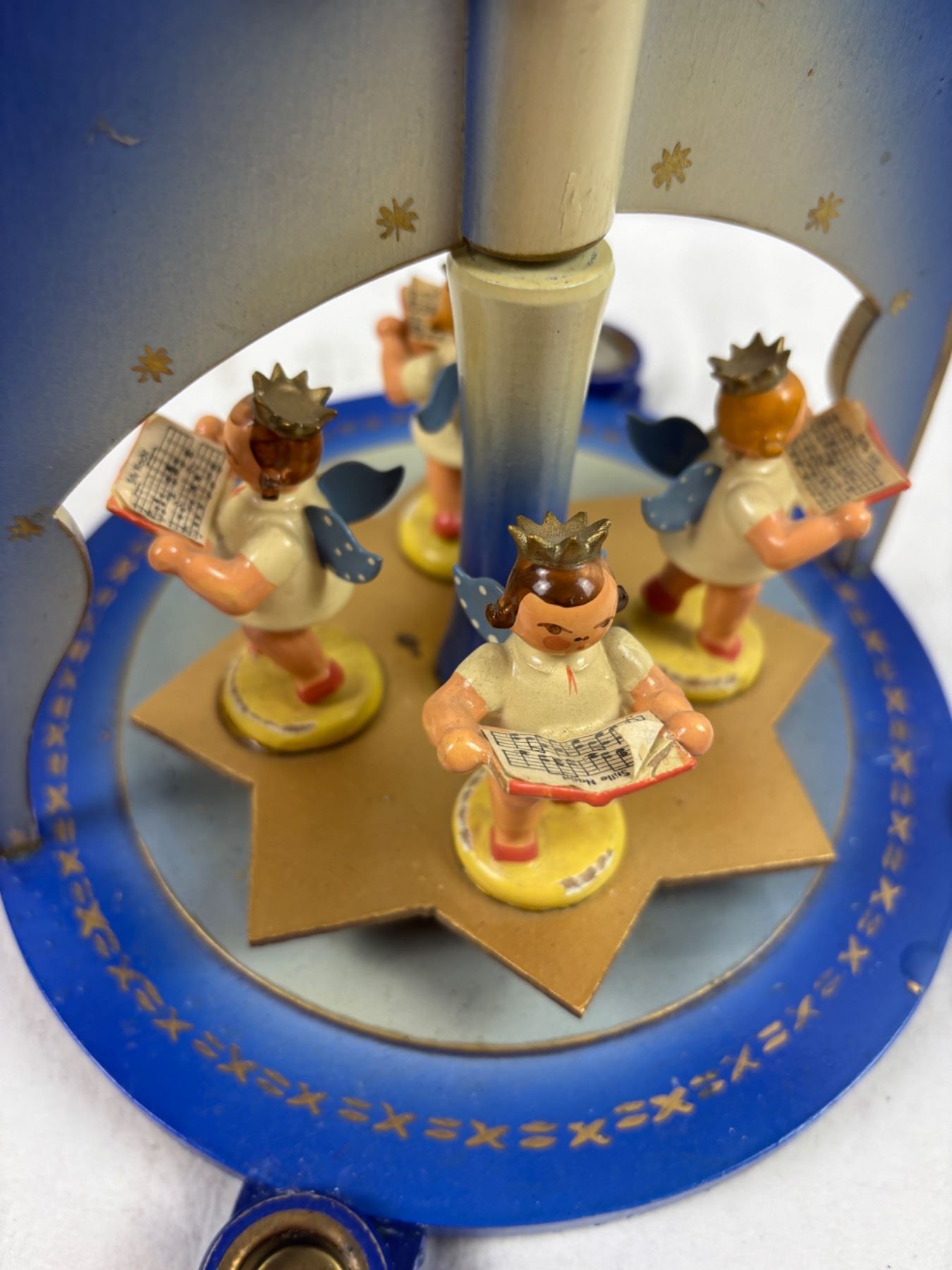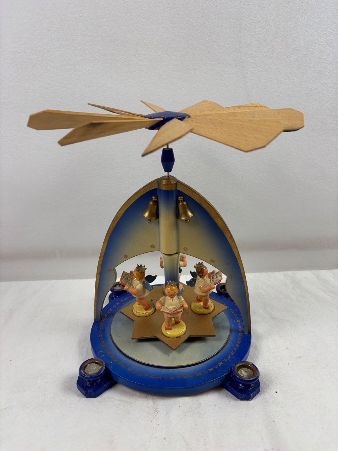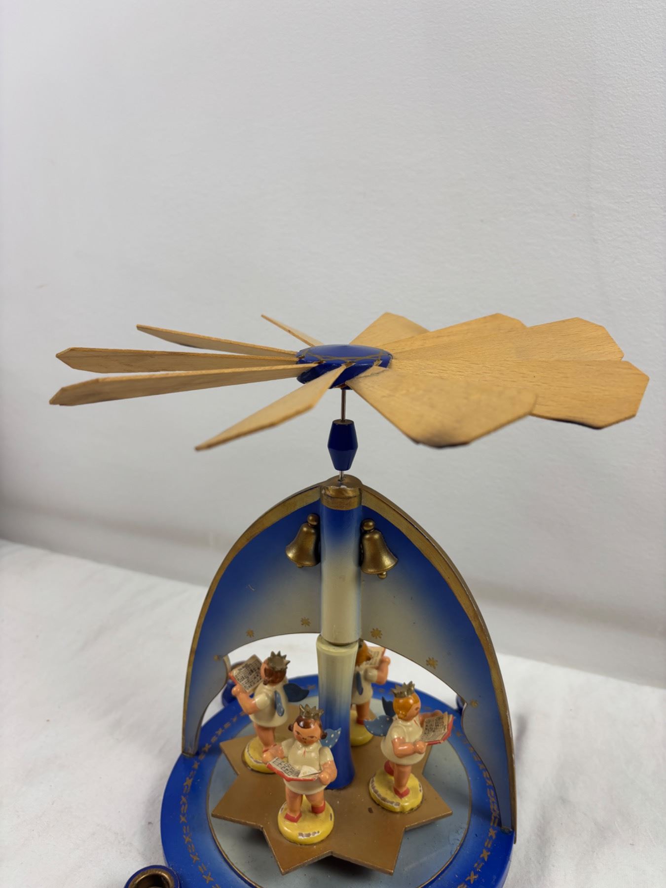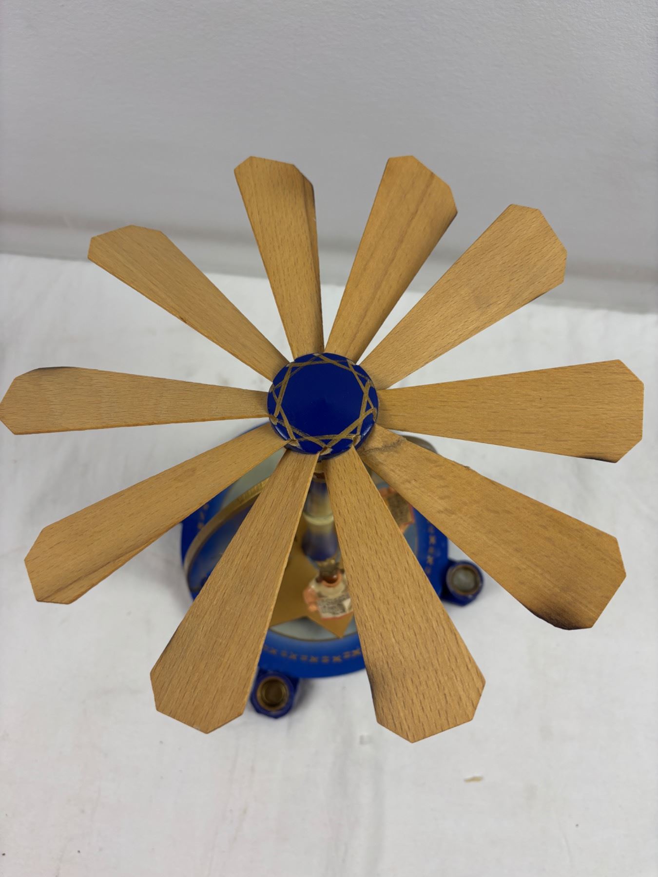 10"diameter x 10"H, some burn marks on the tips of the propeller