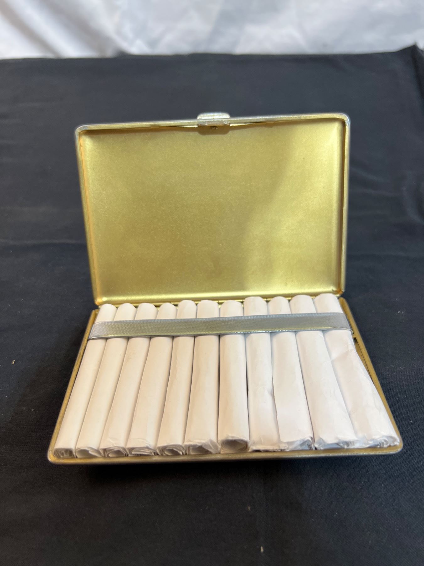 Includes rolling papers. Chromium plate. Some scratches and discolouration on metal.