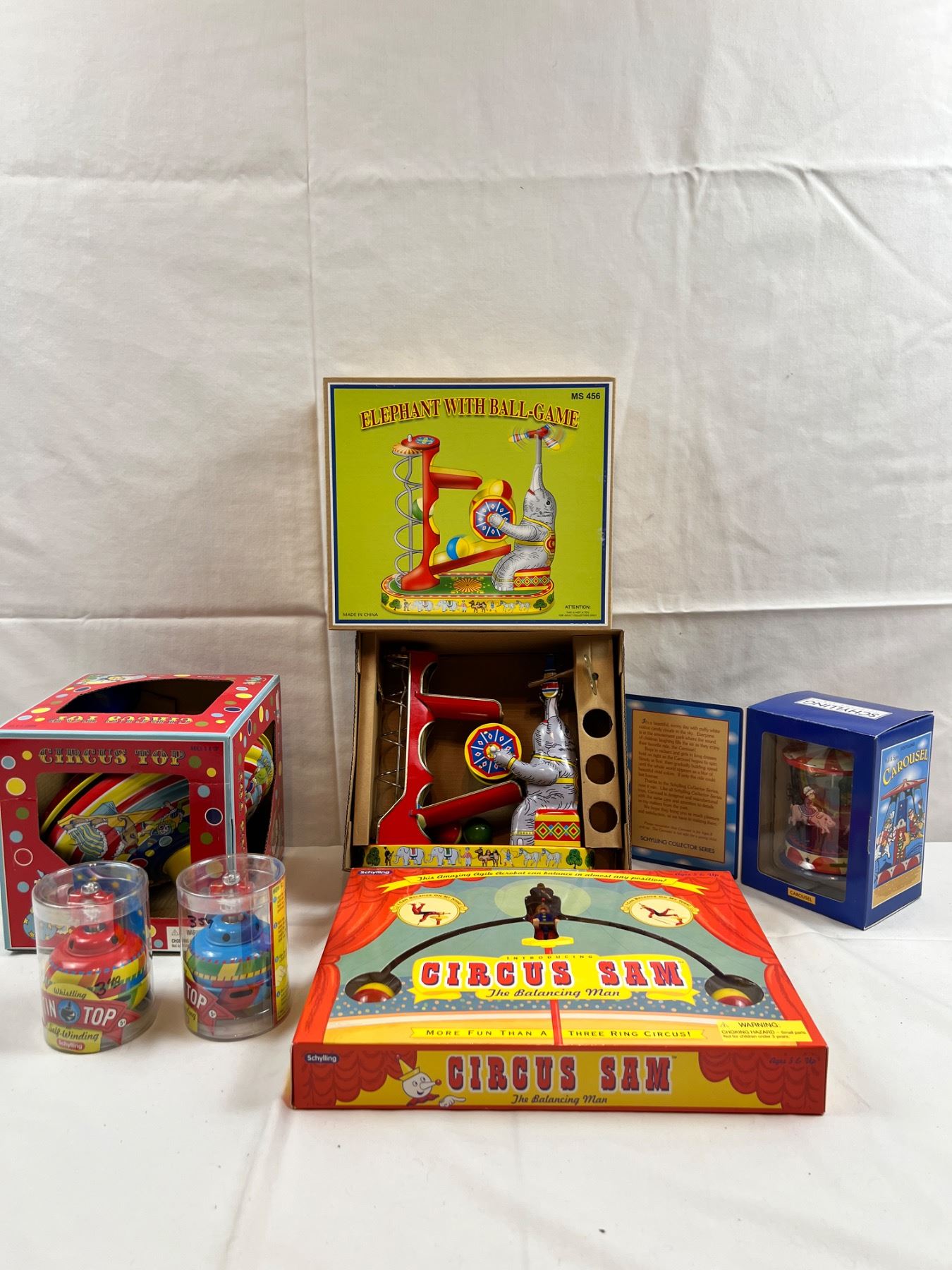 Includes spinning tops, Circus Sam and Elephant Ball Game