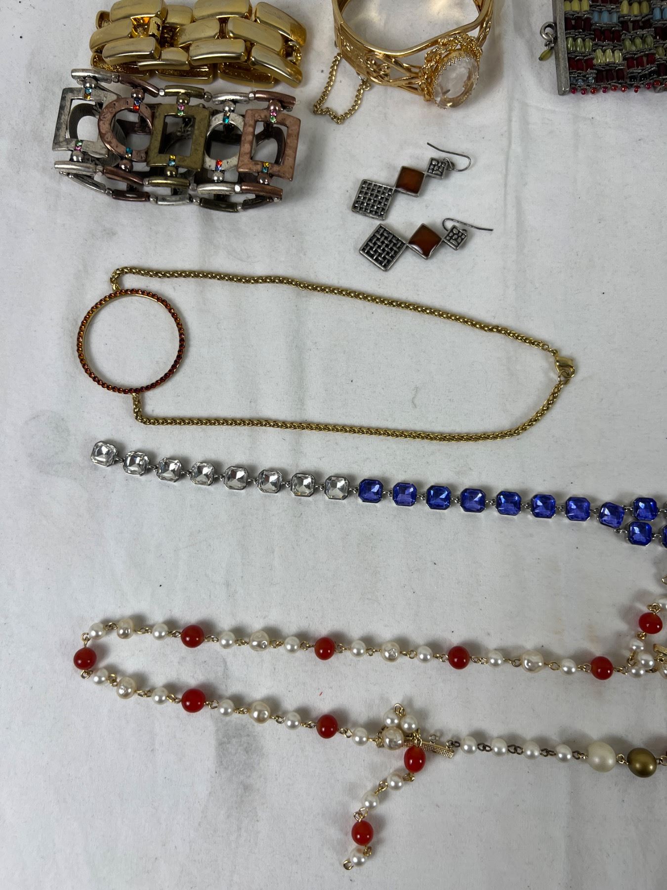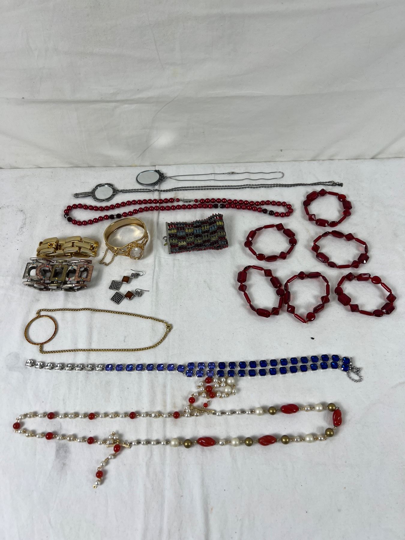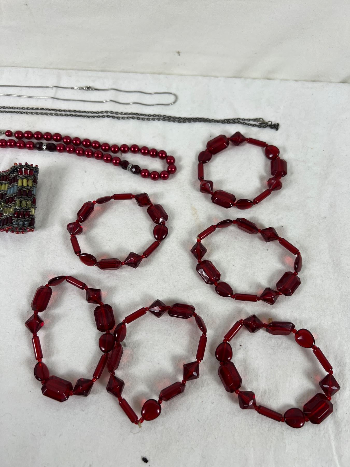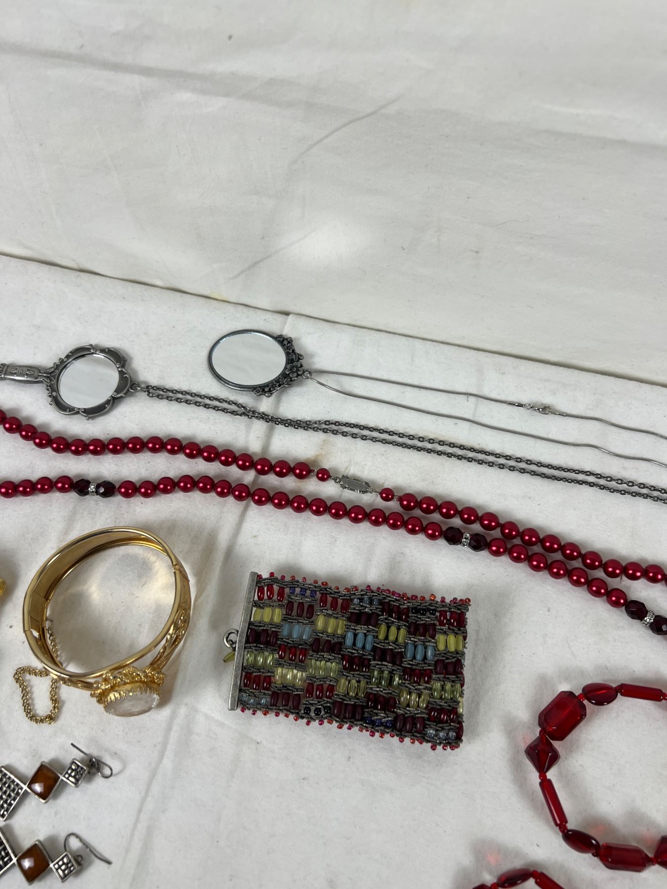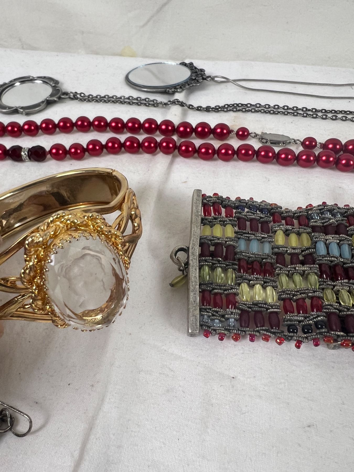 Variety of necklaces and bracelets.