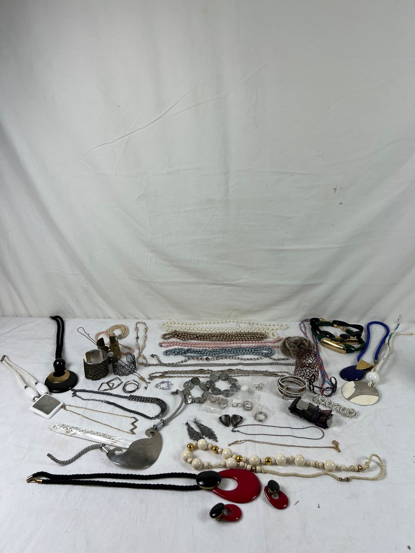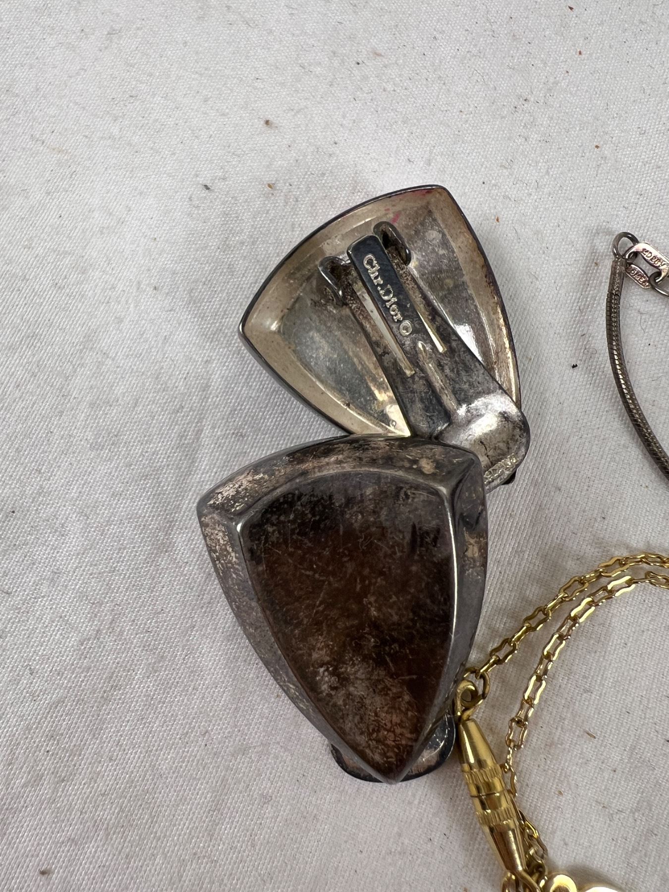 Some branded pieces but wide variety. Brands include Iberia necklace and a pair of vintage Christian Dior earrings. Has one stamped 925 necklace weighing 4.64 grams