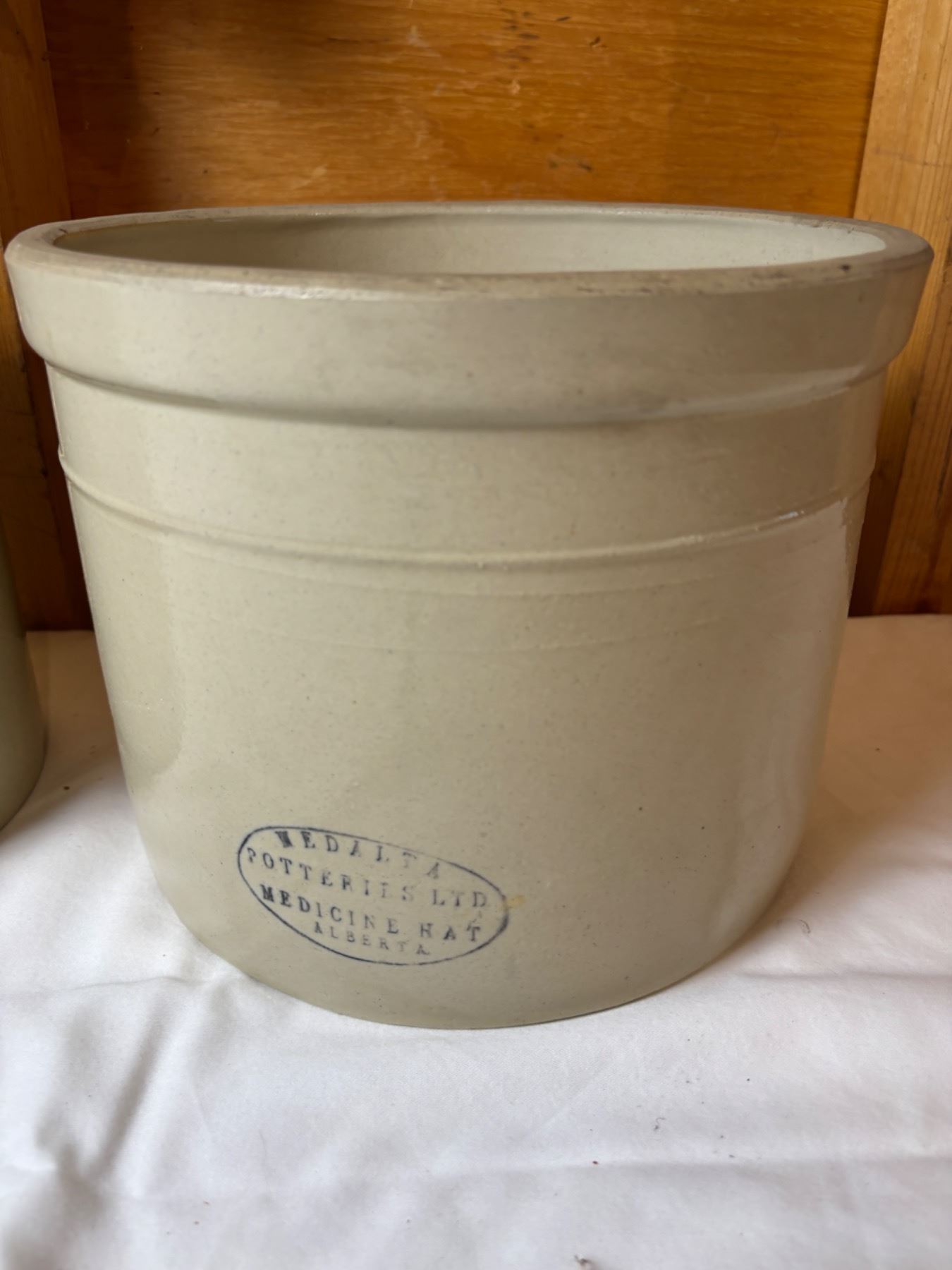 Includes one by Medalta (9.5"diameter x 7.5"H)