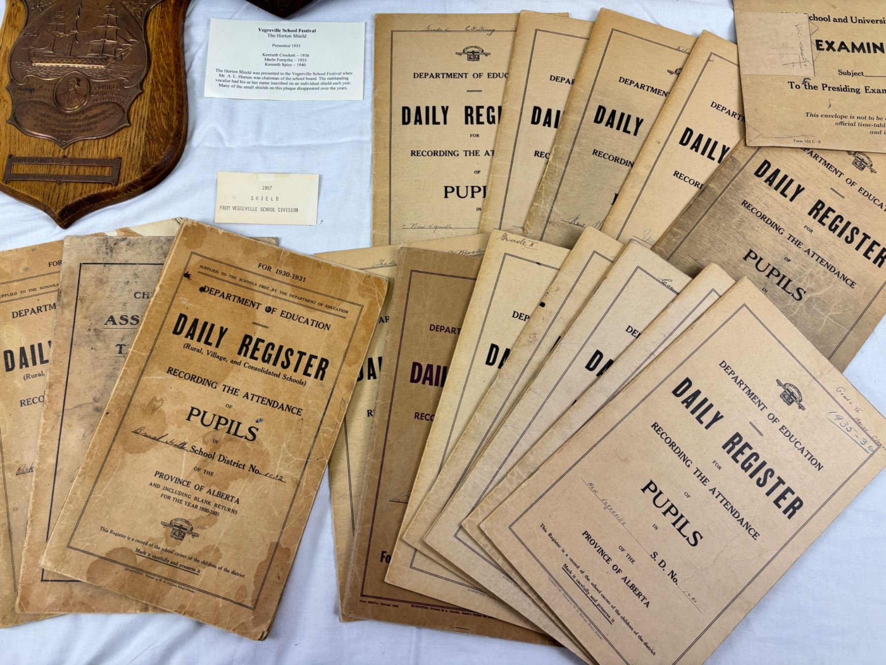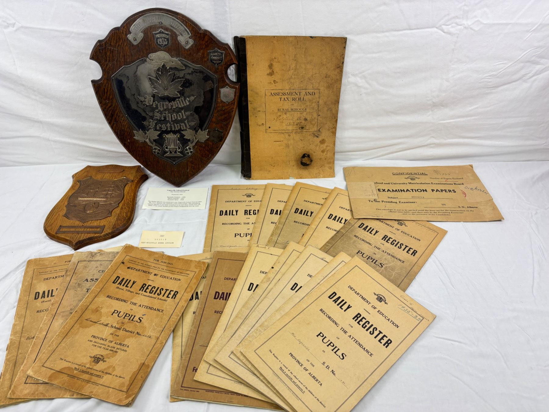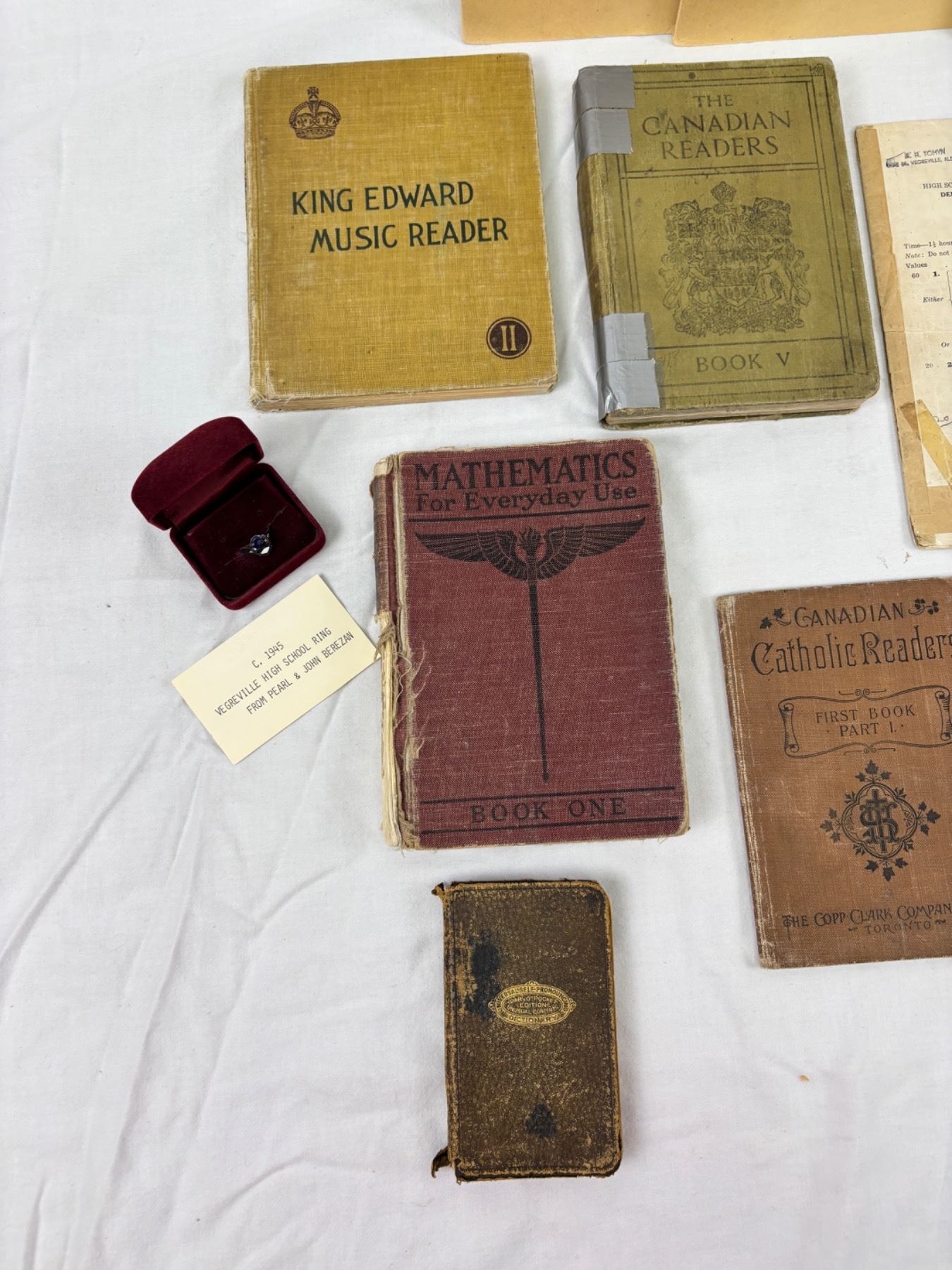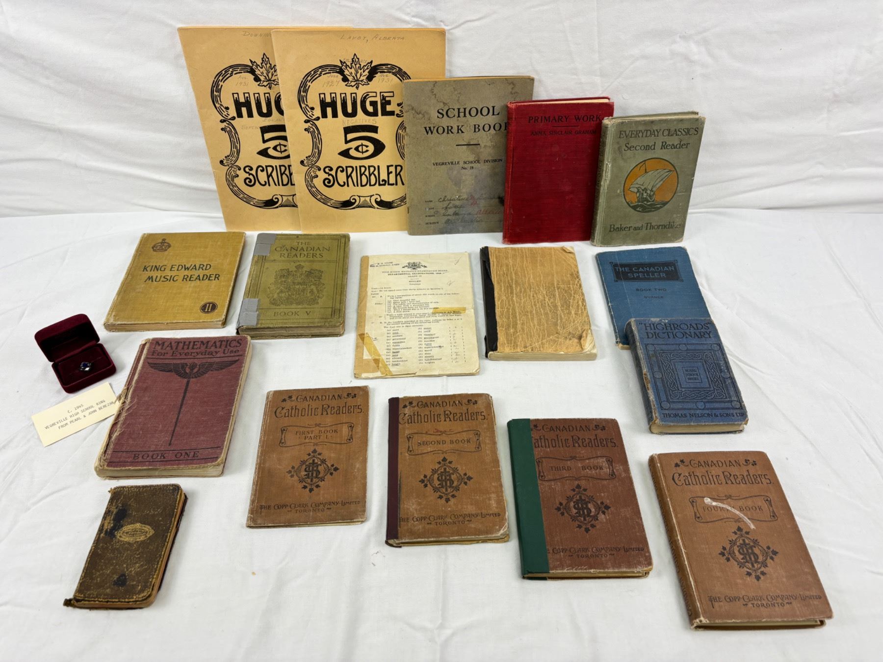 Includes, C.1945 Vegreville High School Ring, Everyday Classics, The Canadian Readers (spine is damaged), Canadian Catholic Readers, Department of Education Daily Register, Vegreville School Plaques, etc.