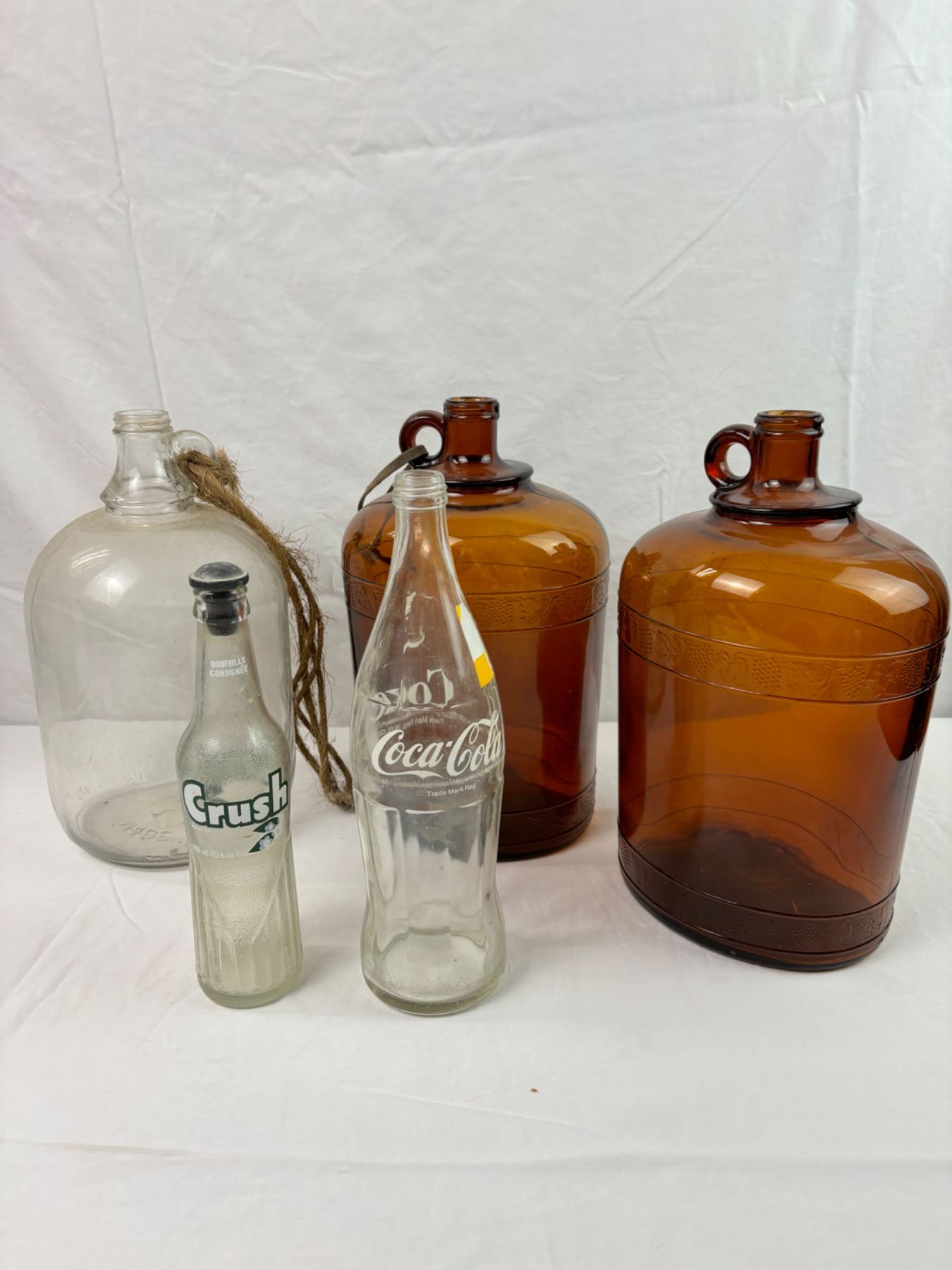 Includes 2 amber glass bottles (12.5"H), Crush, Coca Cola, etc.