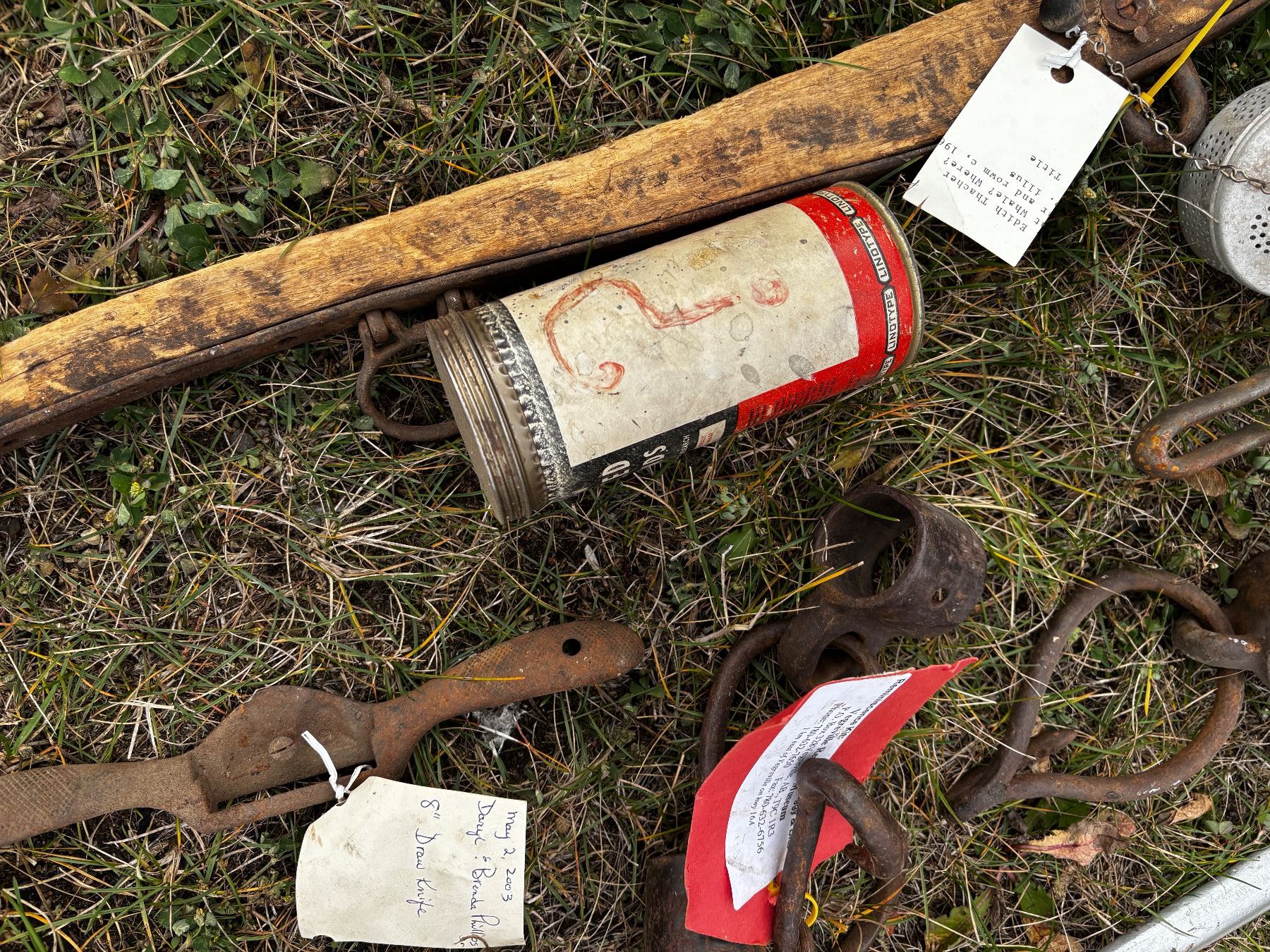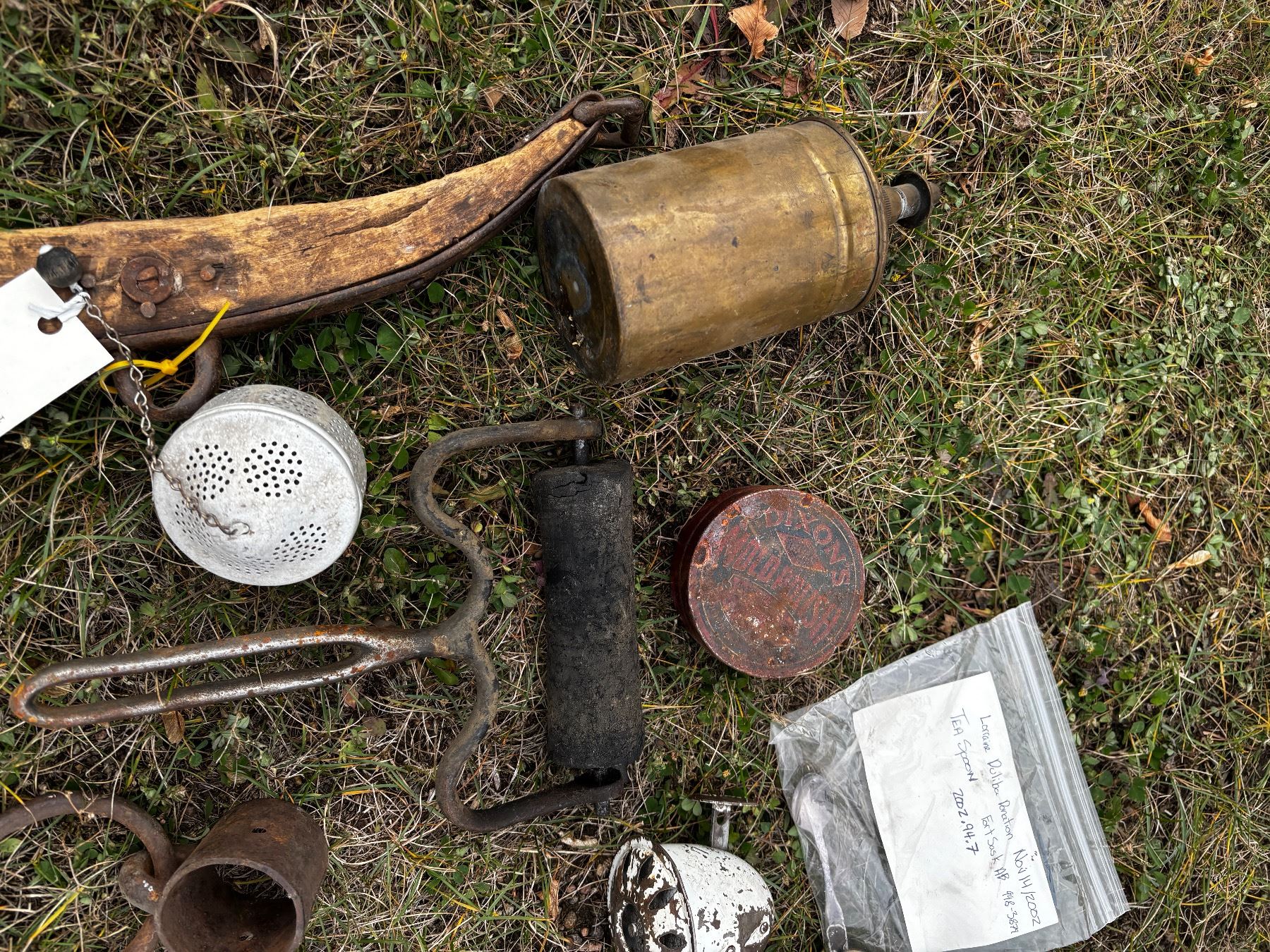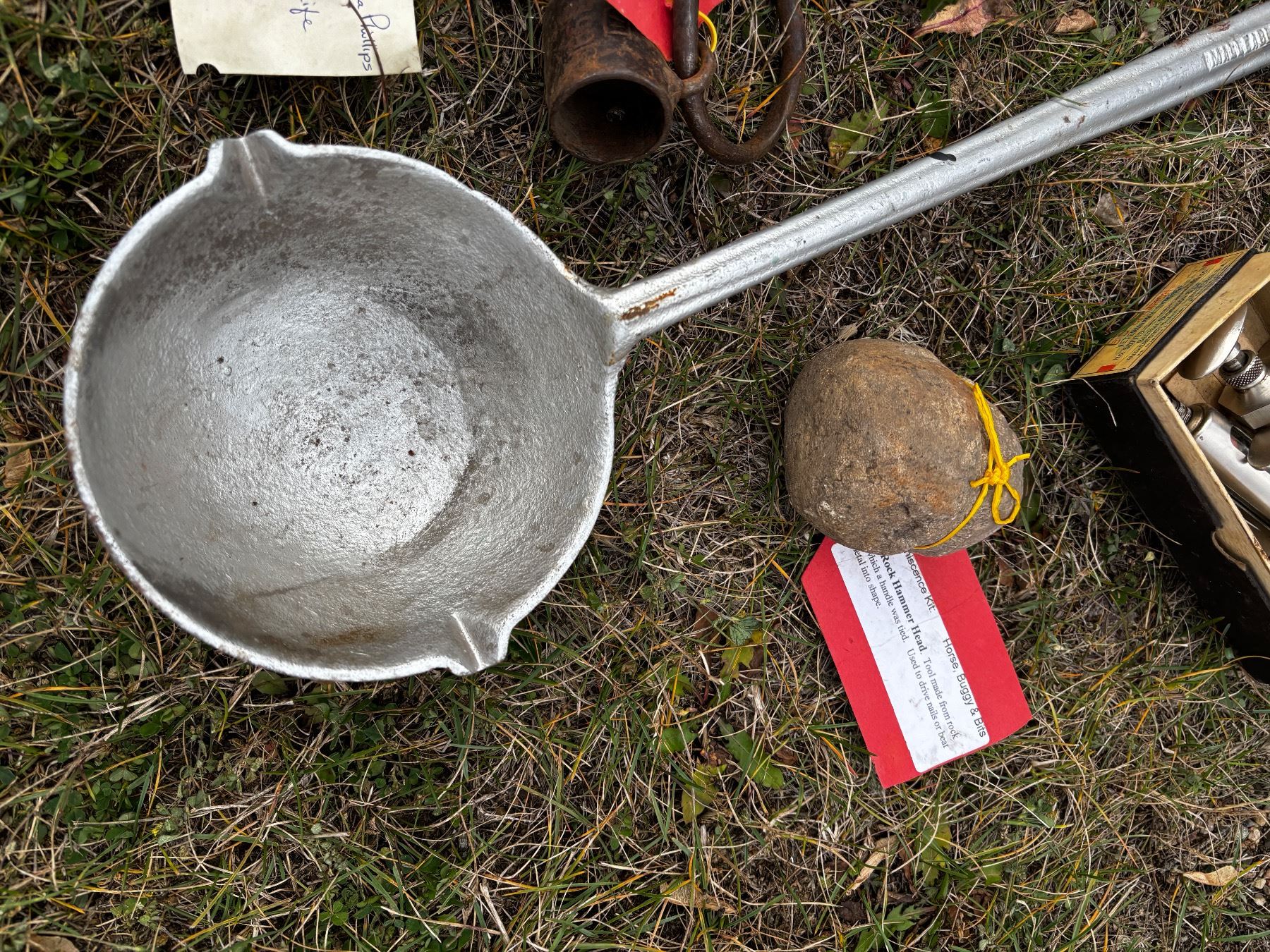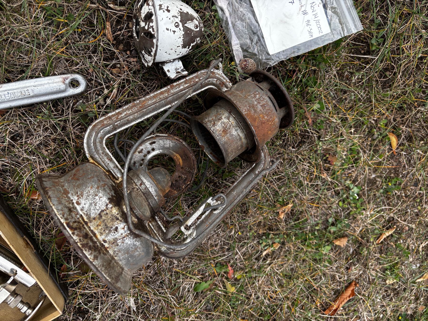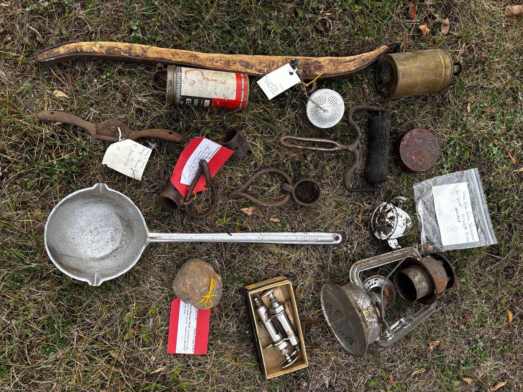 Includes, Lantern (no glass), rock hammer head, etc.