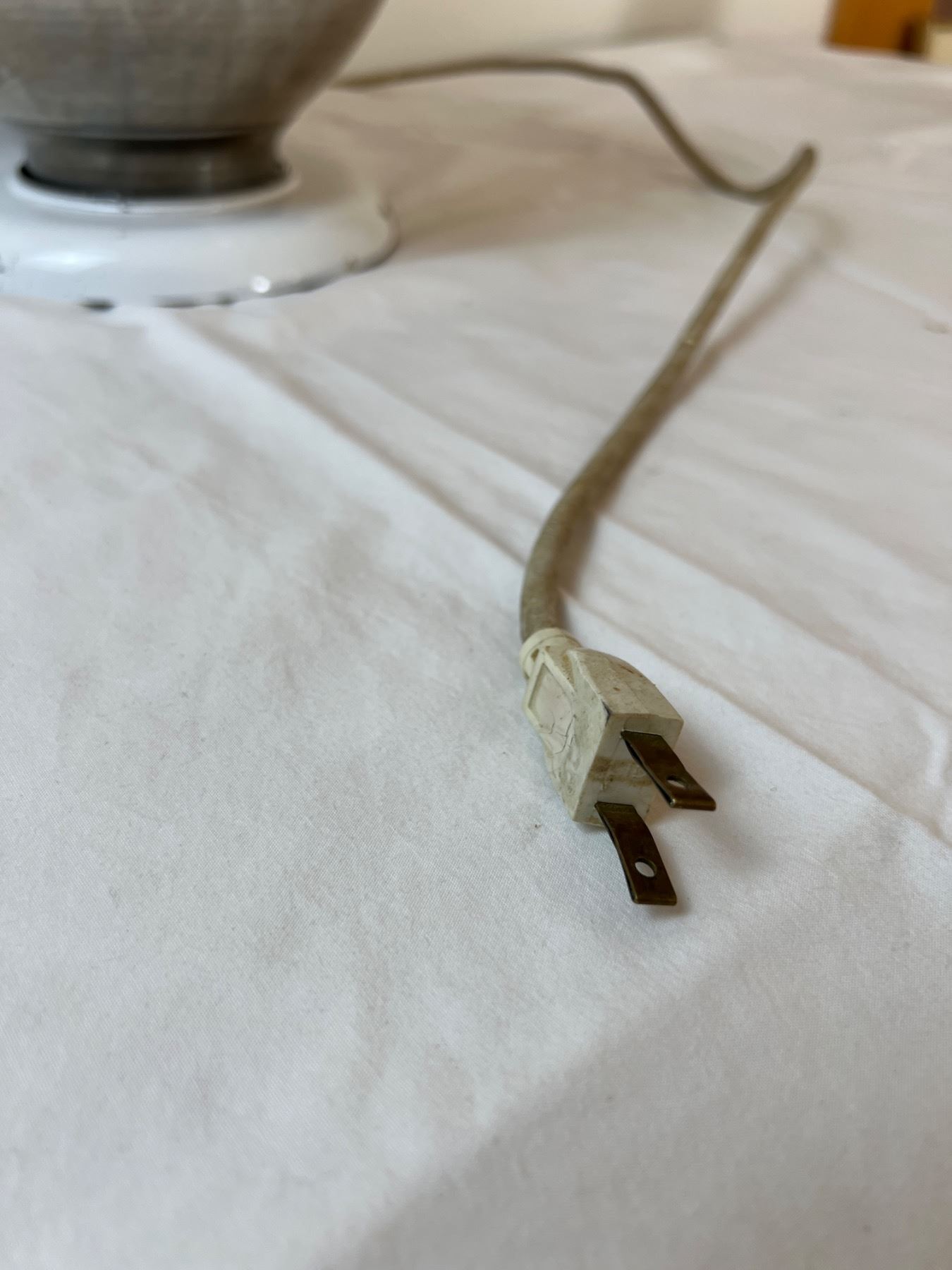 Some staining around logo. Powers on and works. Power cord has staining and wear but intact.