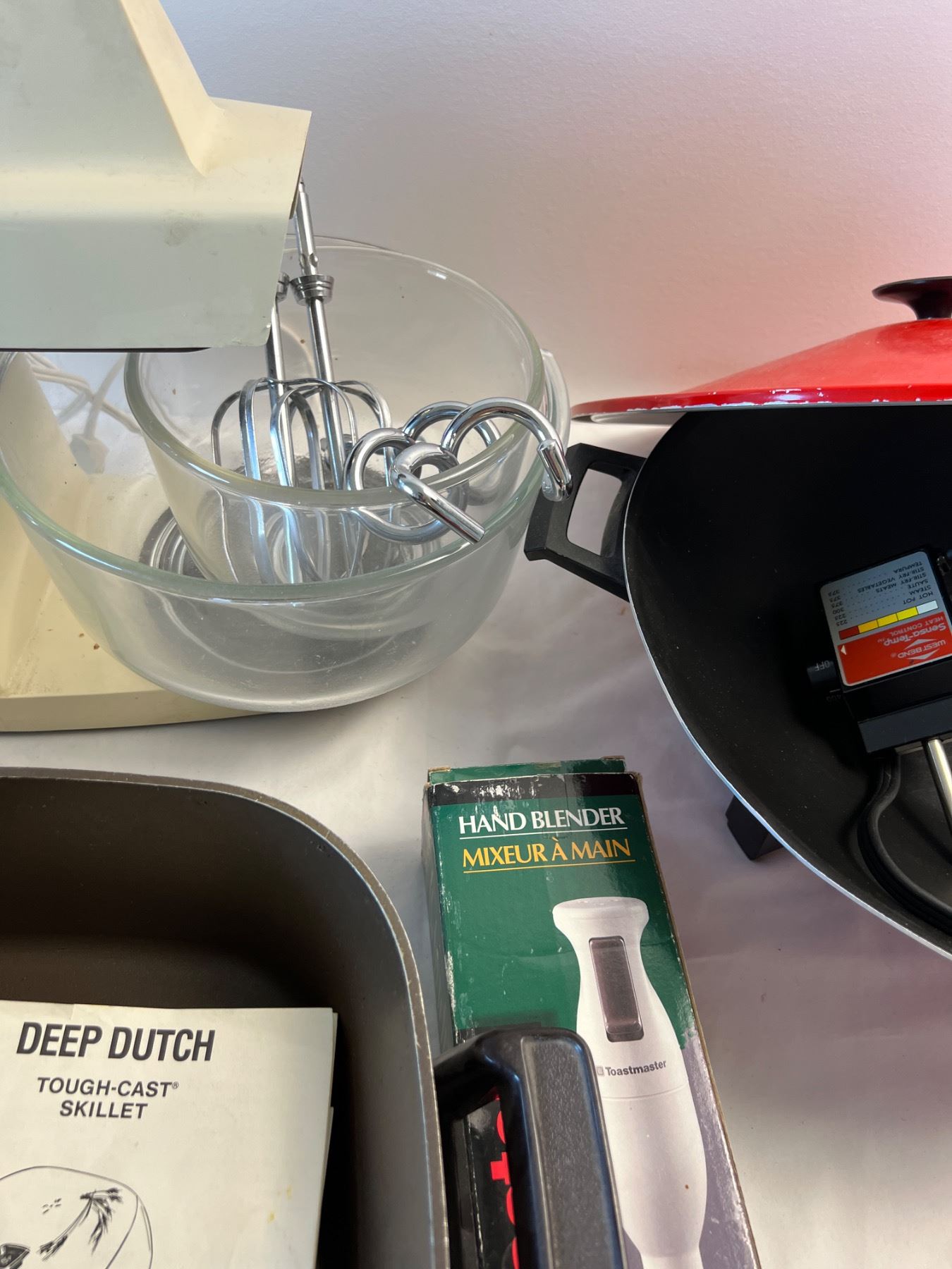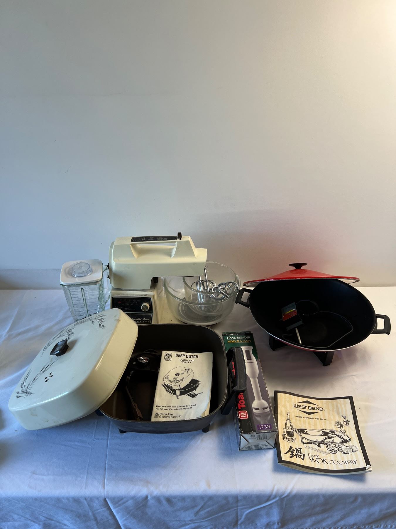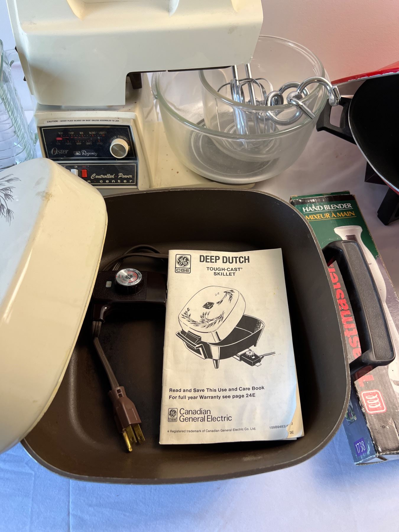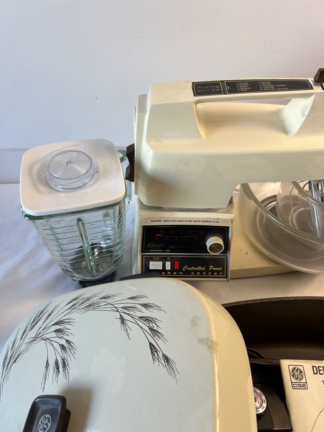 Includes vintage Oster Kitchen Centre, blender and mixer. All appliances power on.