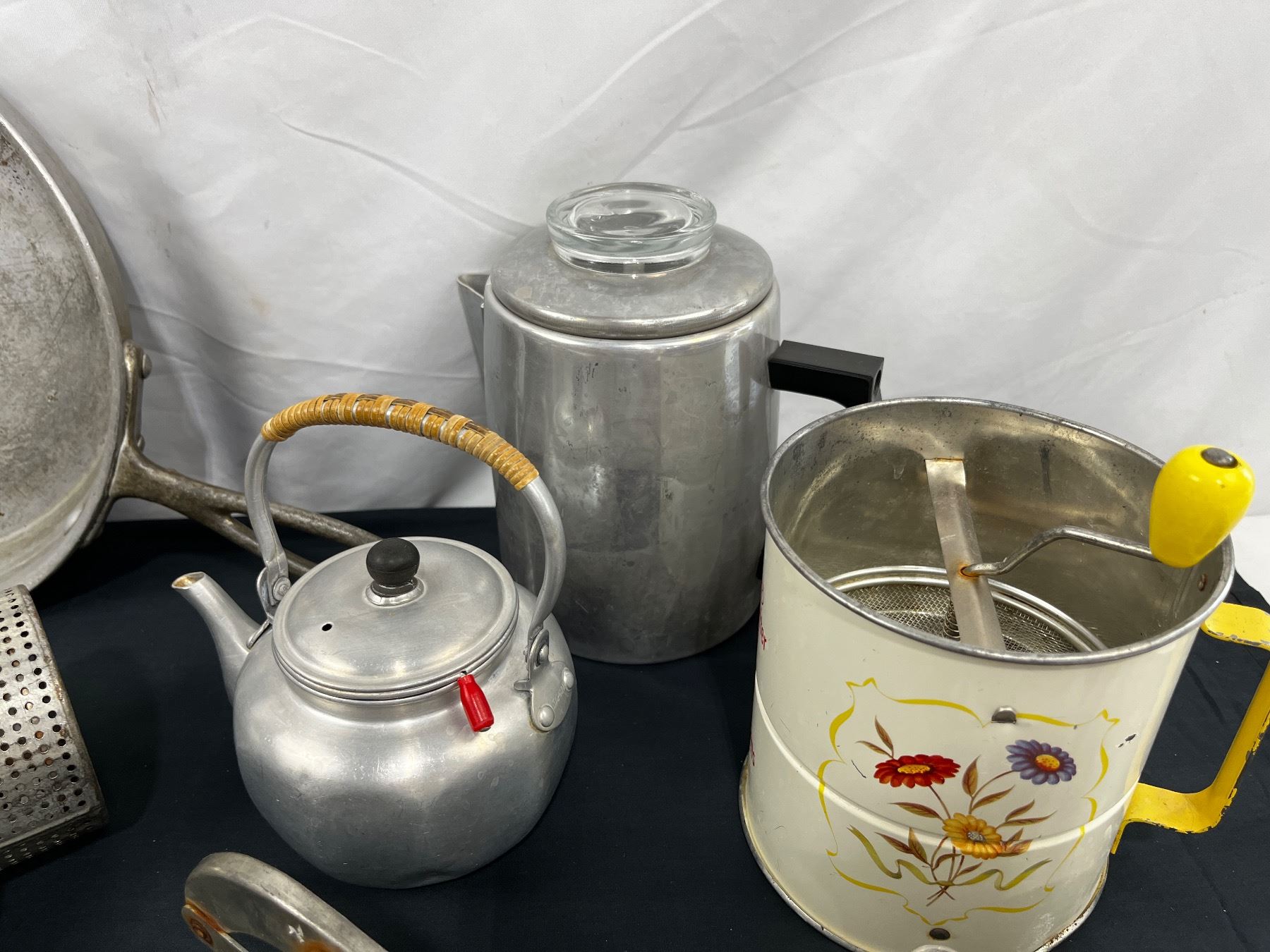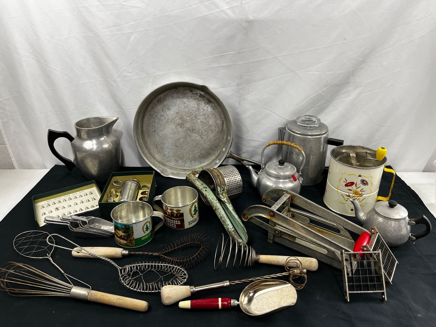 Includes, Wear-Ever No. 938 Aluminum pan, Androck Tripple Sifter, The "Villa" Potatoe Chipper, etc.