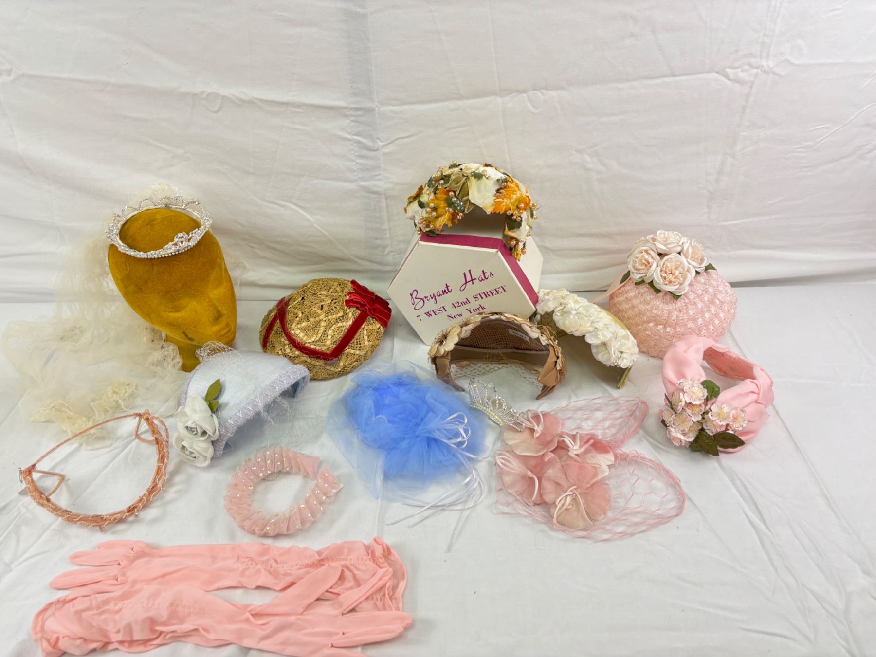 Some of the lace is frail, some slight discolouration and wear on the fabrics