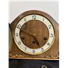 Has key, unknown if fully working but does tick once winded. Measures 16"W by 6"D by 9"H. Some discolouration to wood on clock face.