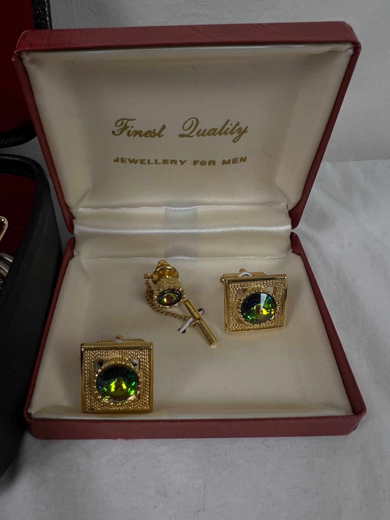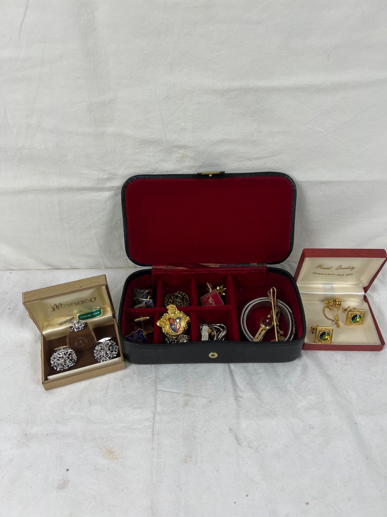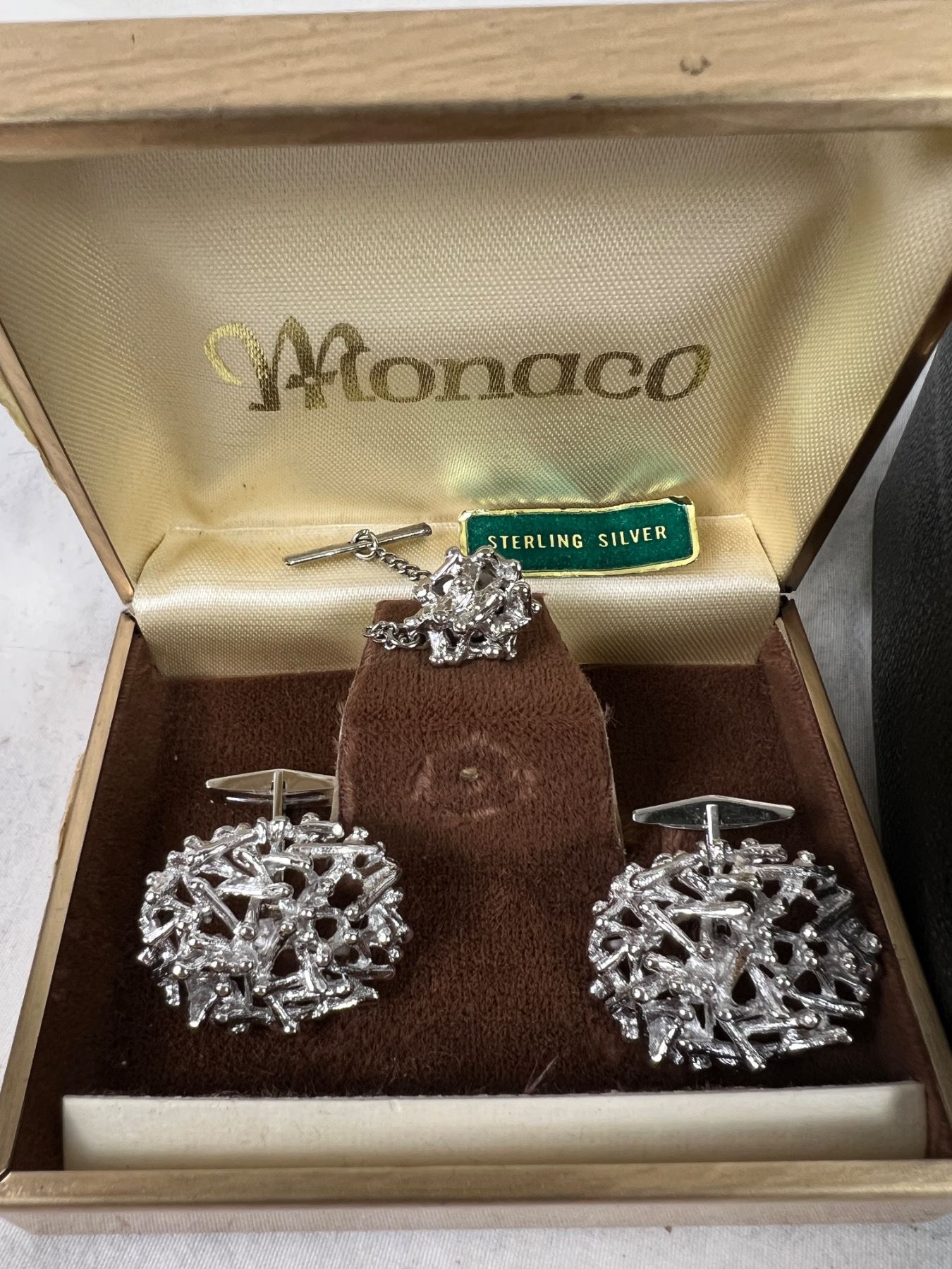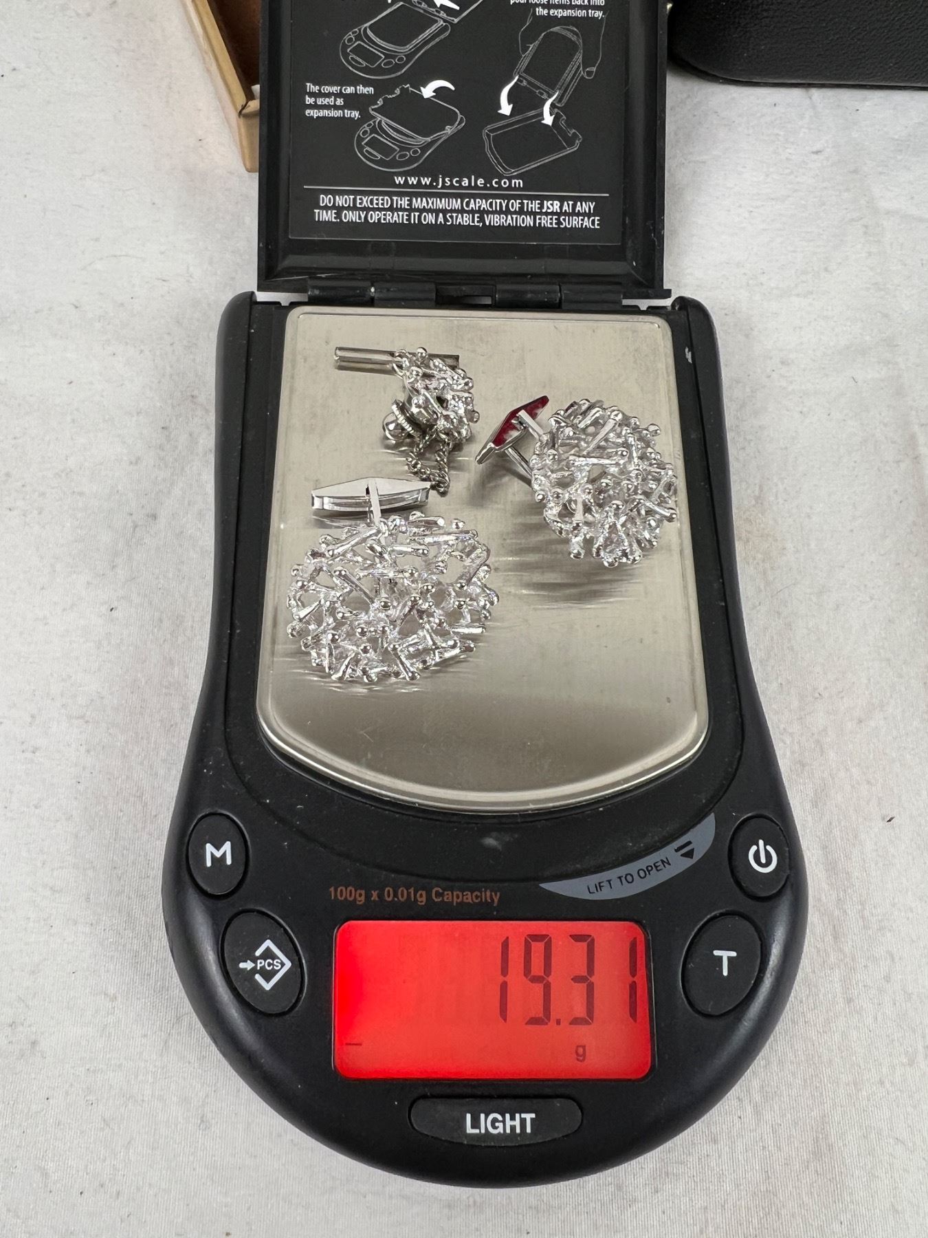 Includes a sterling silver cuff link set which weighs in at 19.31 grams.
