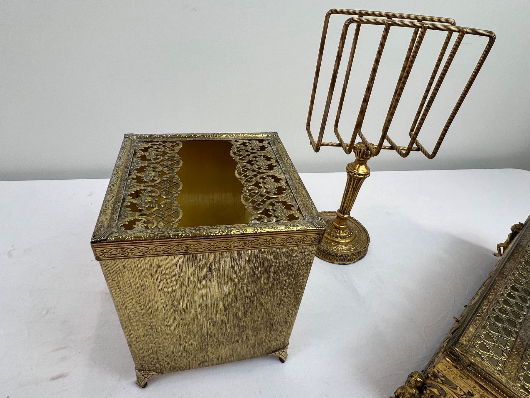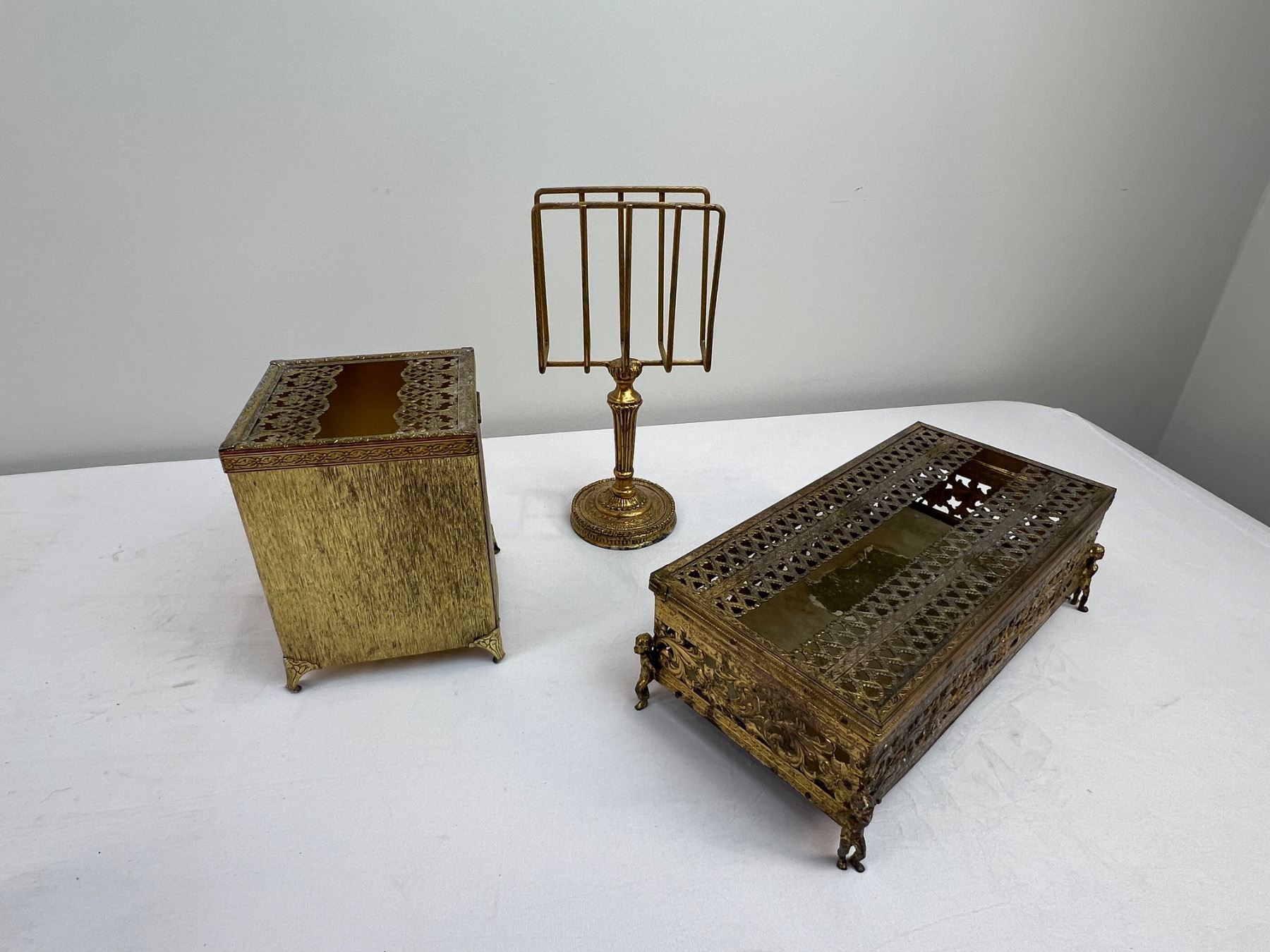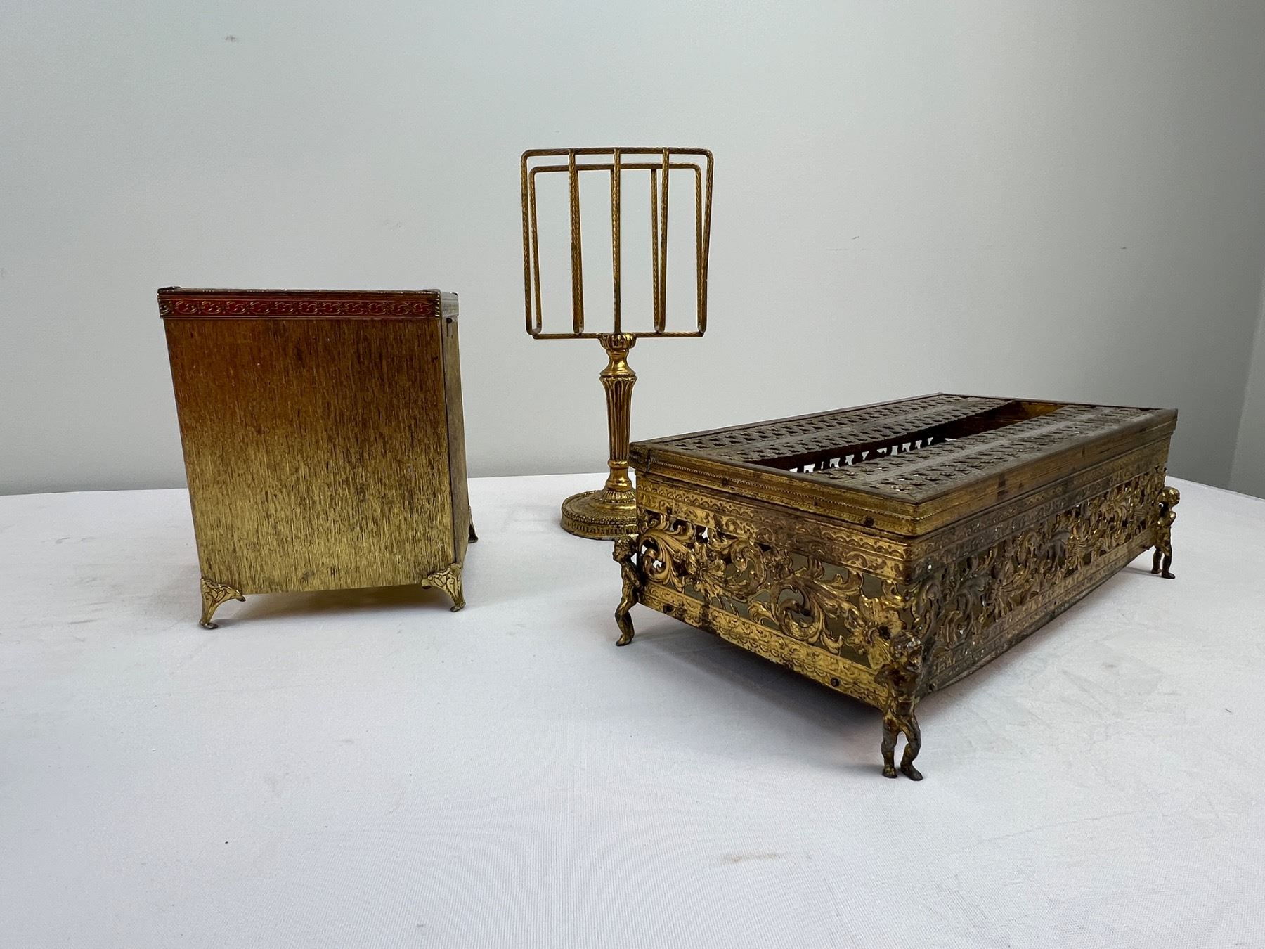 Includes shorter tissue box 10.5" long x 5 1/4" wide x 3.5" tall - taller tissue box 5" x 5" x 6" tall - holder 9.5" tall