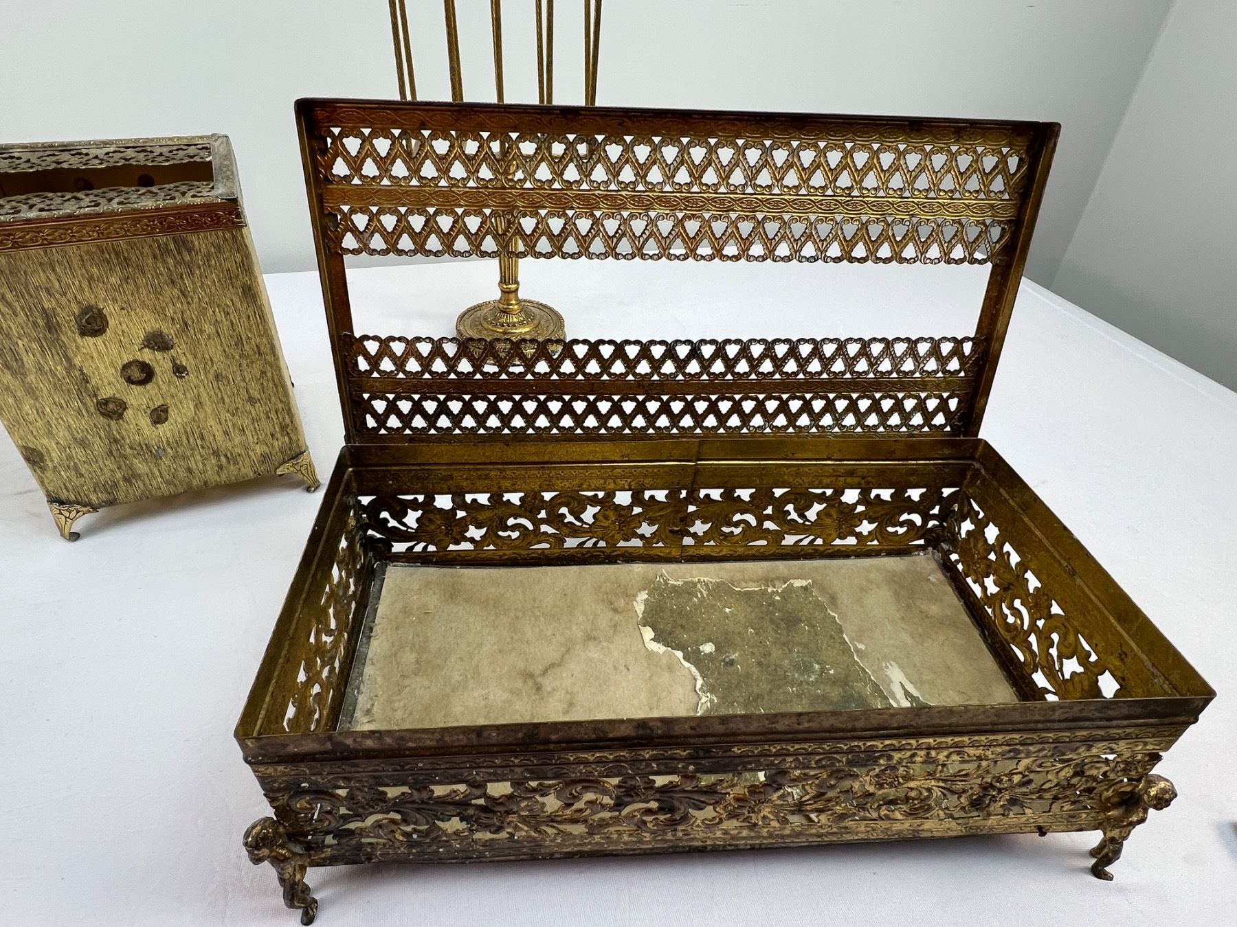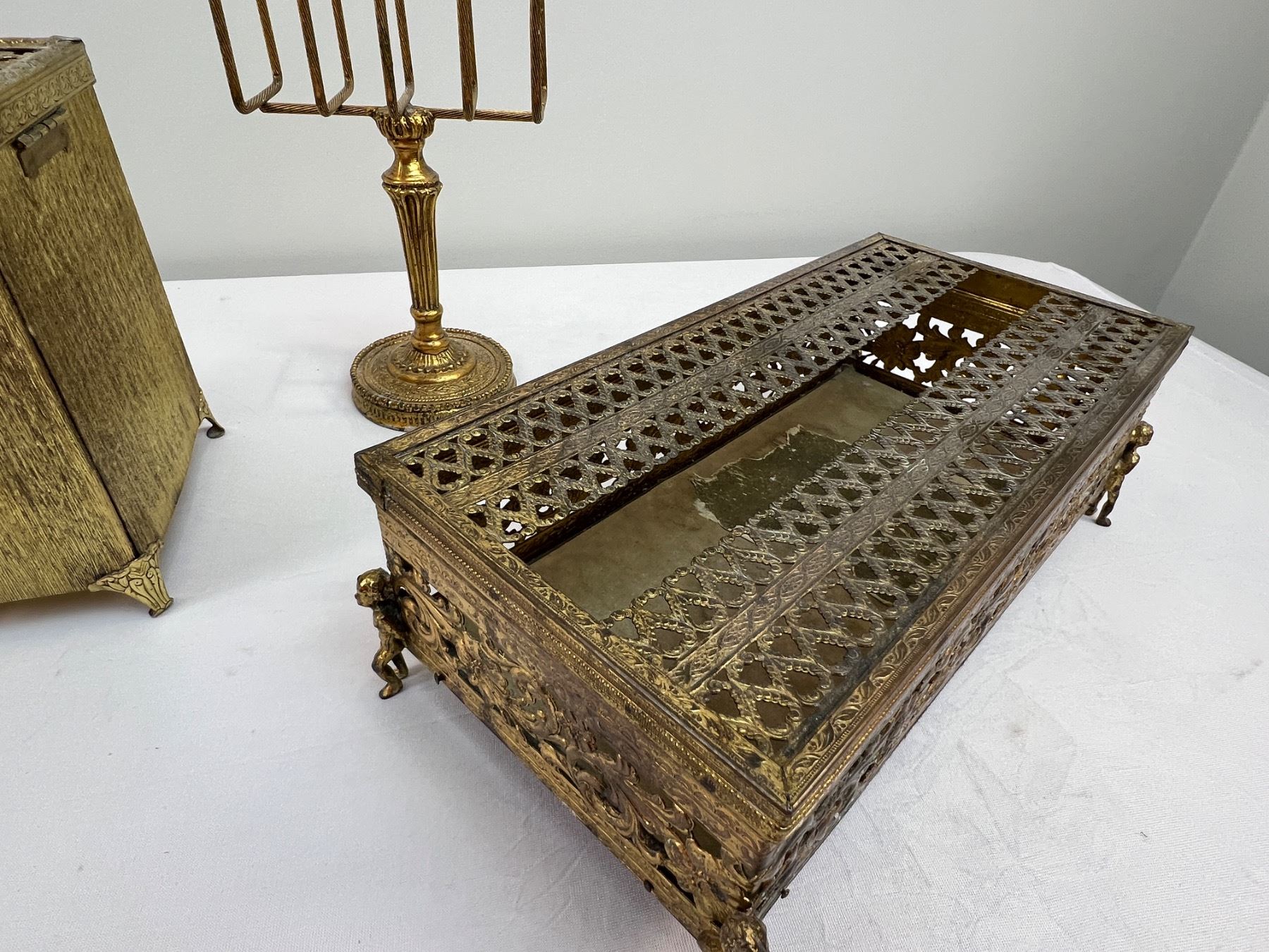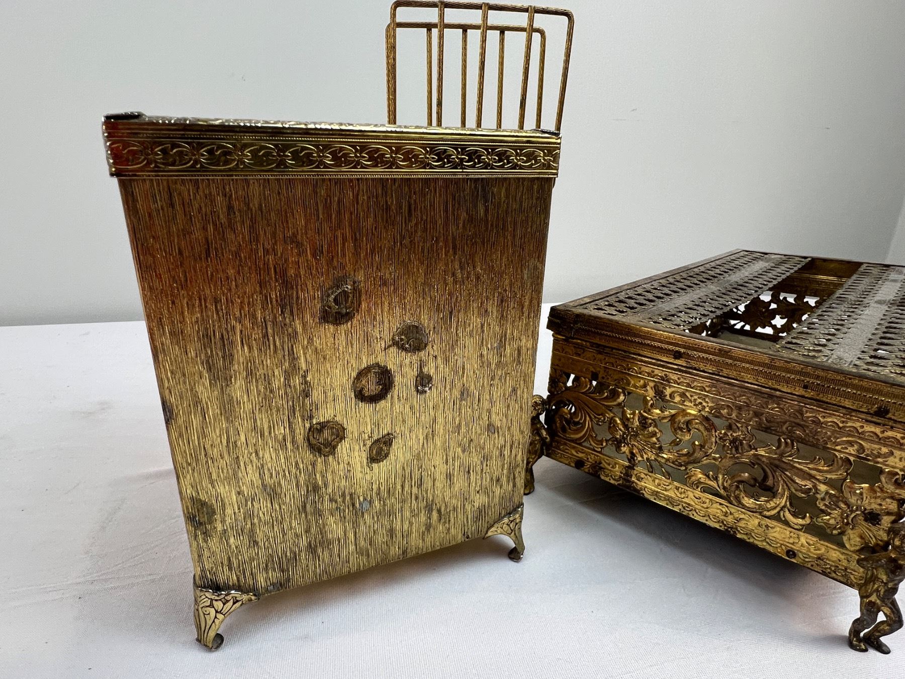 Includes shorter tissue box 10.5" long x 5 1/4" wide x 3.5" tall - taller tissue box 5" x 5" x 6" tall - holder 9.5" tall
