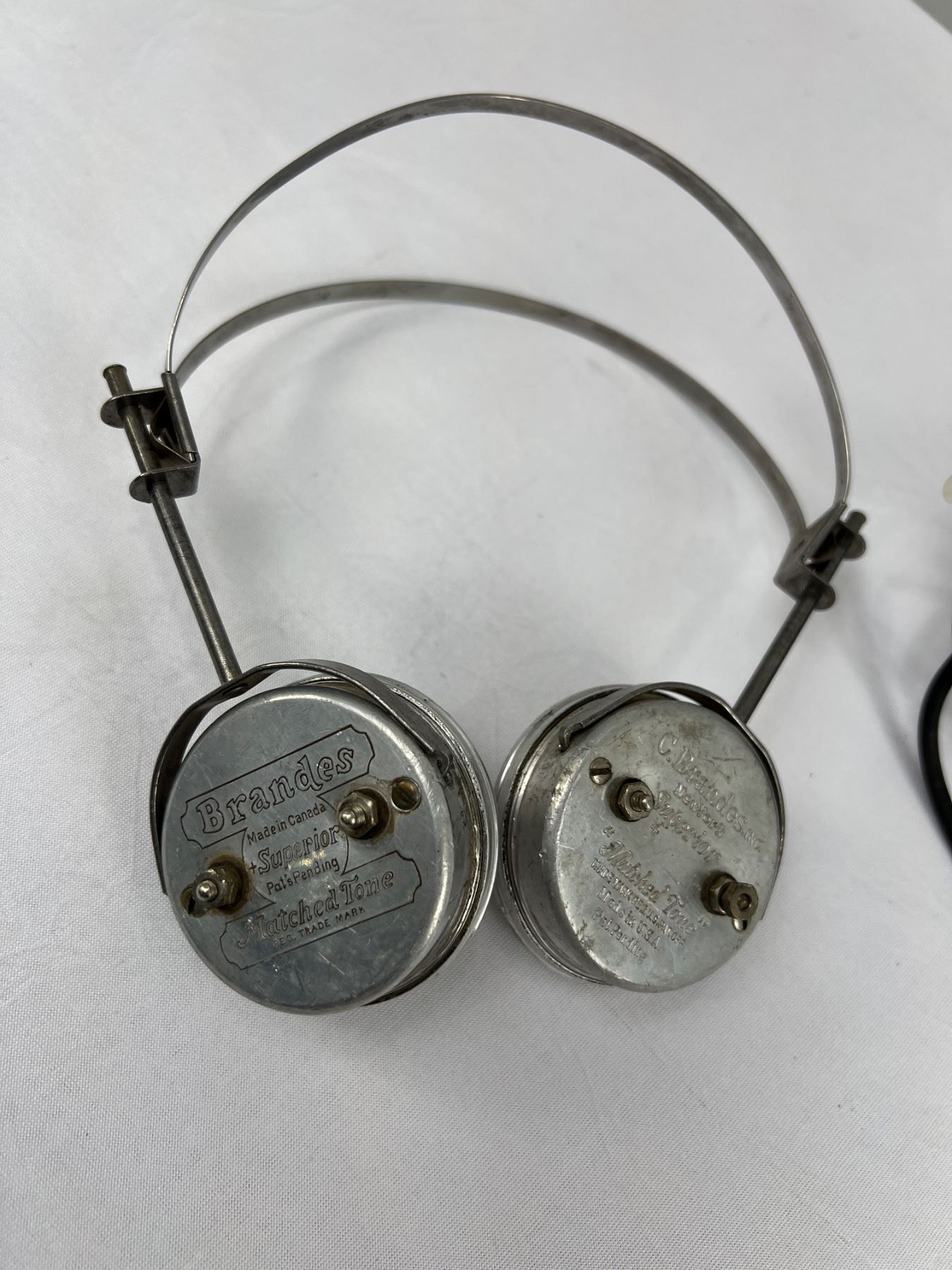 Unknown working condition, end of the cord has been electrical taped, 15"H, includes Brandes headphones
