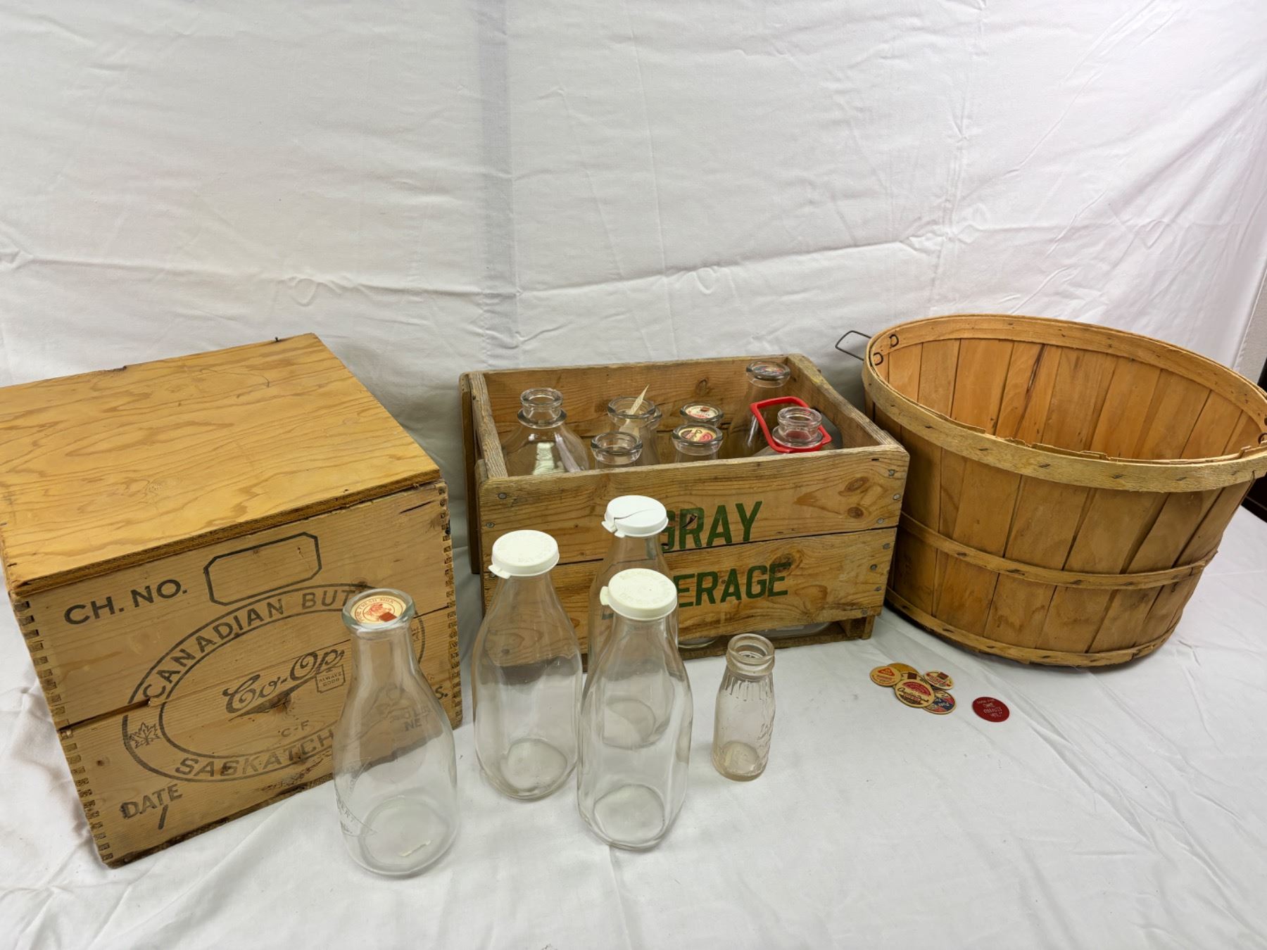 Includes, Canadian Butter Crate, Gray Beverage crate (18"L x 10.5"W x 11.5"H), etc.