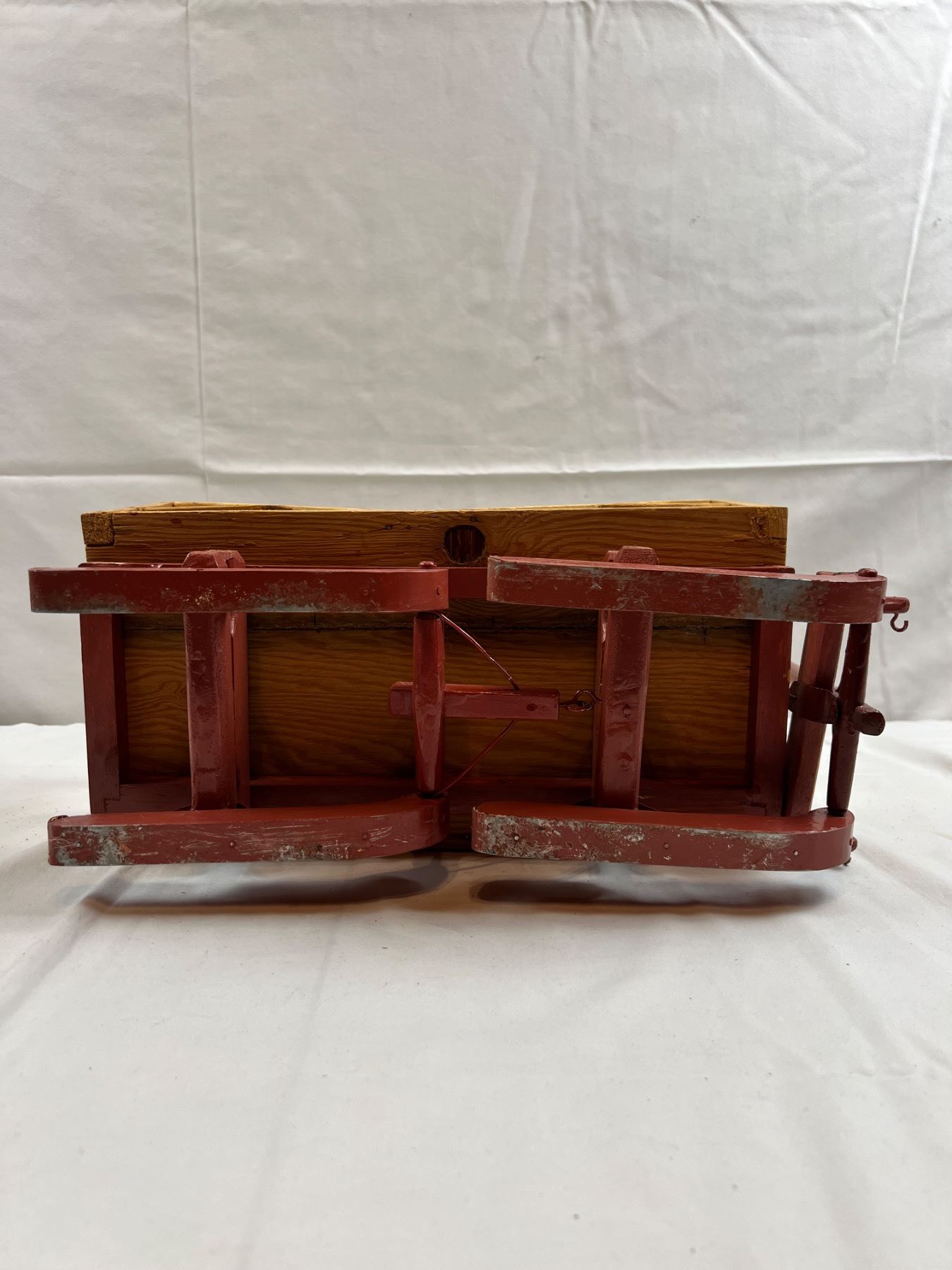 Wear to wood surface. Two pieces, unsure of where they go. Measures 14" L by 8" H and 7" deep
