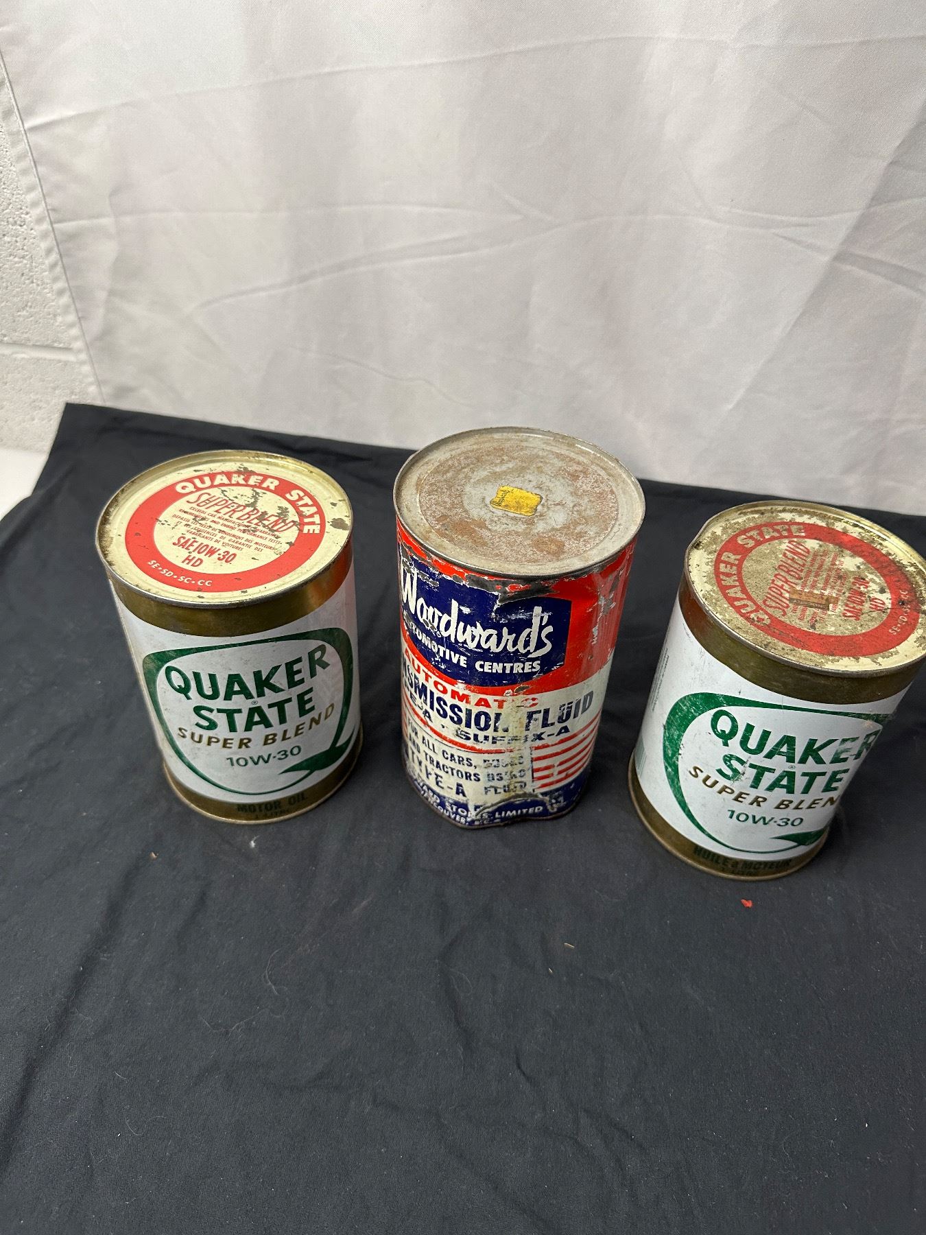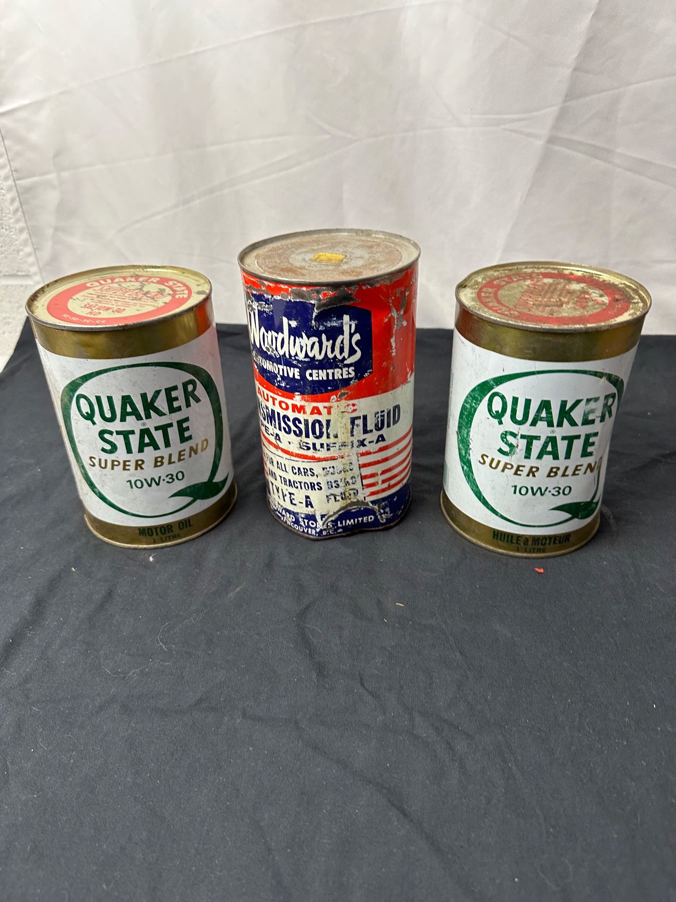 3 in total including Quaker State Super Blend 10W-30, Woodwards automatic transmission fluid type A, full cans