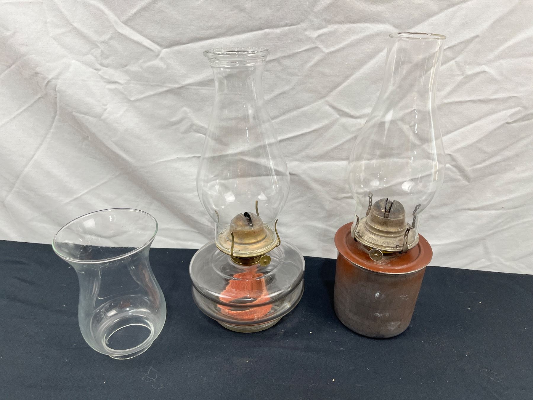 Includes, Grand Rapids Mich White Flame Co. 14"H, Risdon 13"H, spare hurricane shade