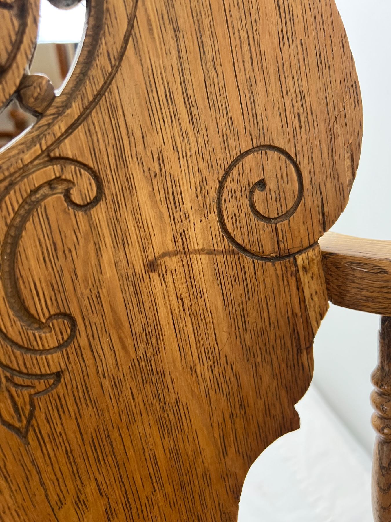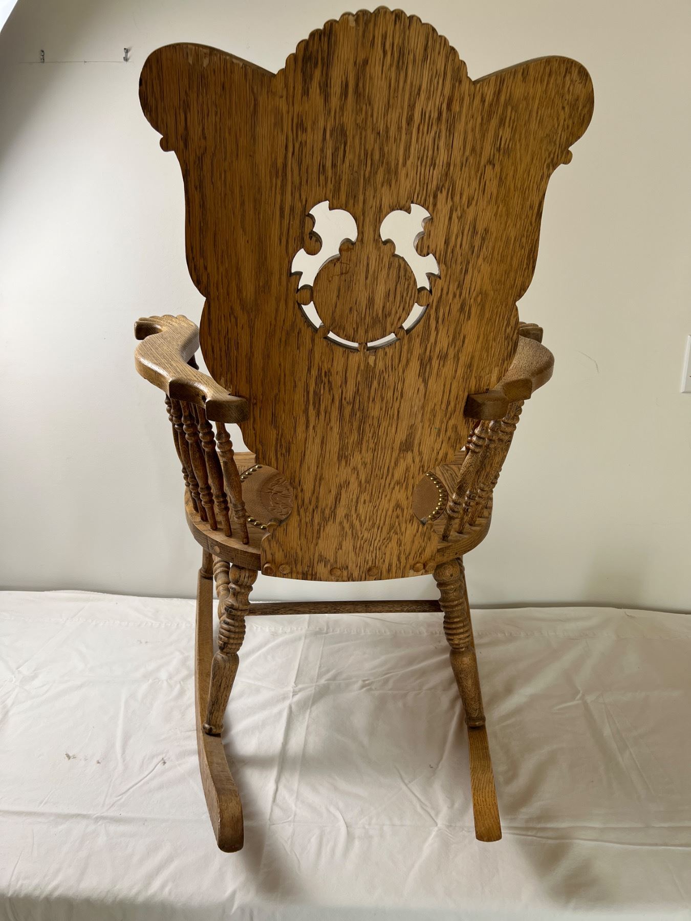 36"H by 26"W by 31"D. Some stains and a crack in the wood on the seat.