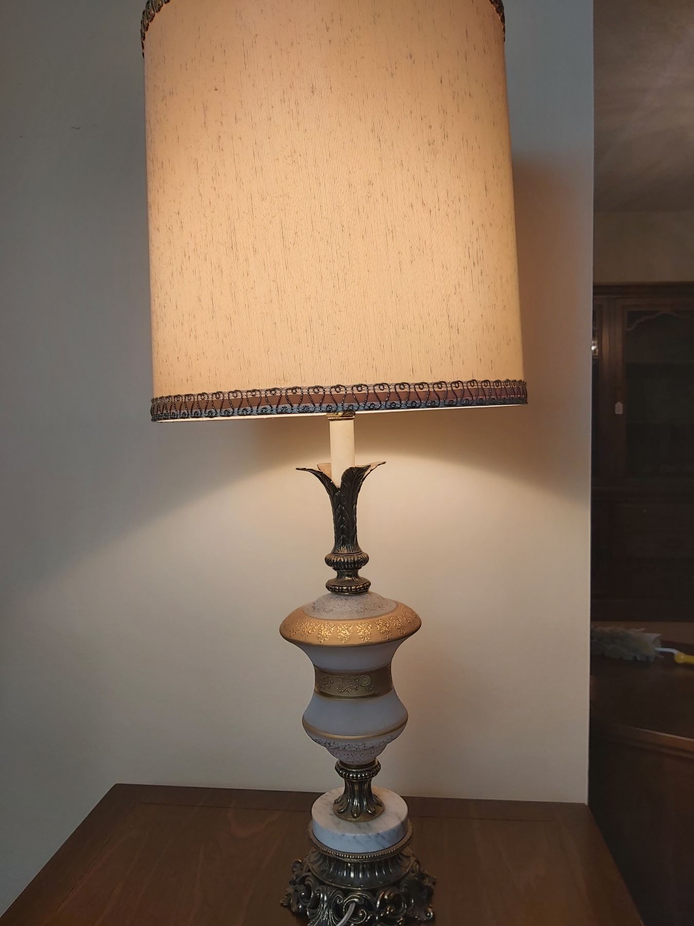 Marble base, Glass made in W.Germany, works, 36"H x 14"W