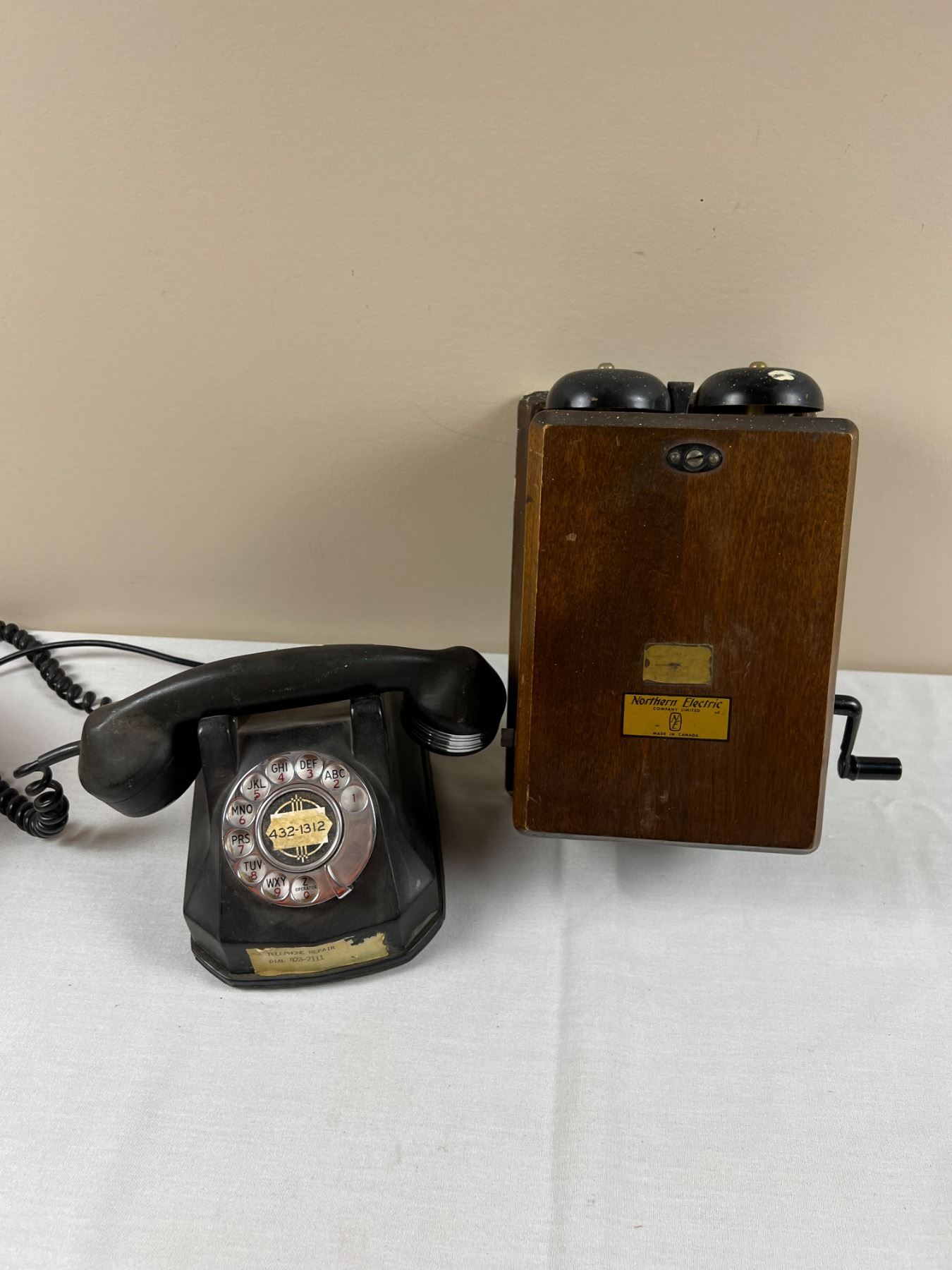 Includes a Northern Electric phone (10"L x 7"W), and a Monophone with some wear