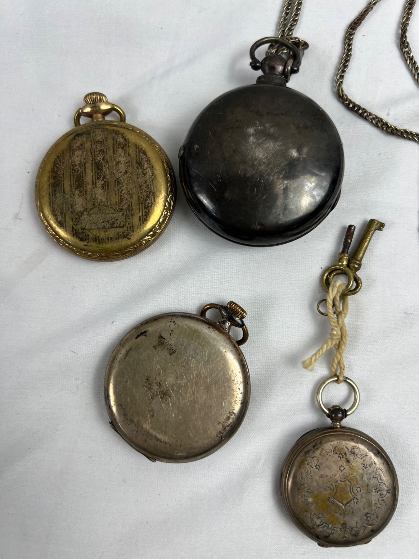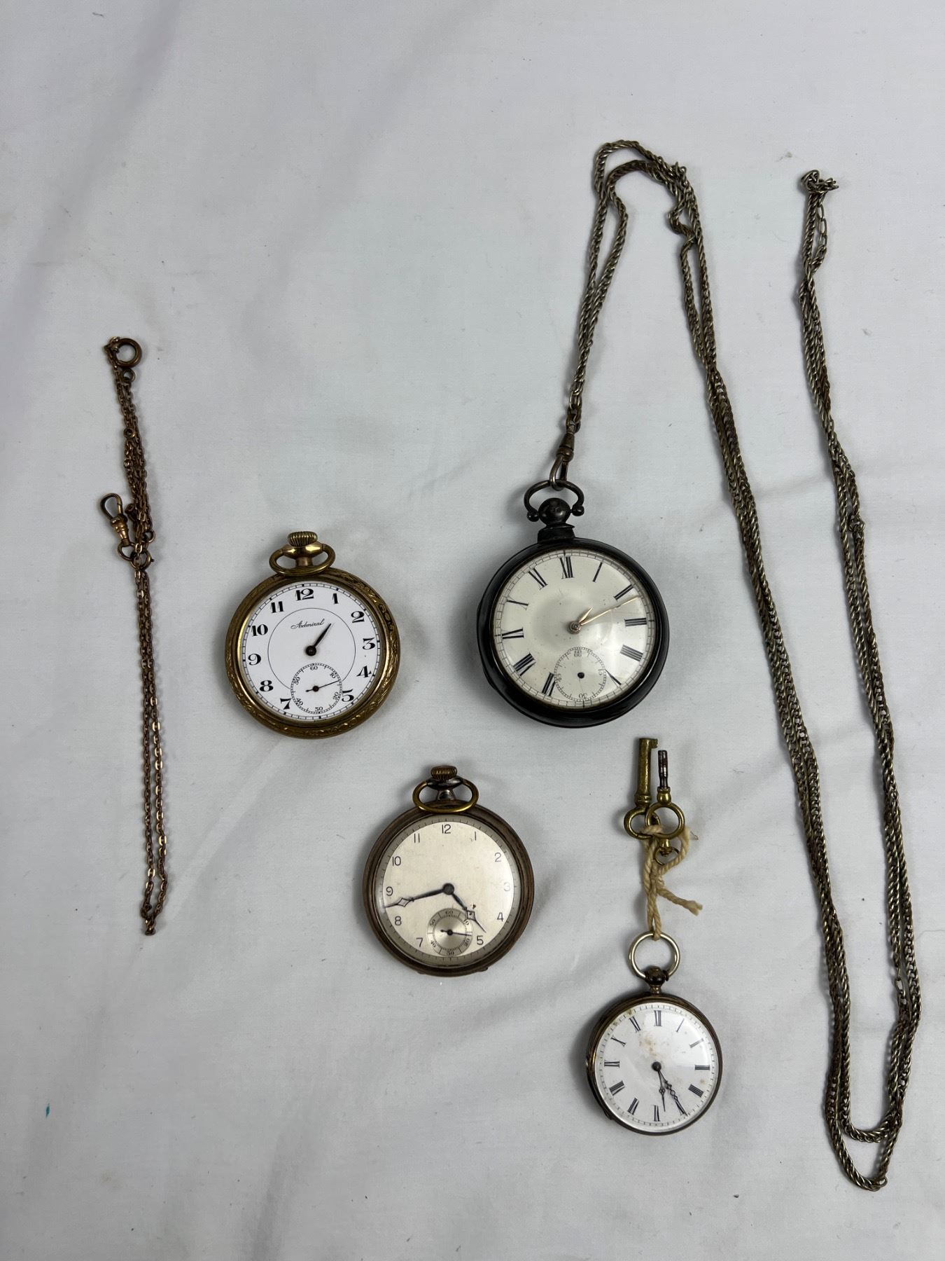 4 watches, largest being 2.5" in diameter. Wear from age is showing on metal of some of the pieces.