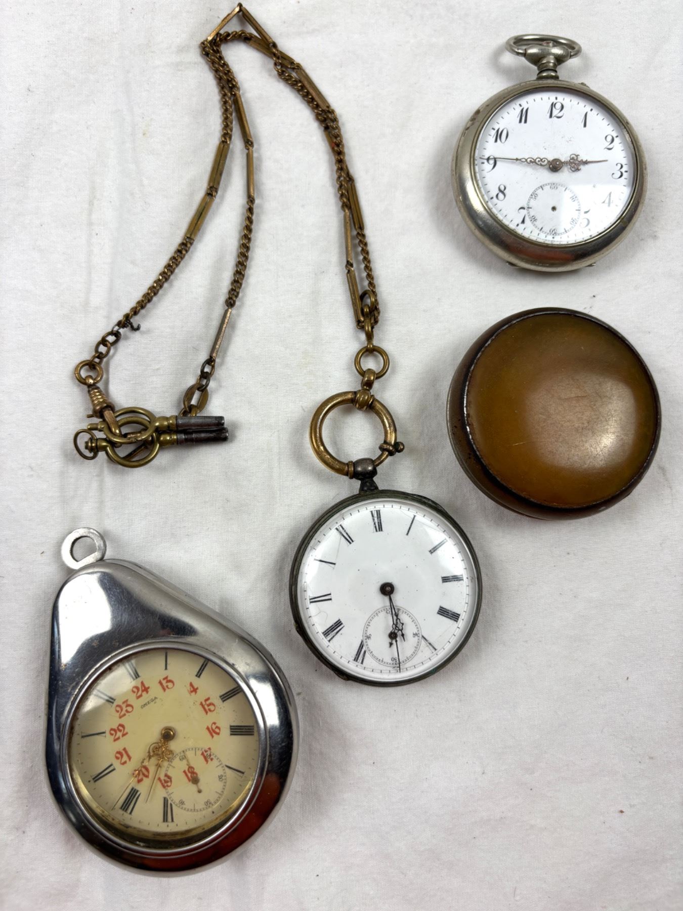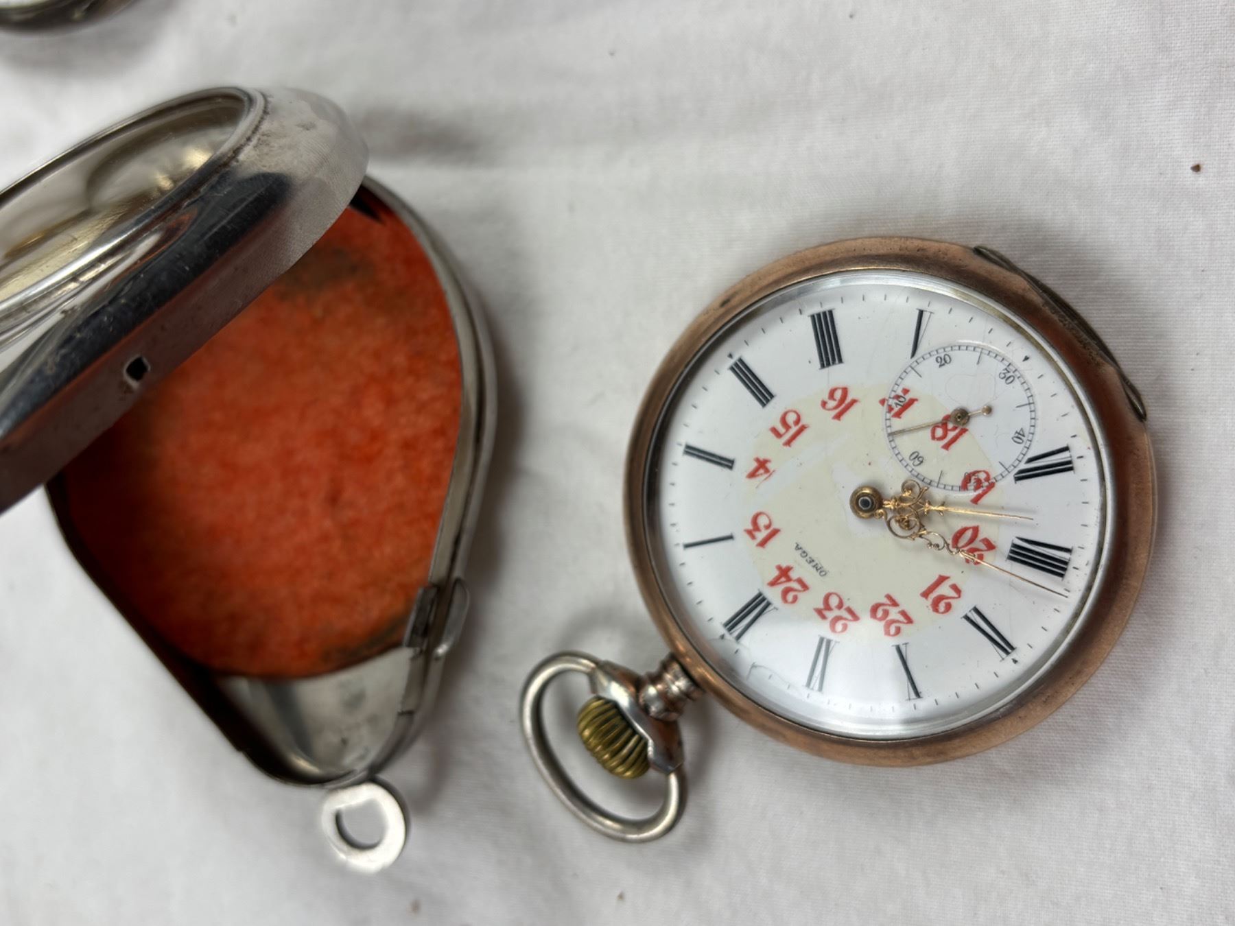 Includes two by Omega, one HH, two pocket watch cases,