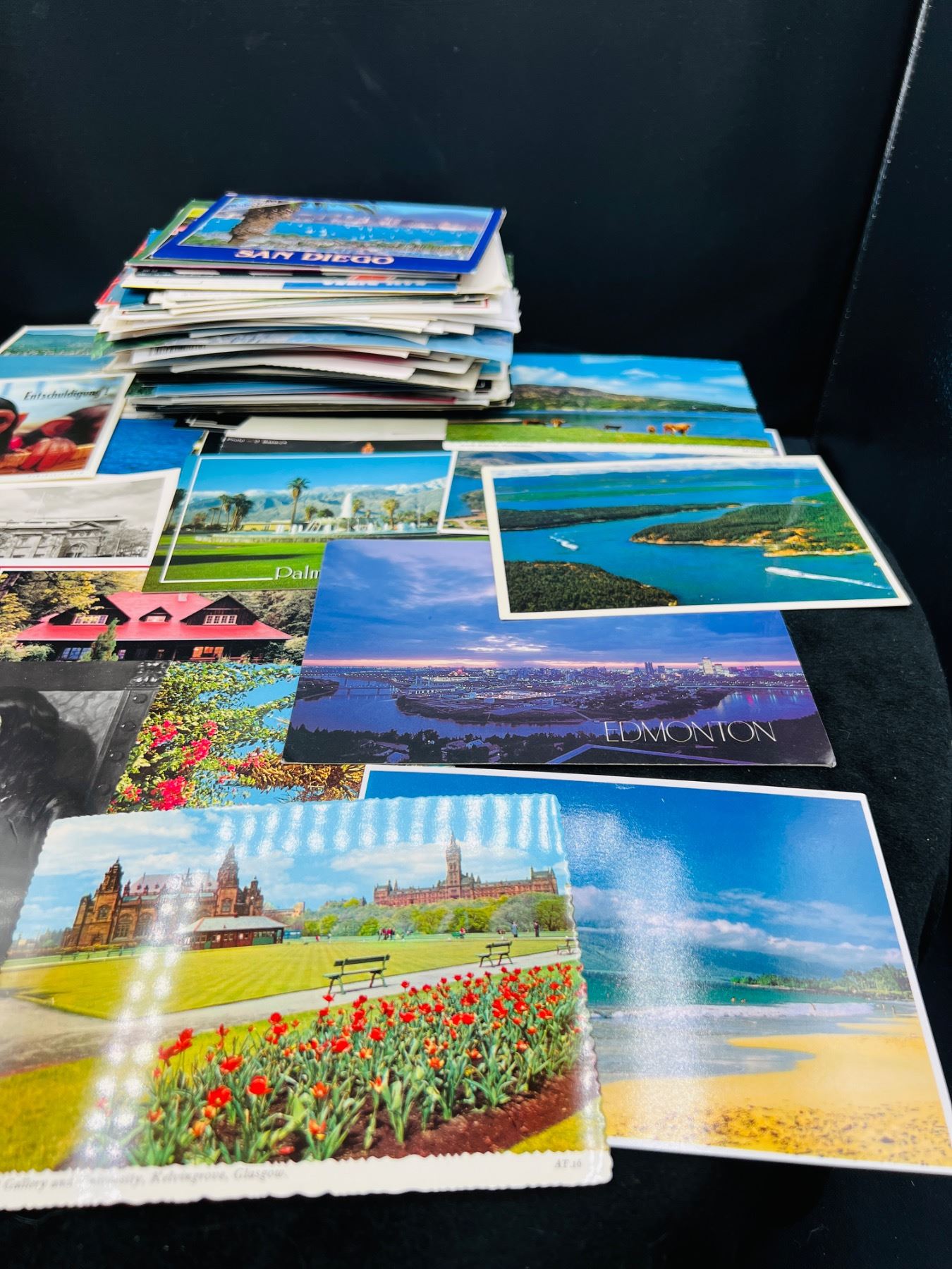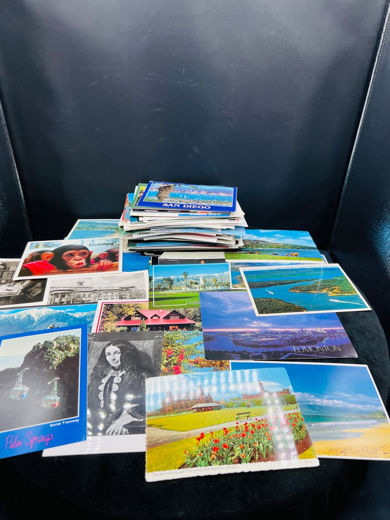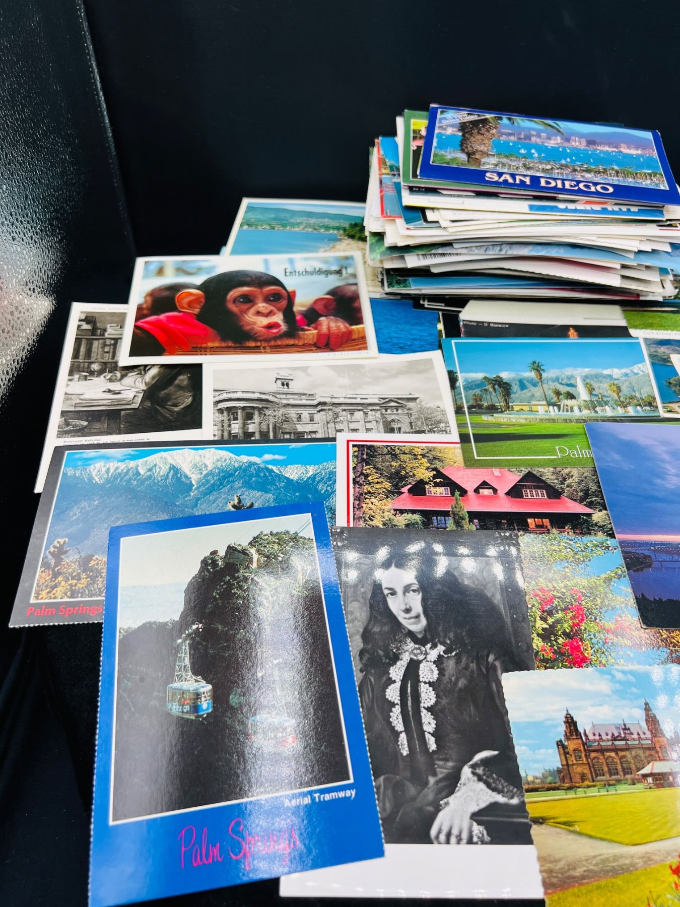 Includes postcards from Canada, San Diego, Glasgo, Palm Springs, Germany, Etc.