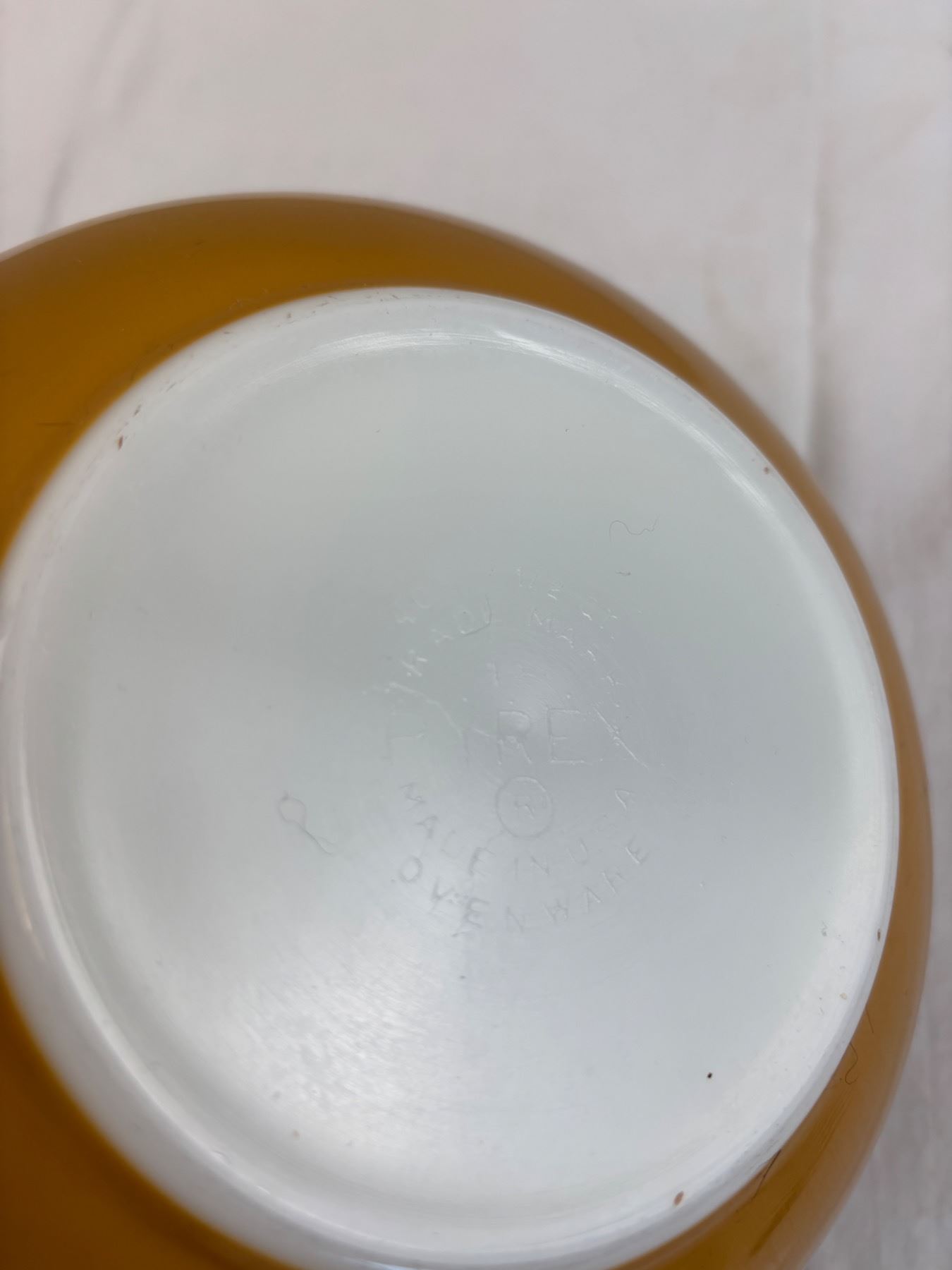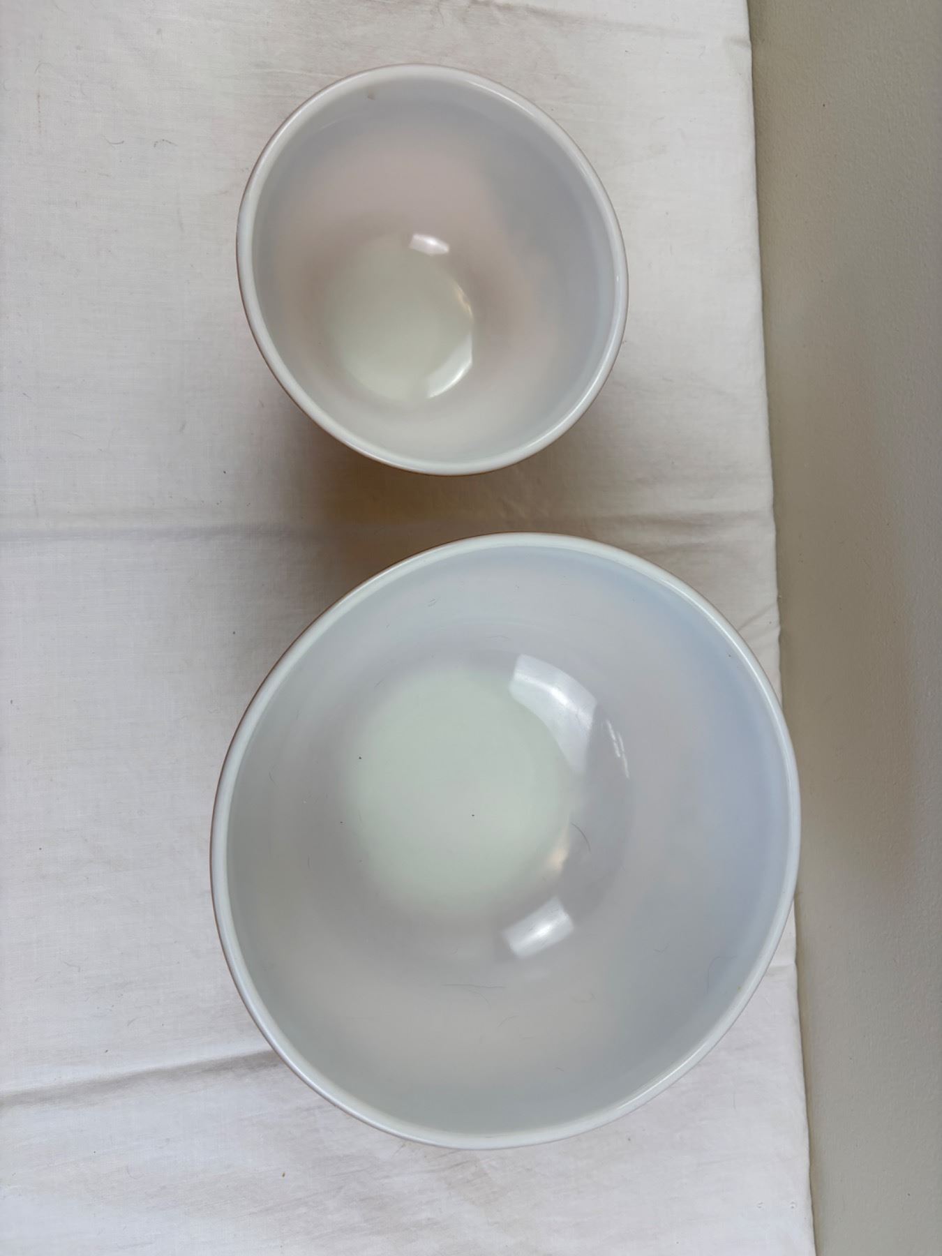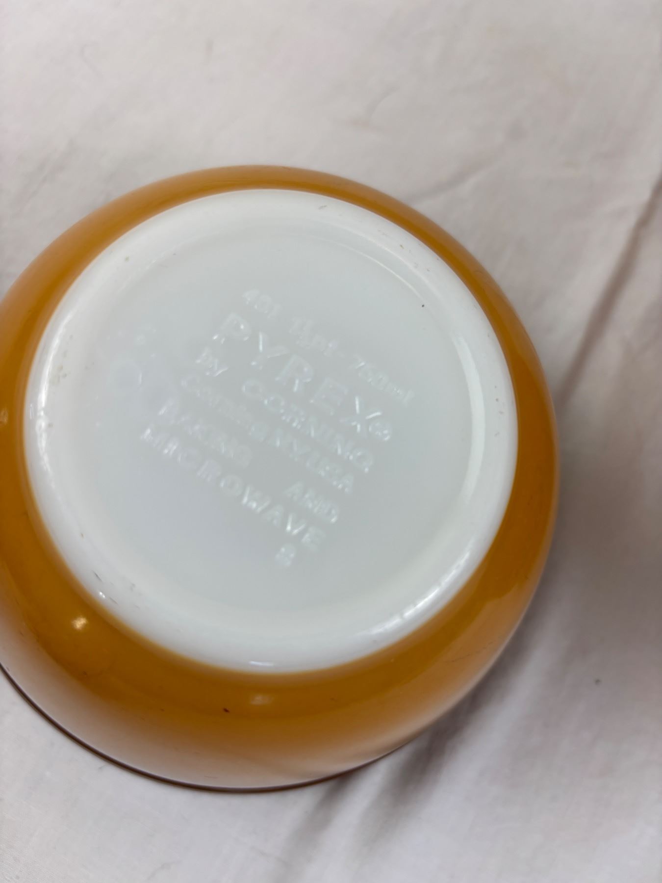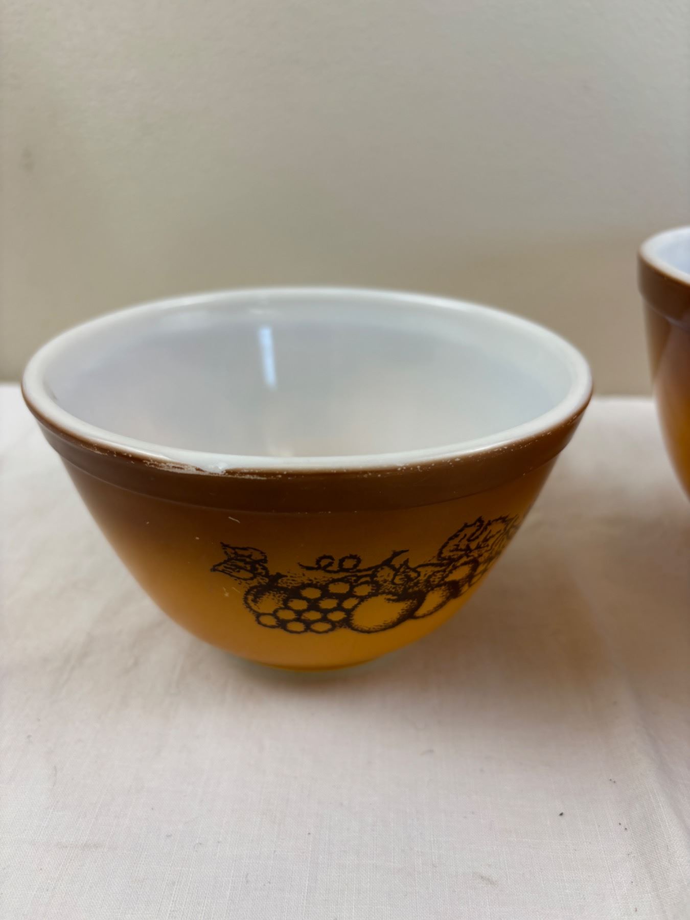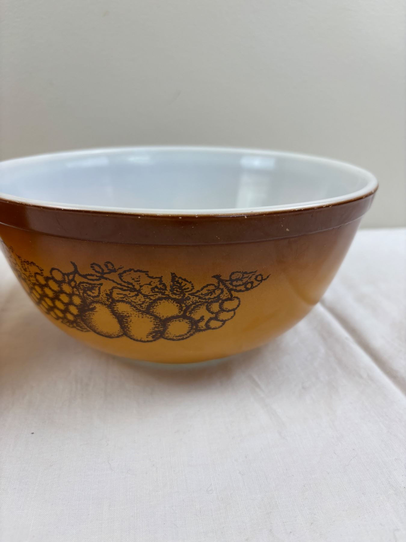 The pattern is worn in some spots, Includes a 750ml and 2 1/2qt bowl