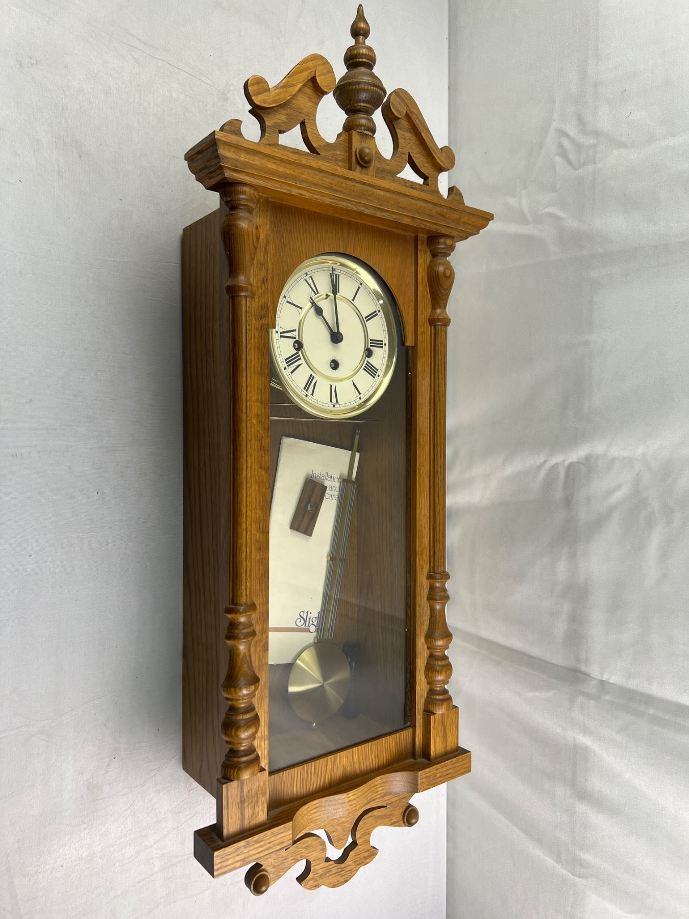 Vintage Sligh Wall Clock Westminster Chimes Working Includes Key & instructions