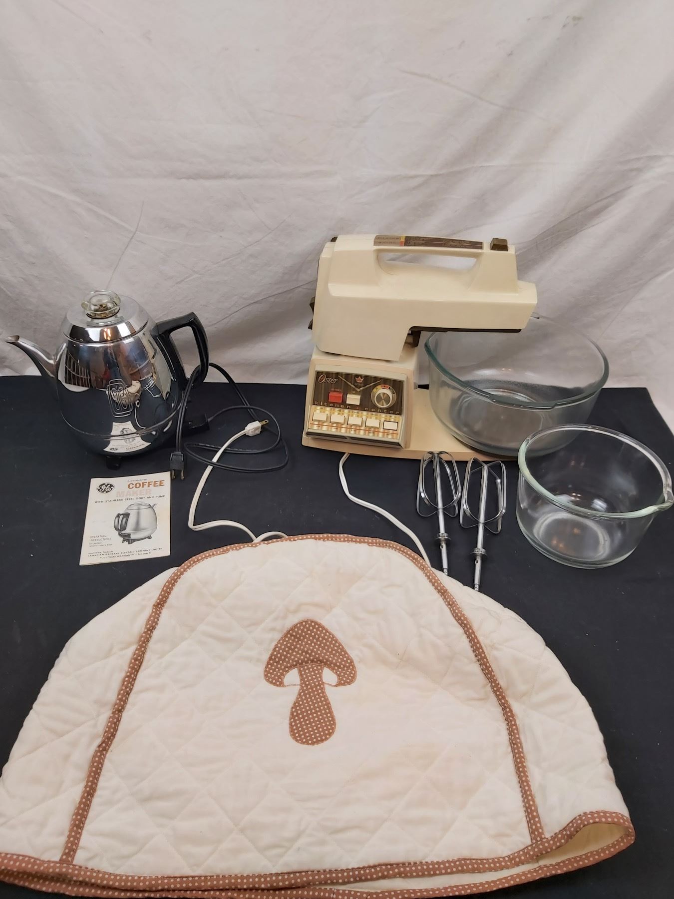 Includes, General Electric Automatic Coffee Maker Model No. P10B, Oster Kitchen Center (works)