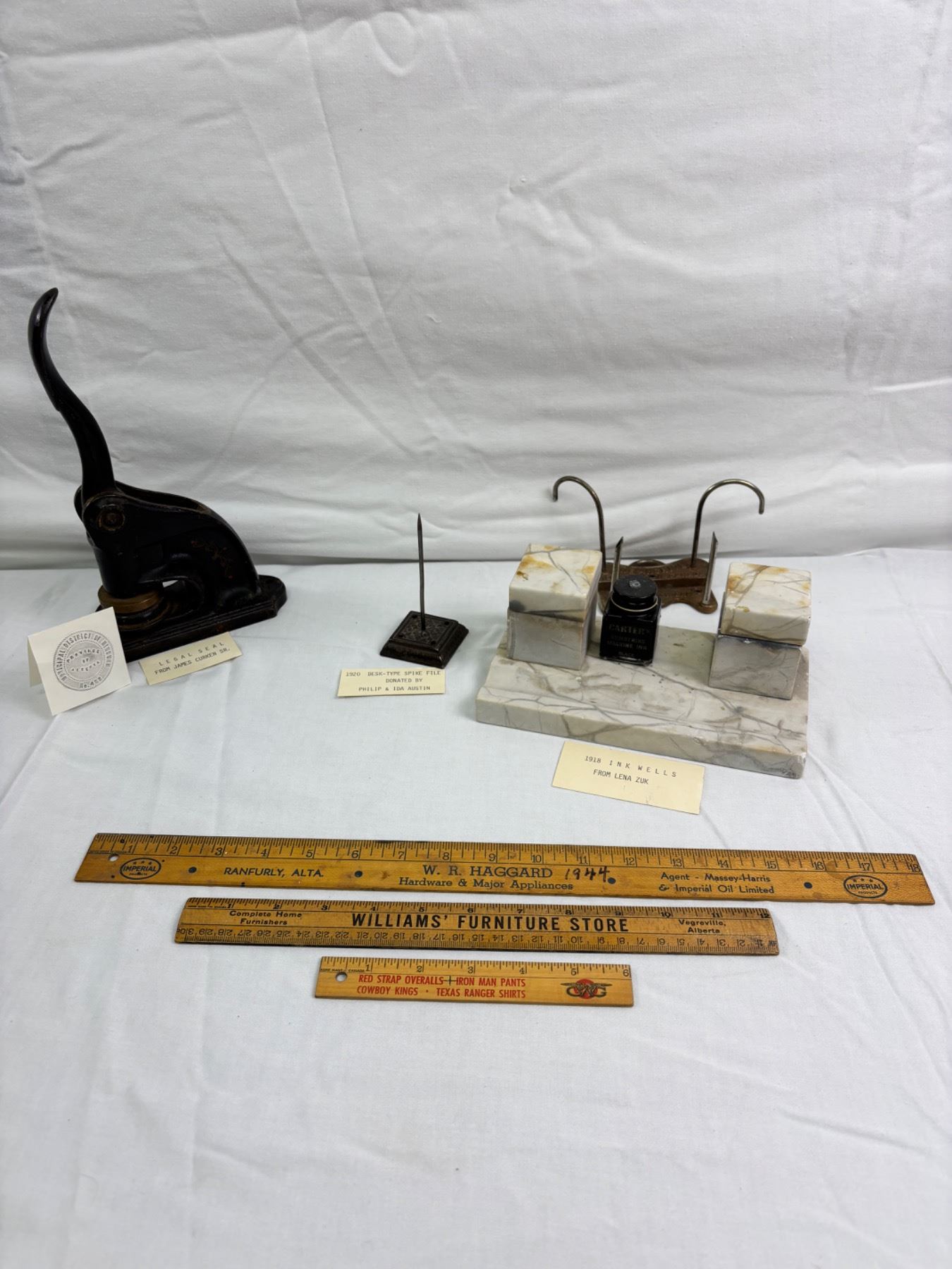Includes, Alberta Legal Seal, 1920 Desk Type Spike File, 1918 Ink Wells, etc.