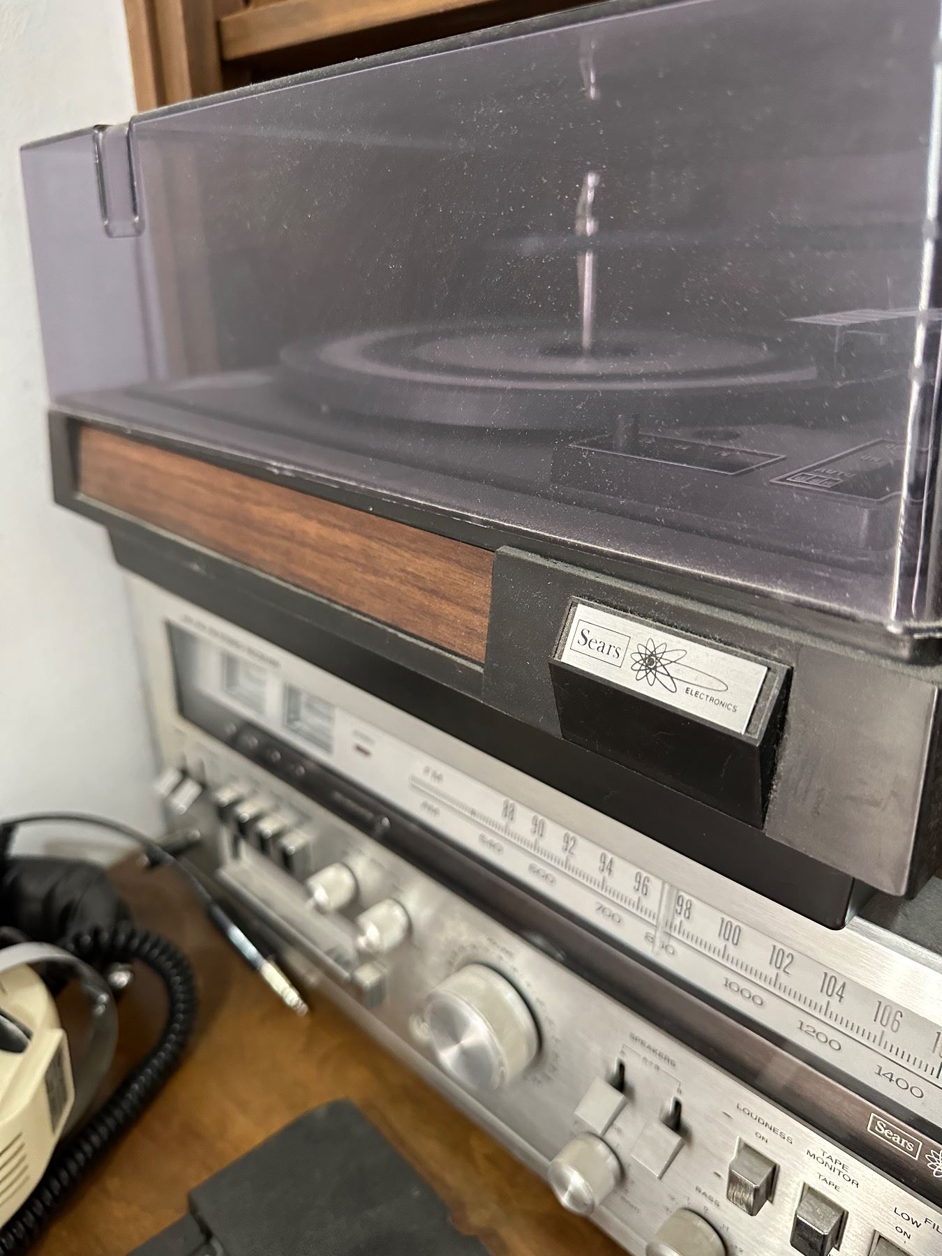 Unknown working condition - includes Sears Model REW-1205 AM/FM - FM Stereo Receiver - Sears Record Player - 2 Sears Speakers and Baycrest HB 2025 Stereo Headphone