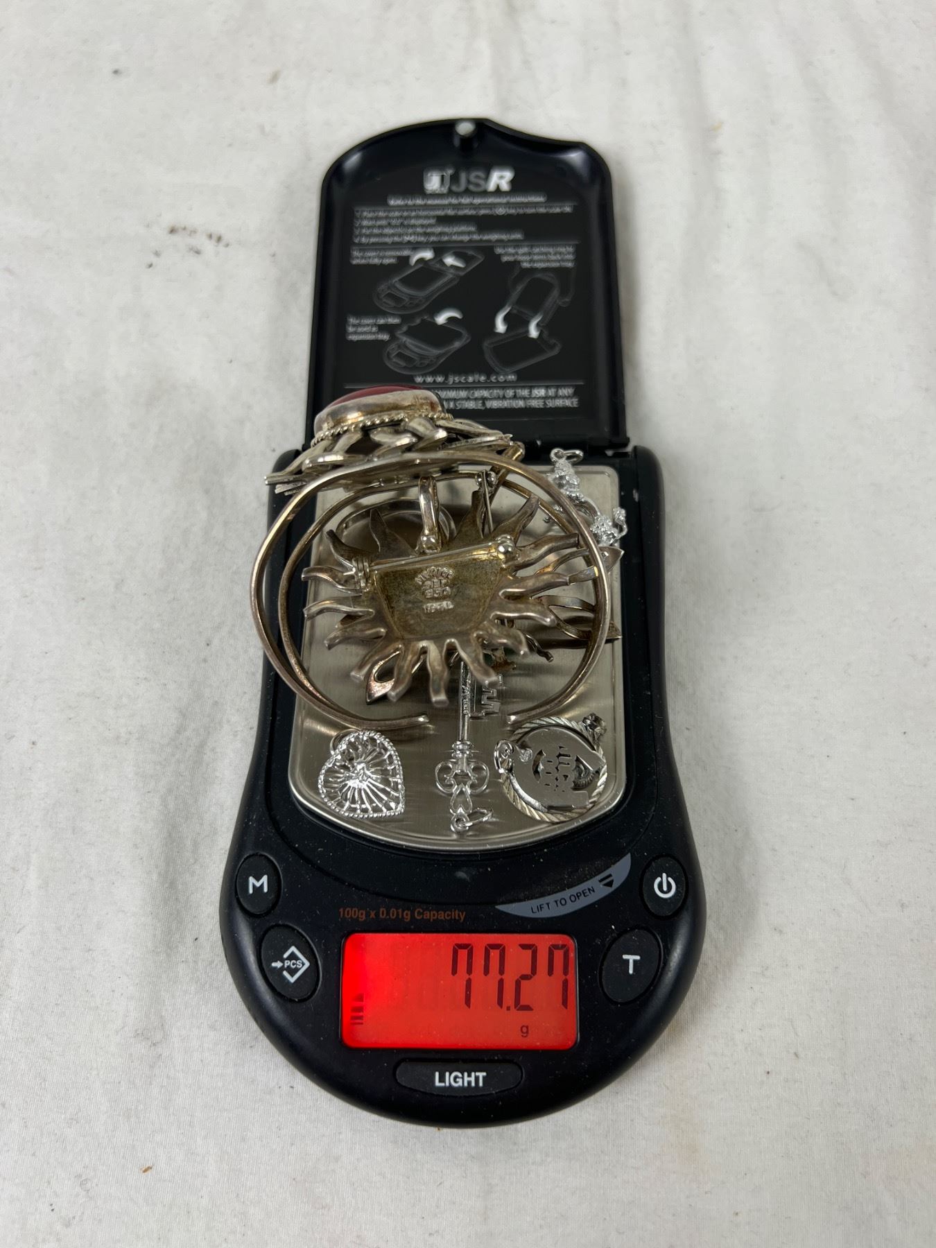 One piece is a 10K gold pendant. Total weight of sterling is 77.27 grams and total weight of 10K gold is 1.71 grams.