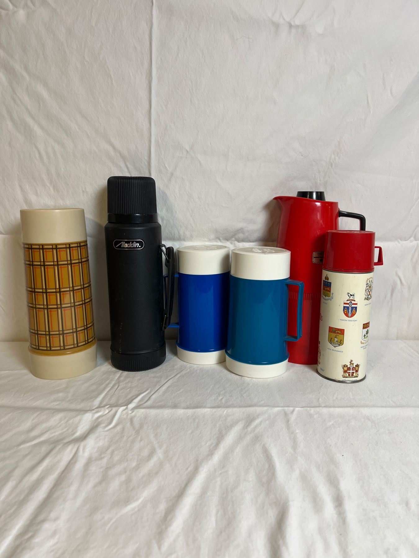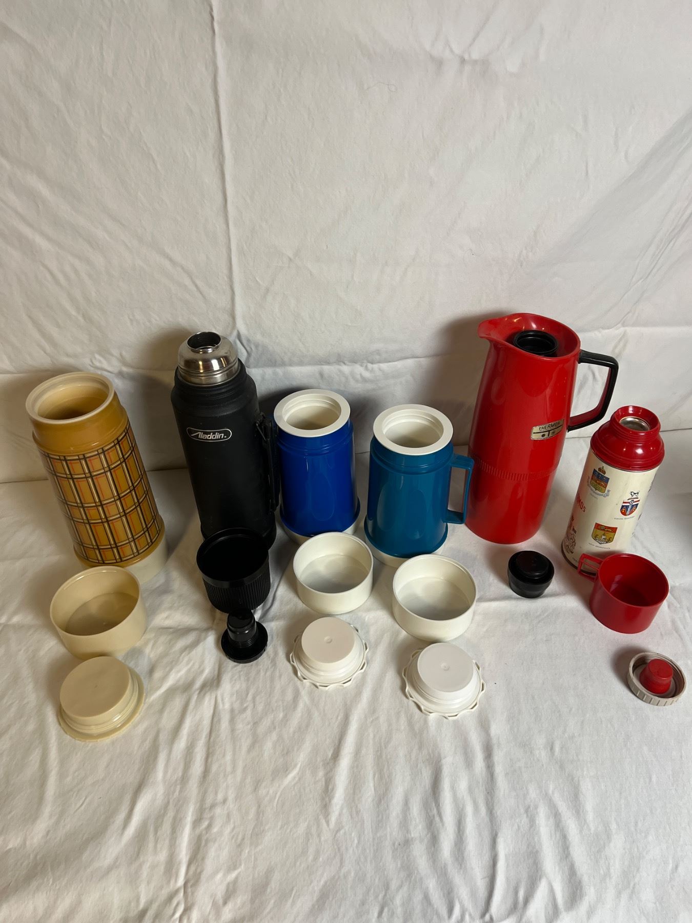Includes 2 Aladdin branded thermoses as well. Largest is 13" tall.