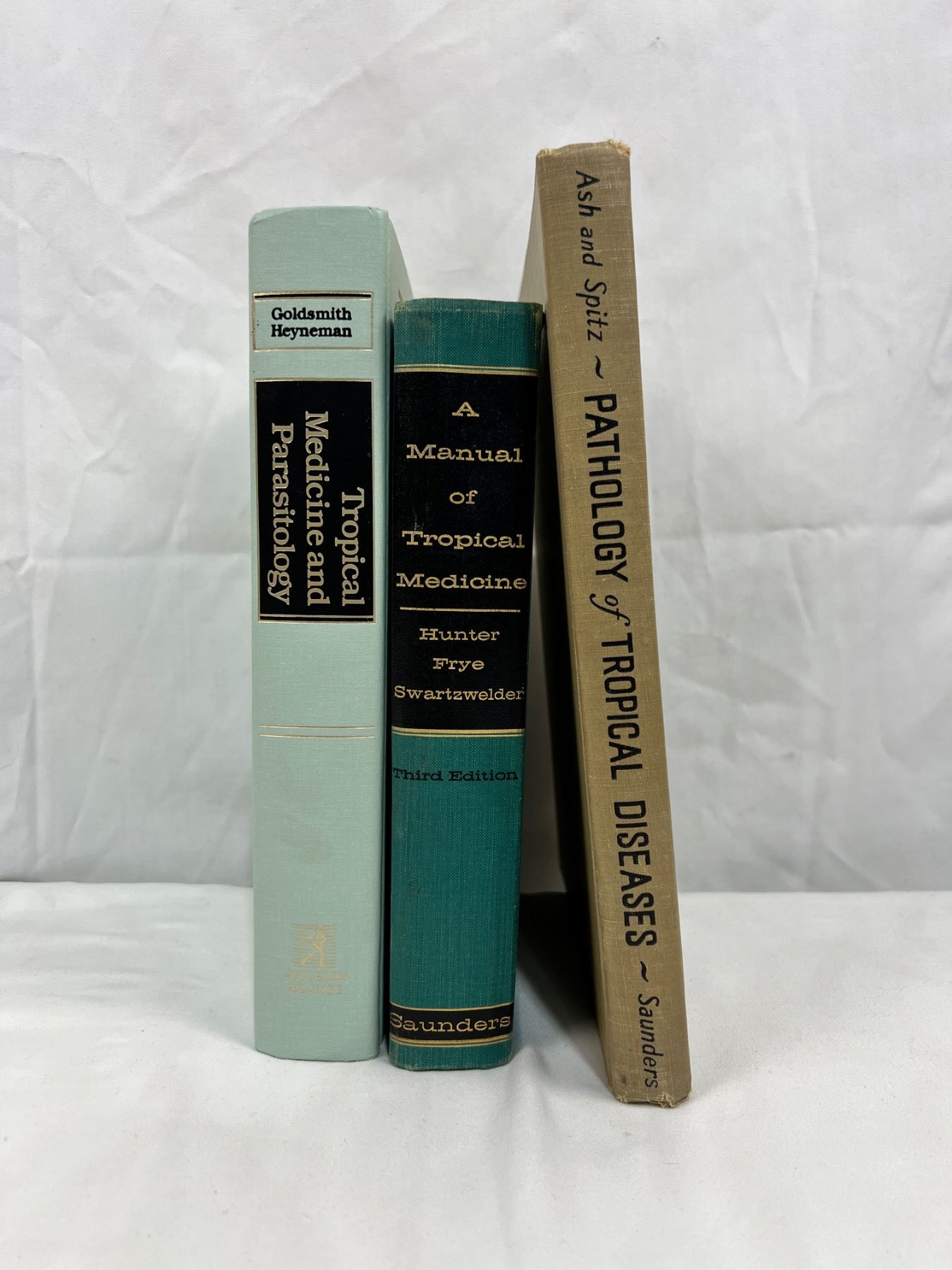 3 books total in varying states of wear and tear. Brown book is circa 1945, green book is circa 1960 and mint book is circa 1989.