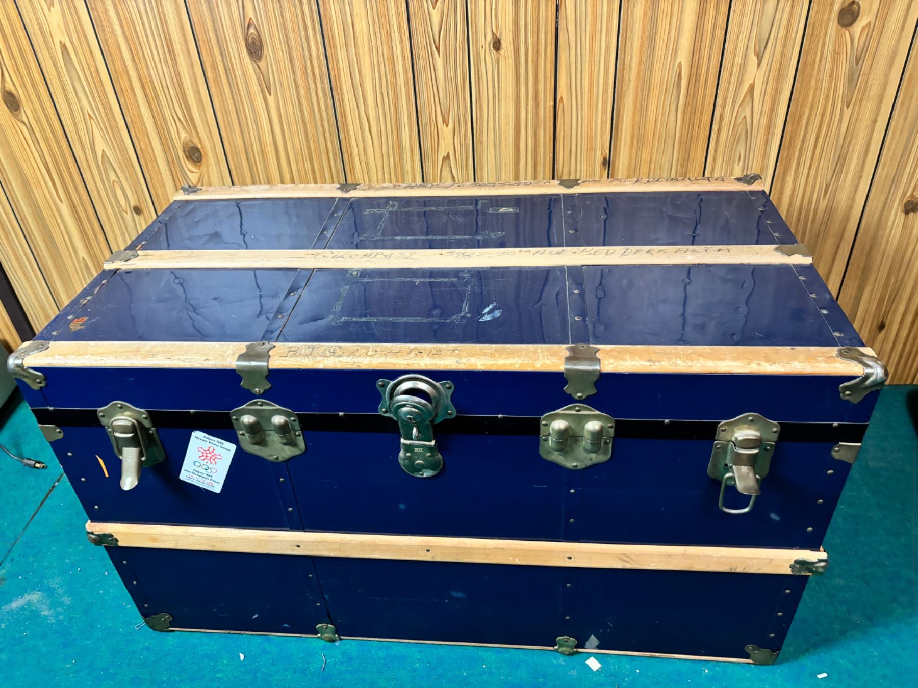 22"H x 40"L x 21"W, Has writing and a sticker, No key