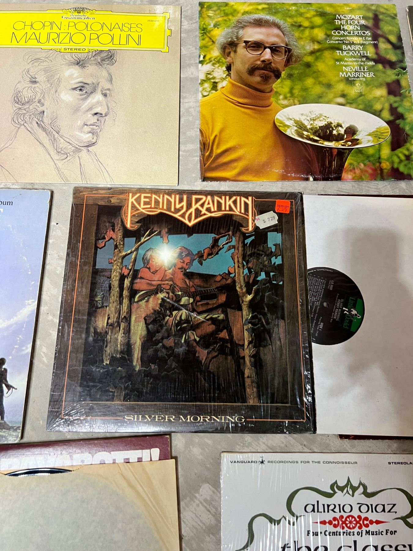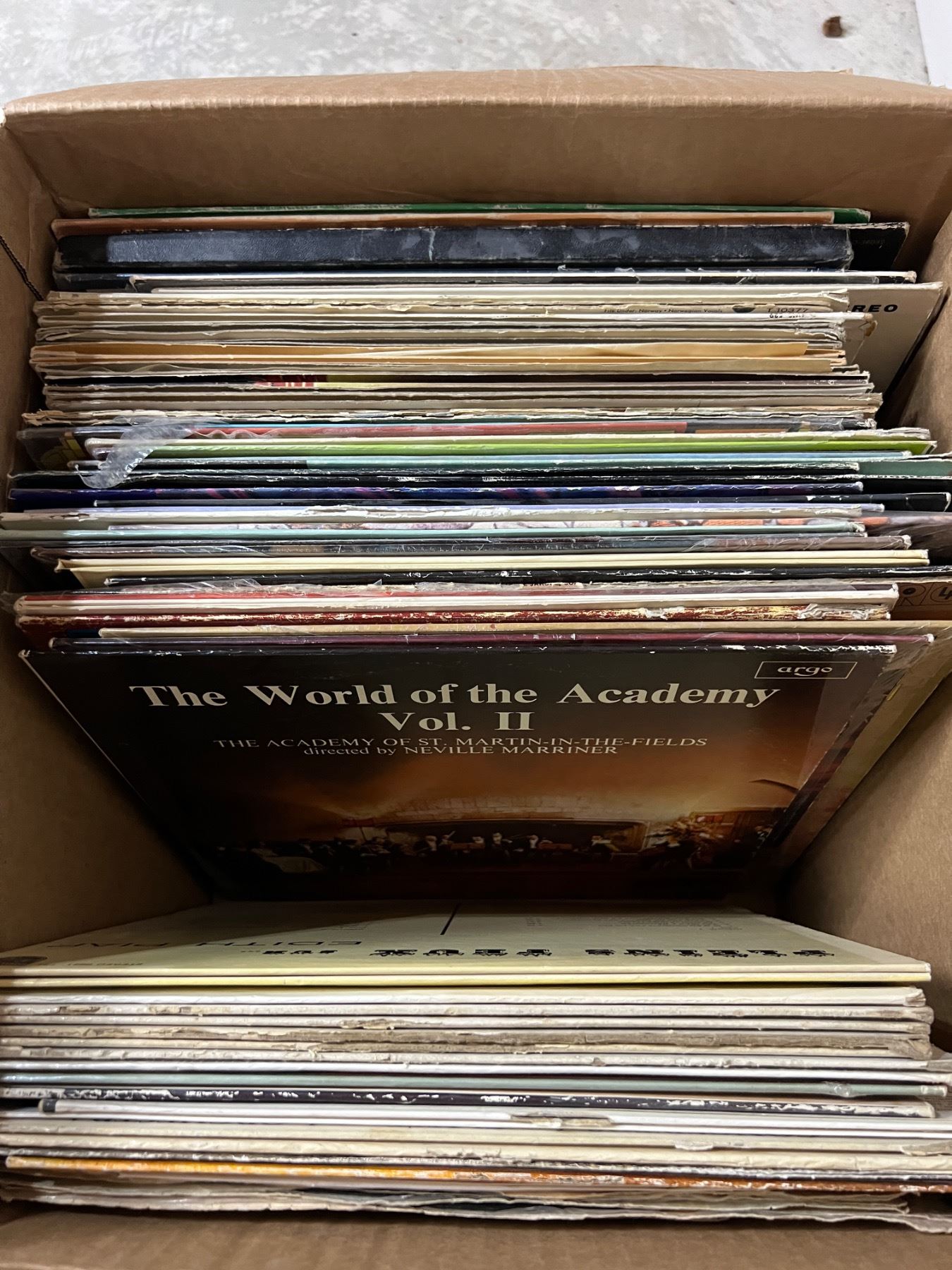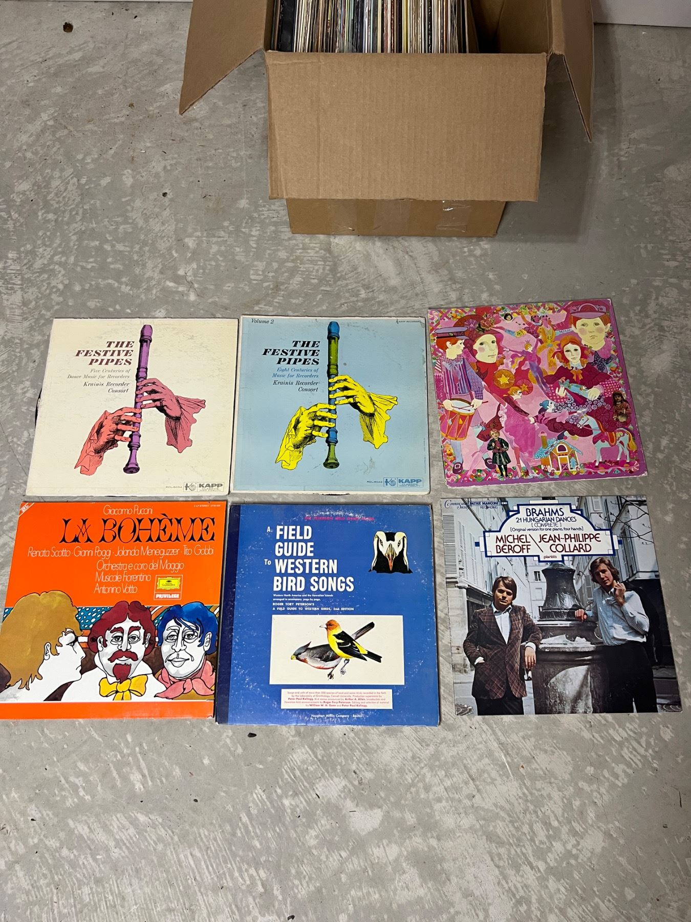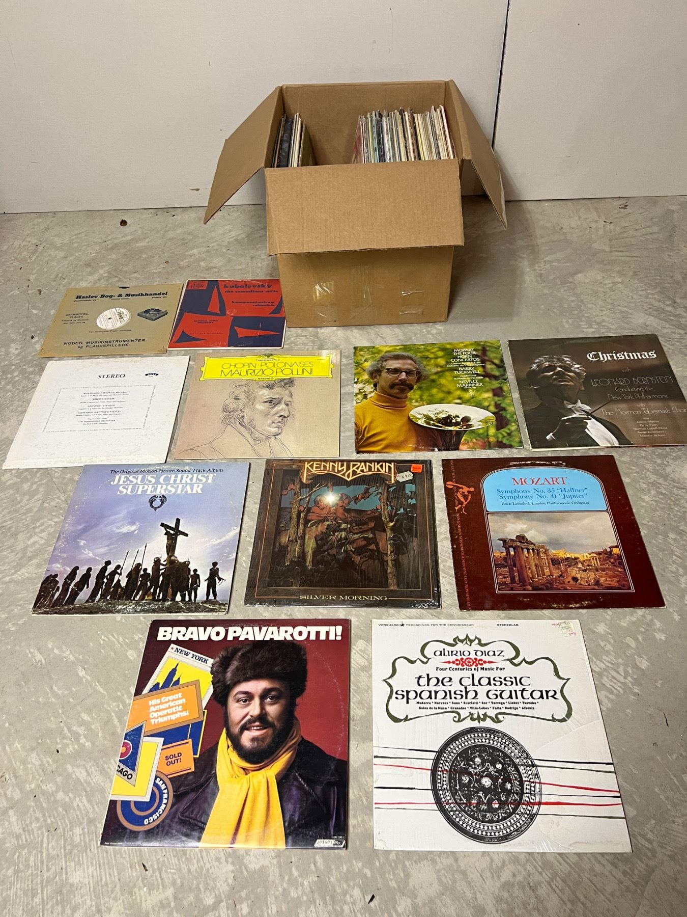 Wide spread of music through box, Christmas, polka, gospel, classical and more! Various levels of wear and also includes two 45's