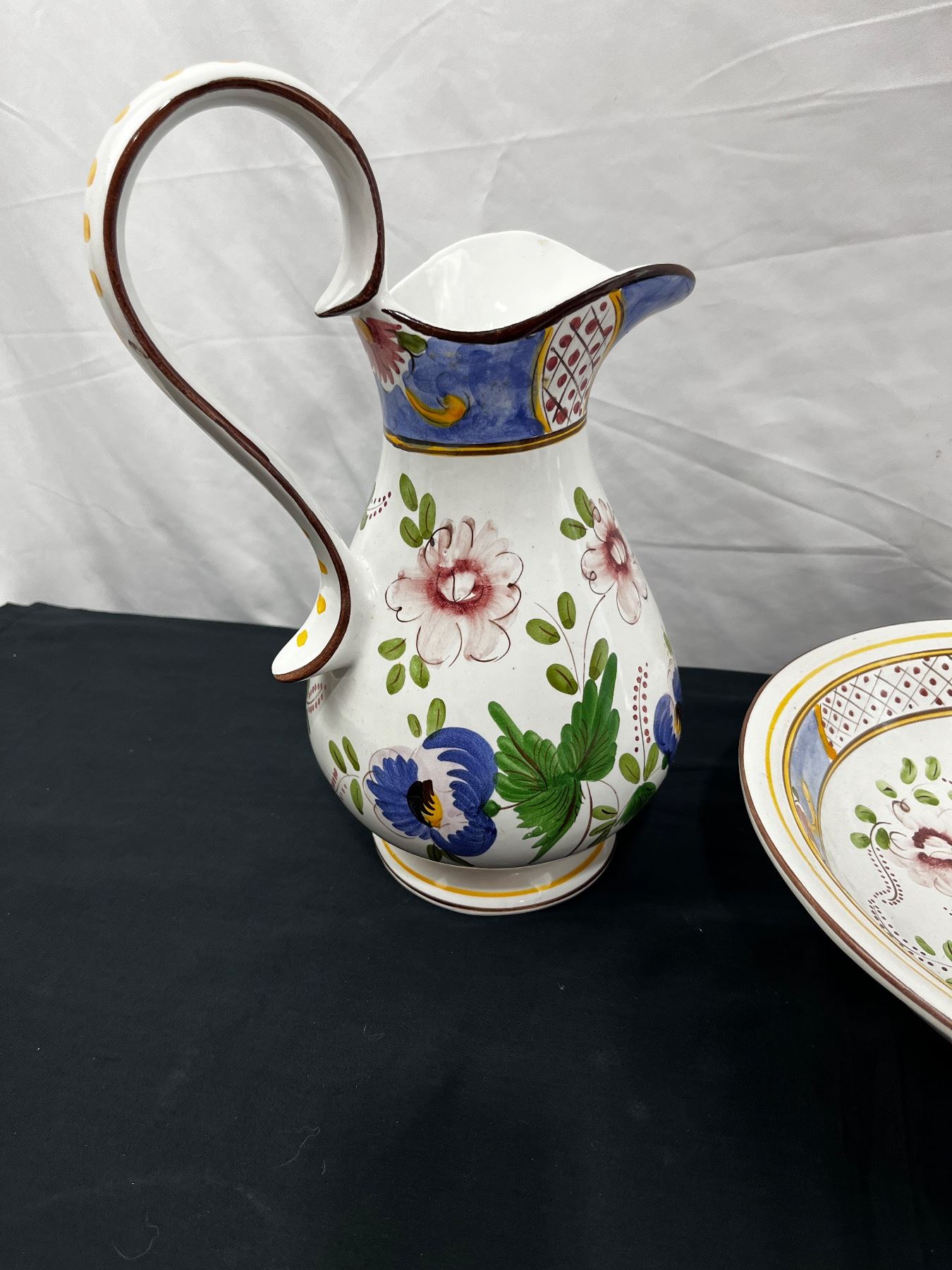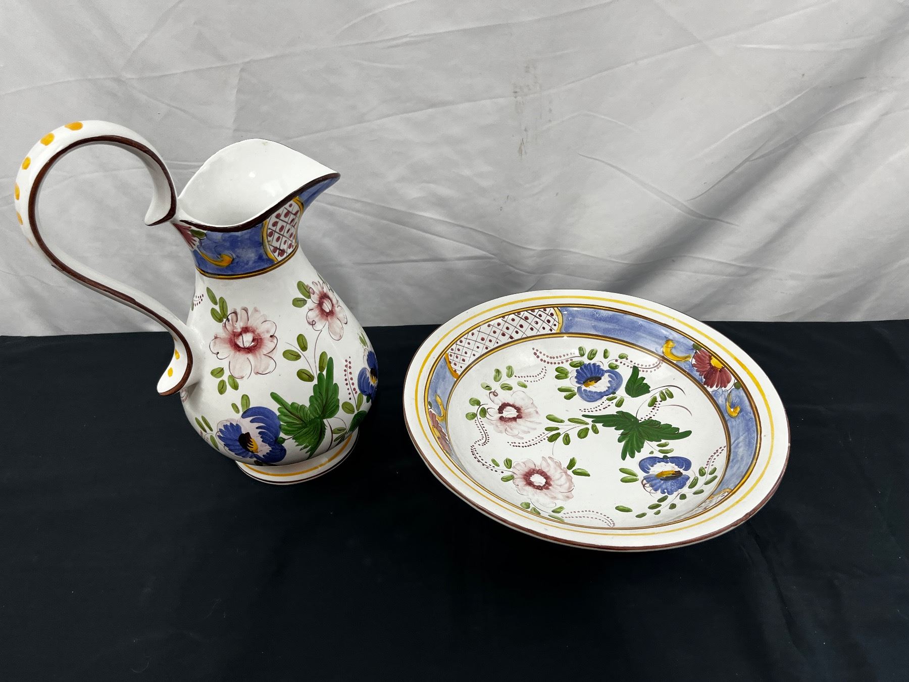 In good condition, "221-C", Made in Portugal, Basin; 12"diameter, Pitcher; 12.5"H