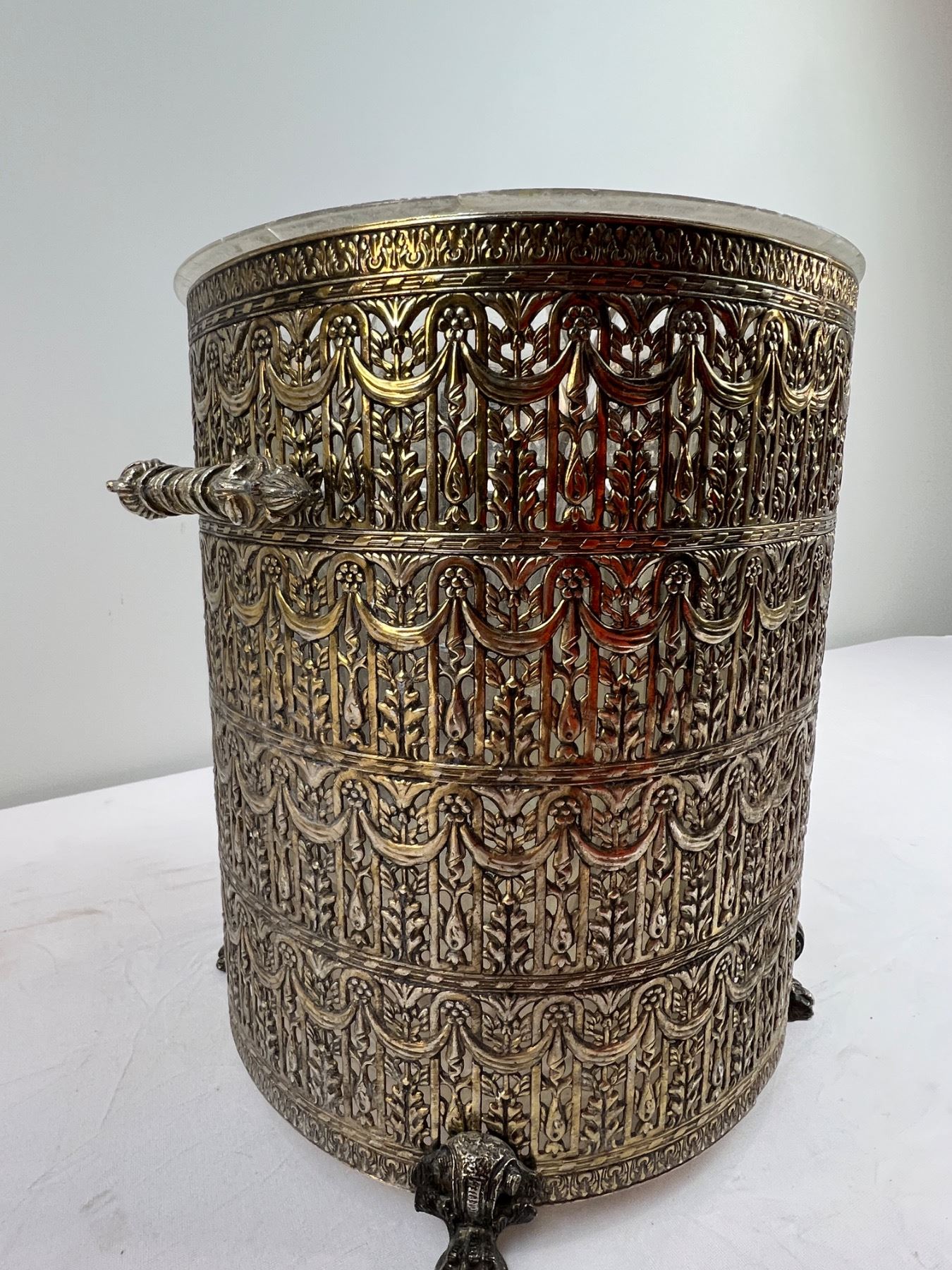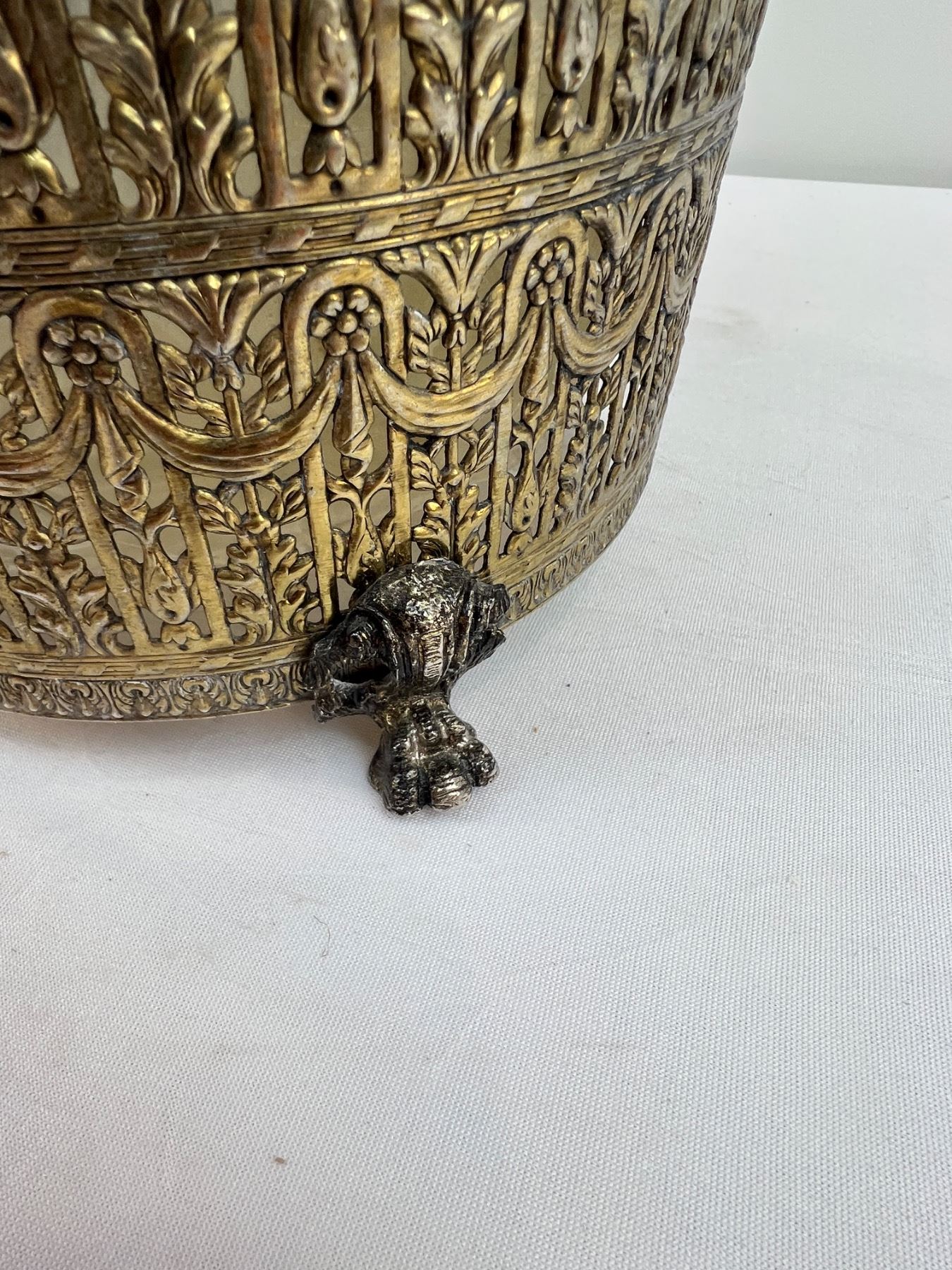 Missing one leg - Made of a soft metal material with removable basket - 10.5" tall